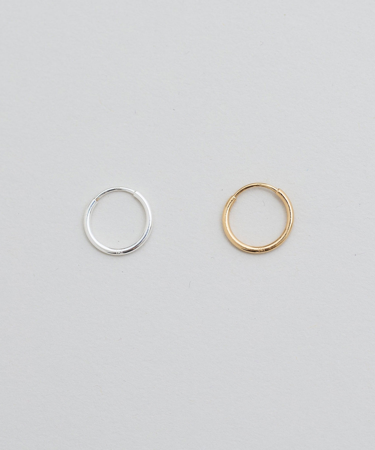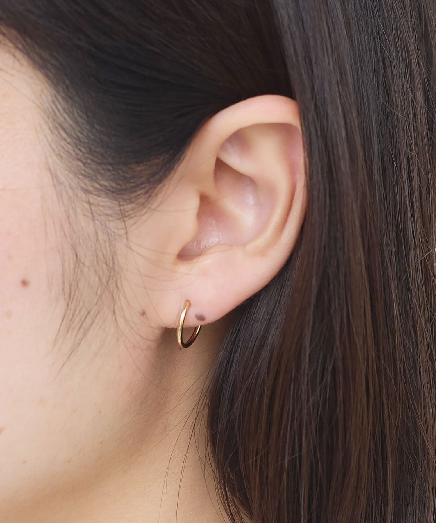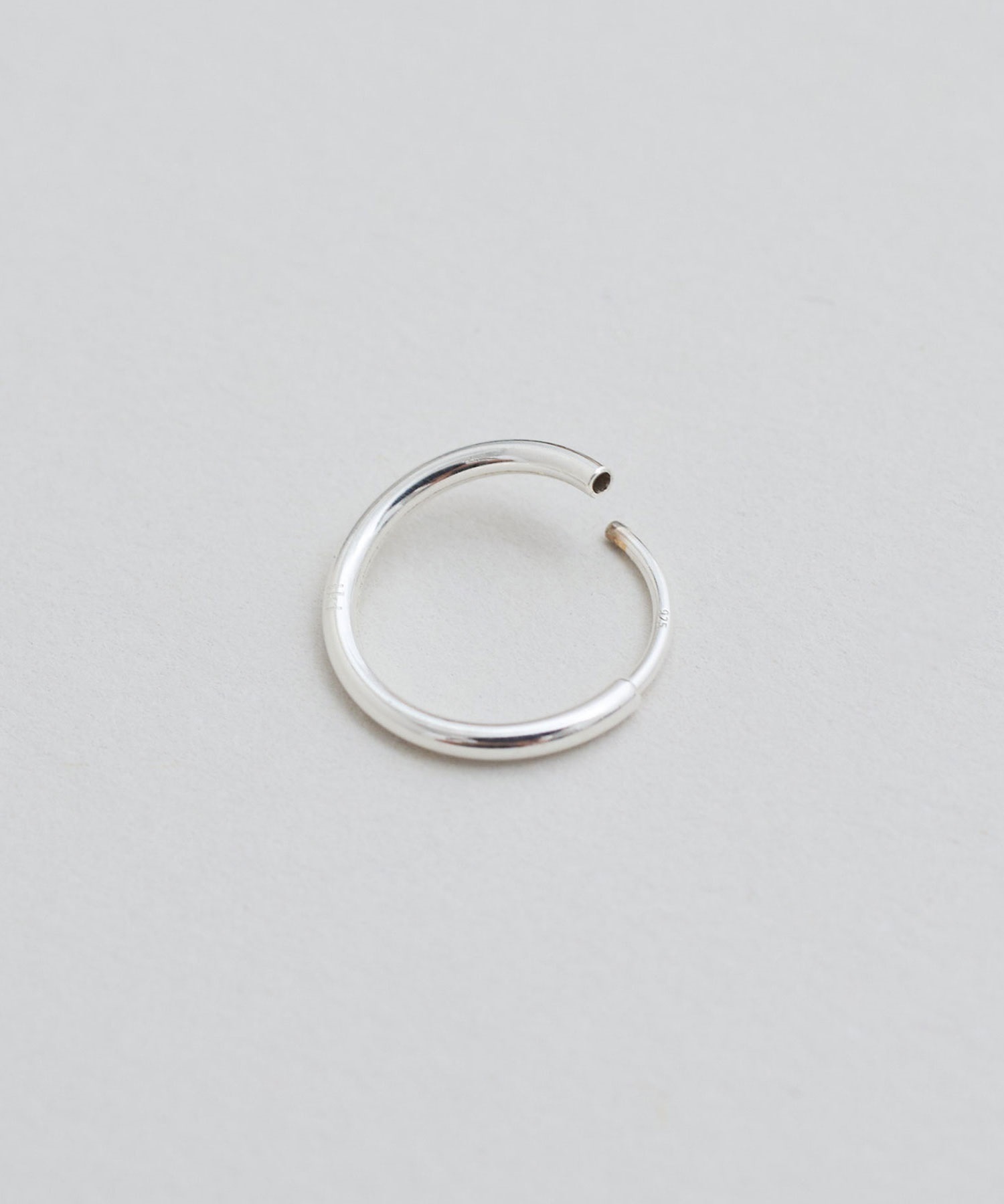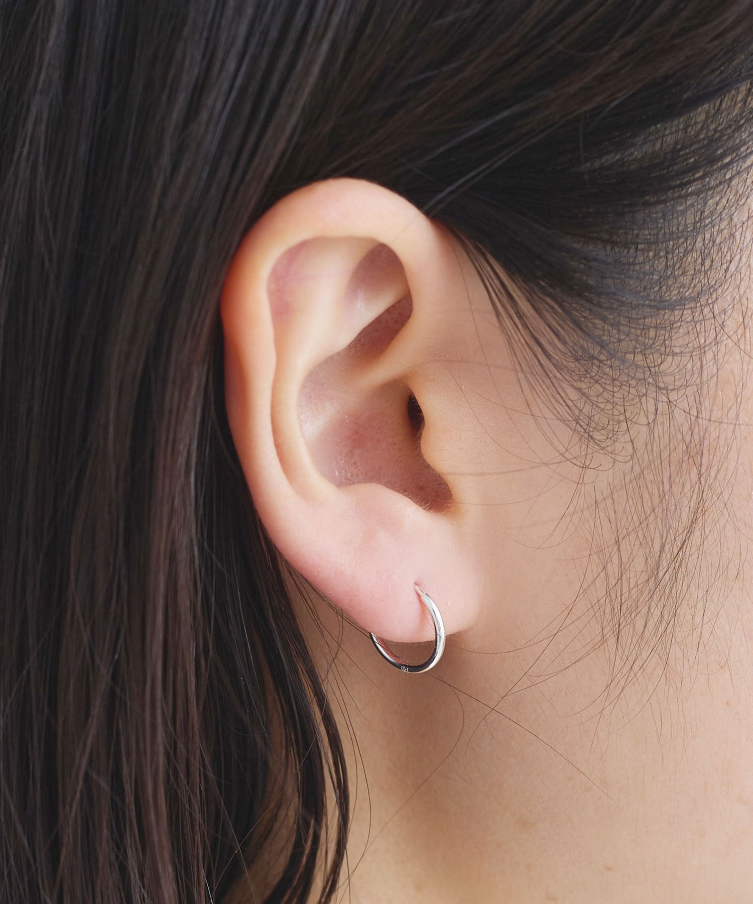 側面に小さくikiのロゴ刻印入りした小さなフープピアス。