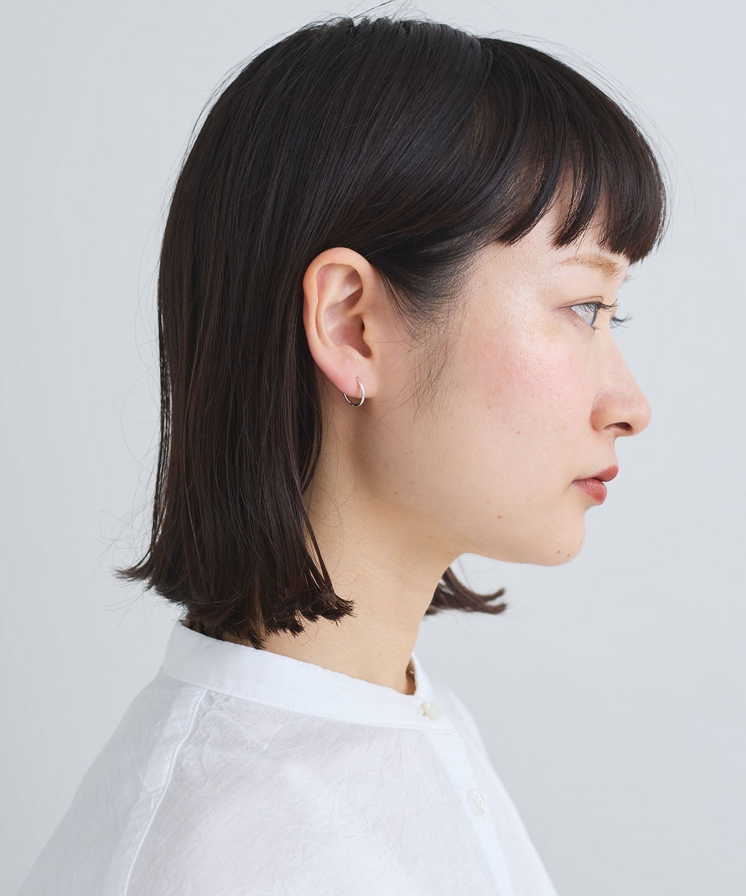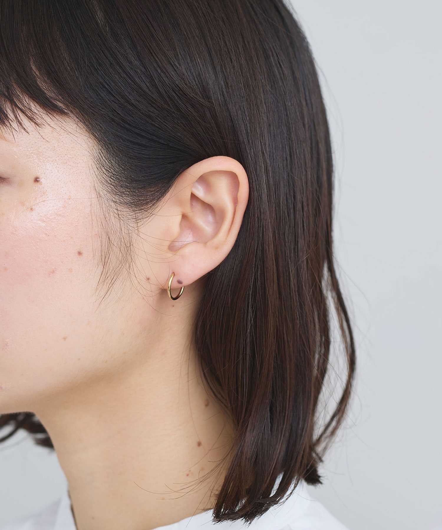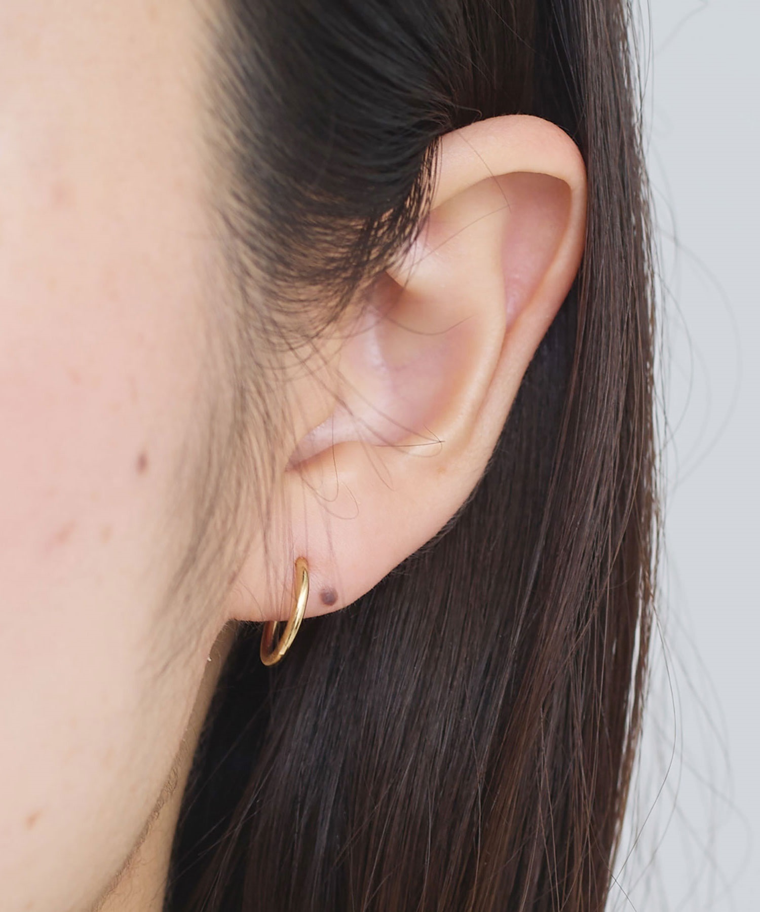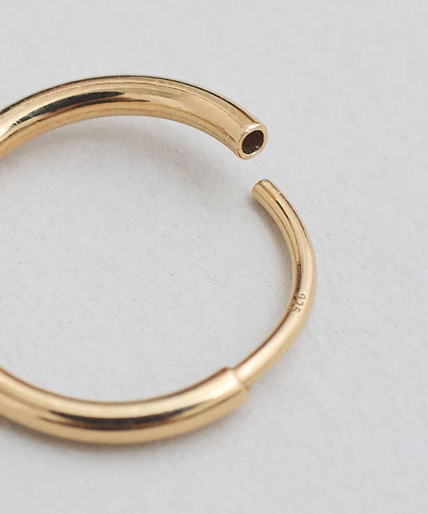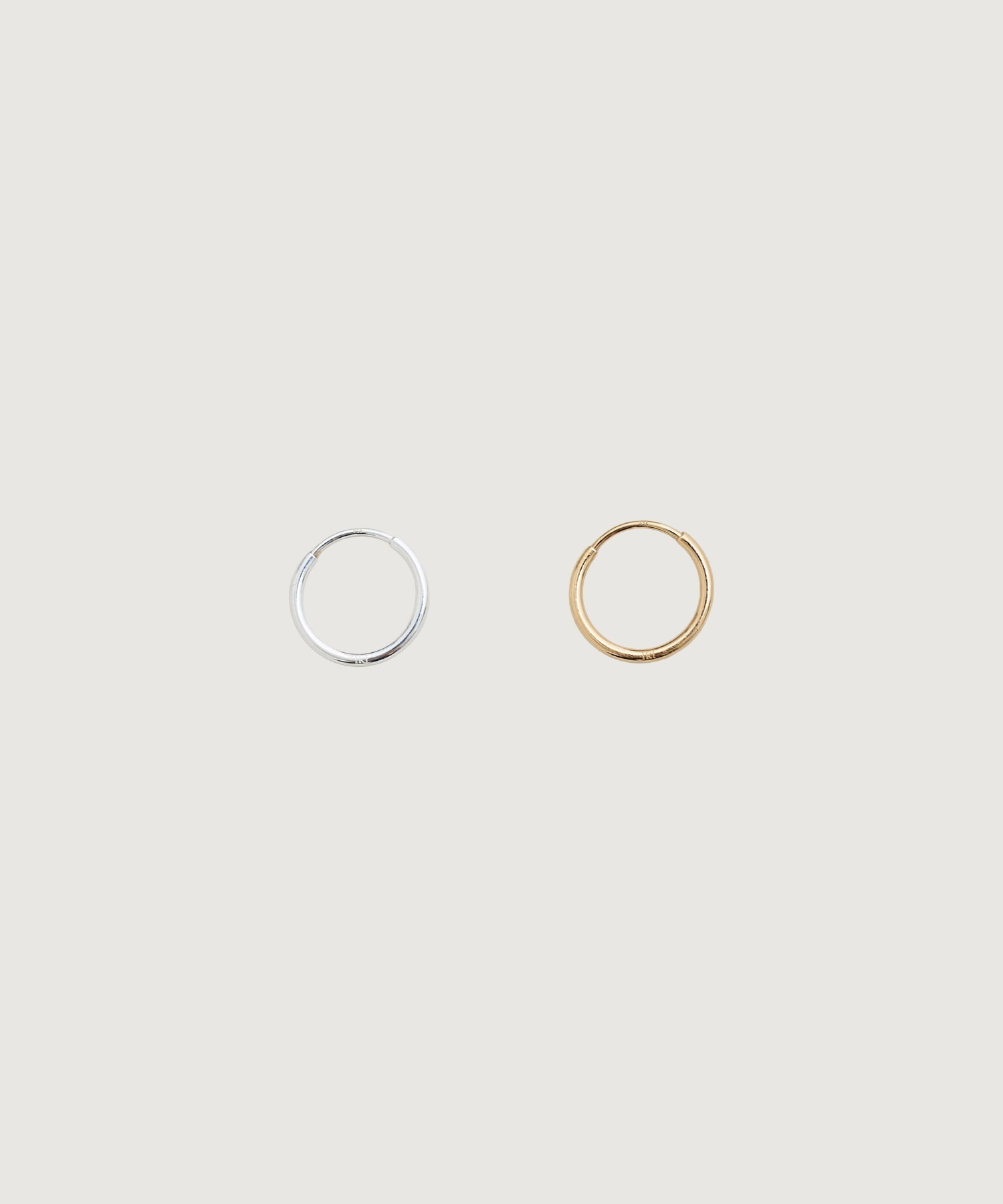 側面に小さくikiのロゴ刻印入りした小さなフープピアス。