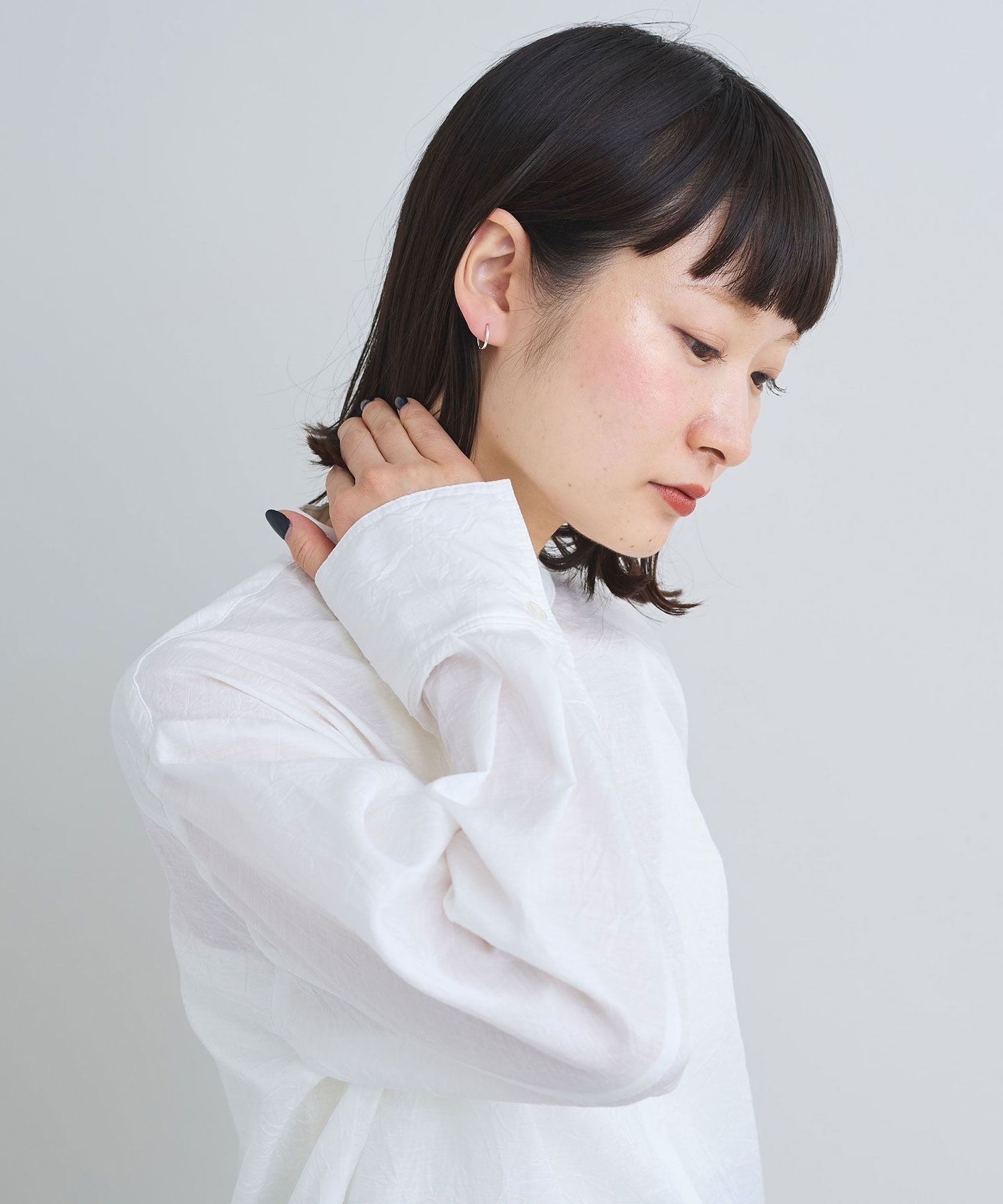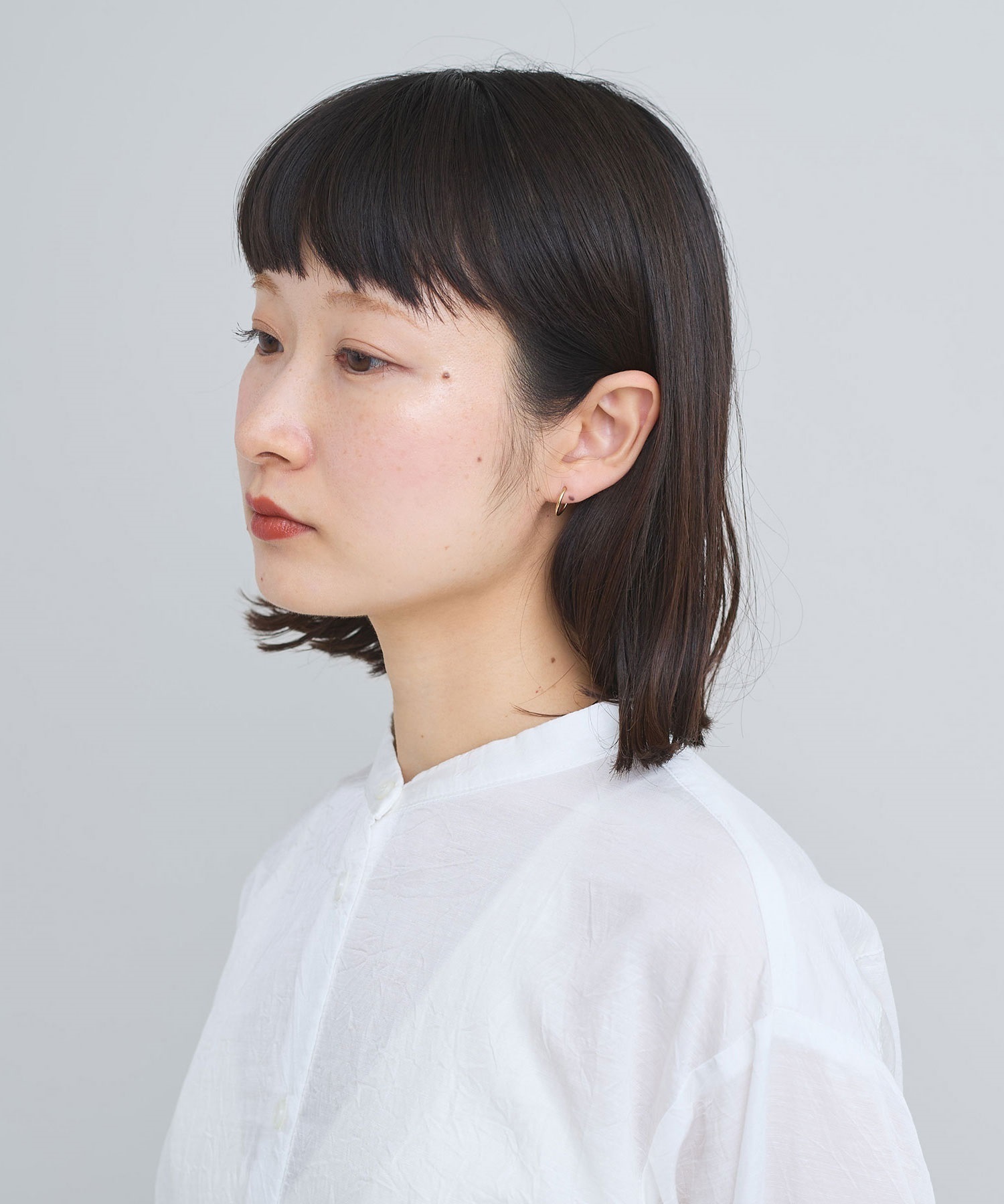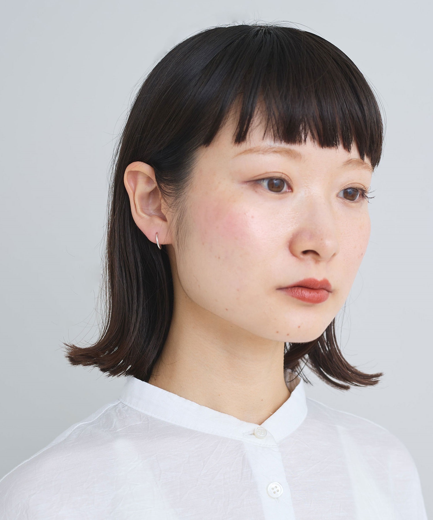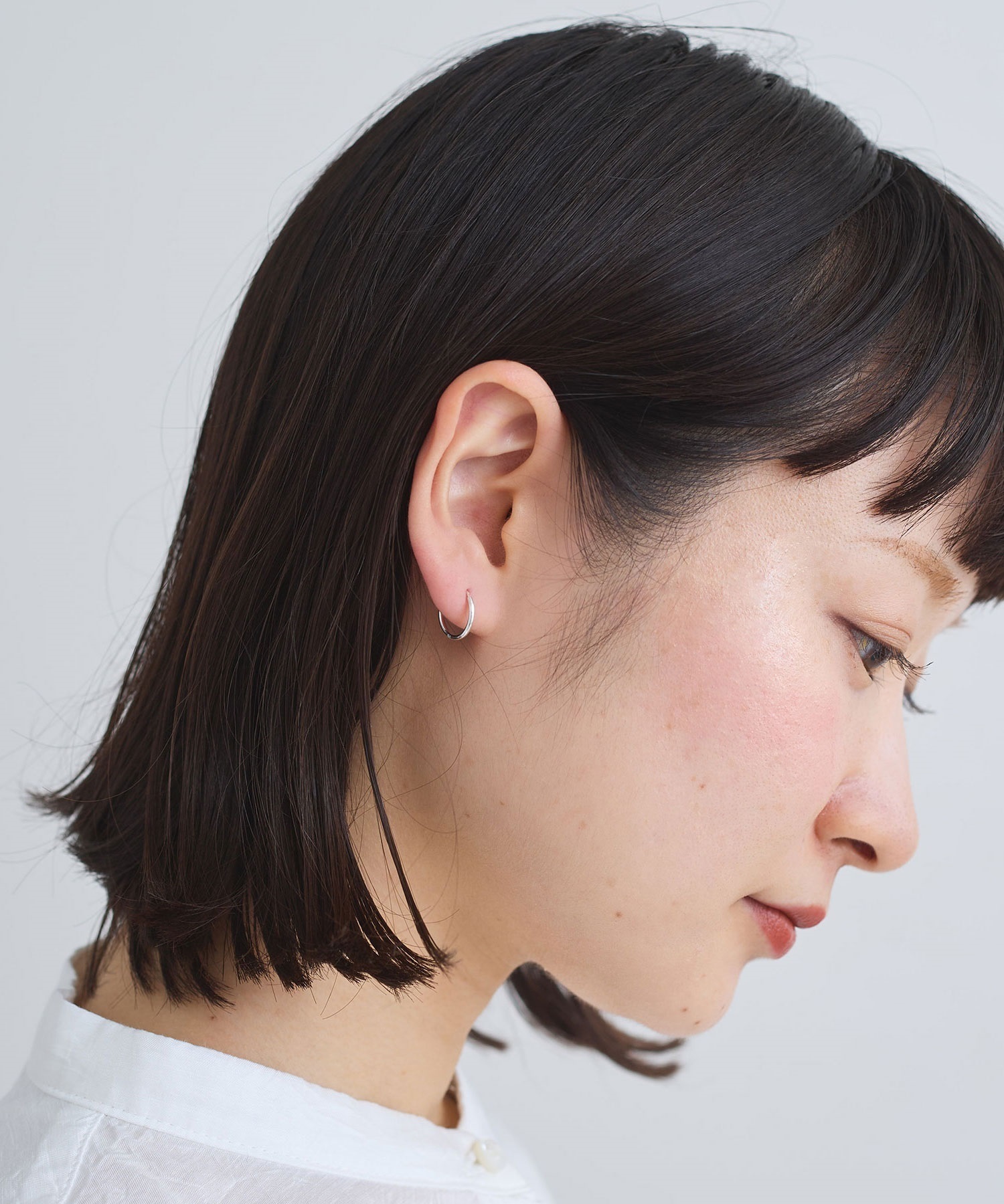 側面に小さくikiのロゴ刻印入りした小さなフープピアス。