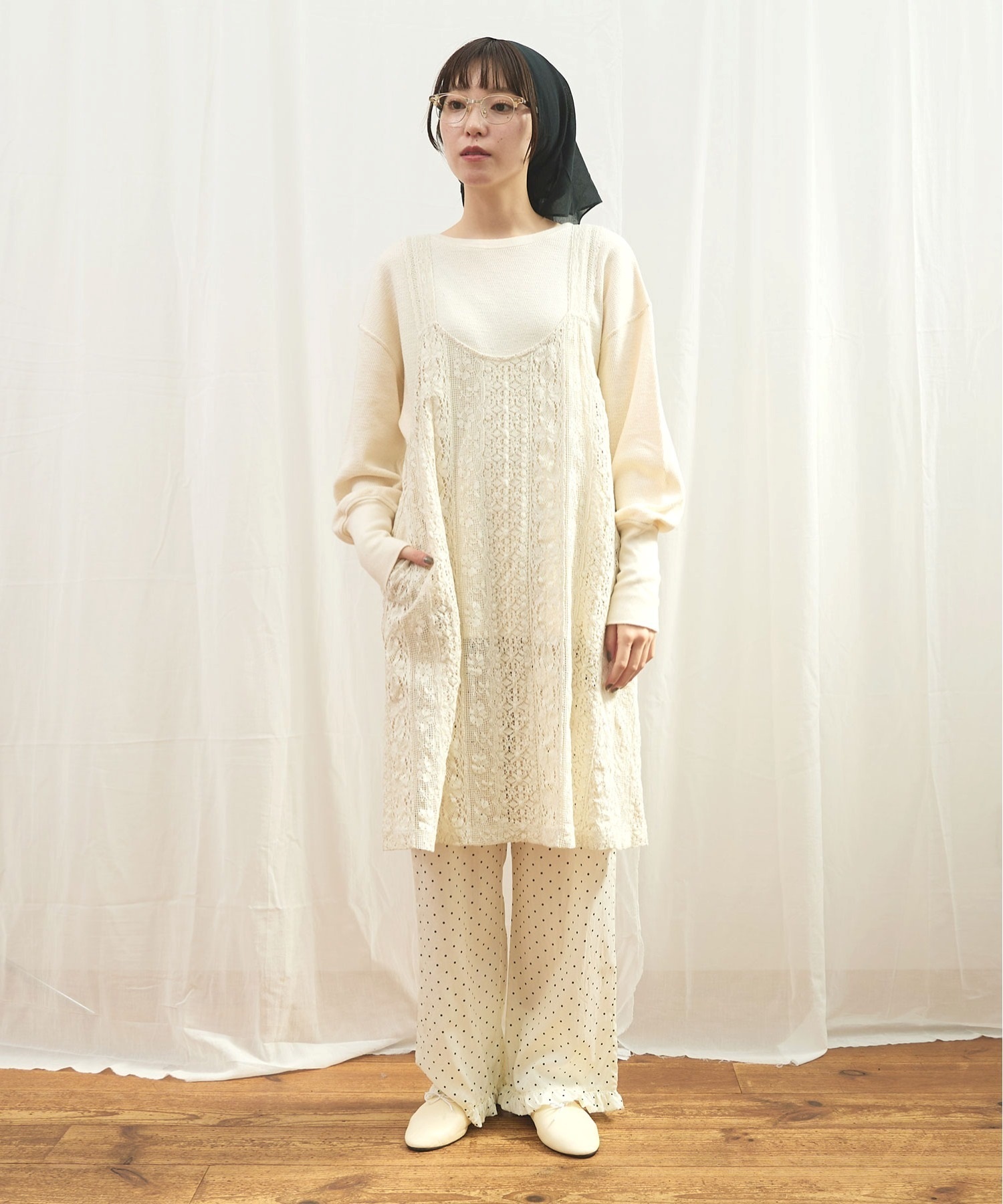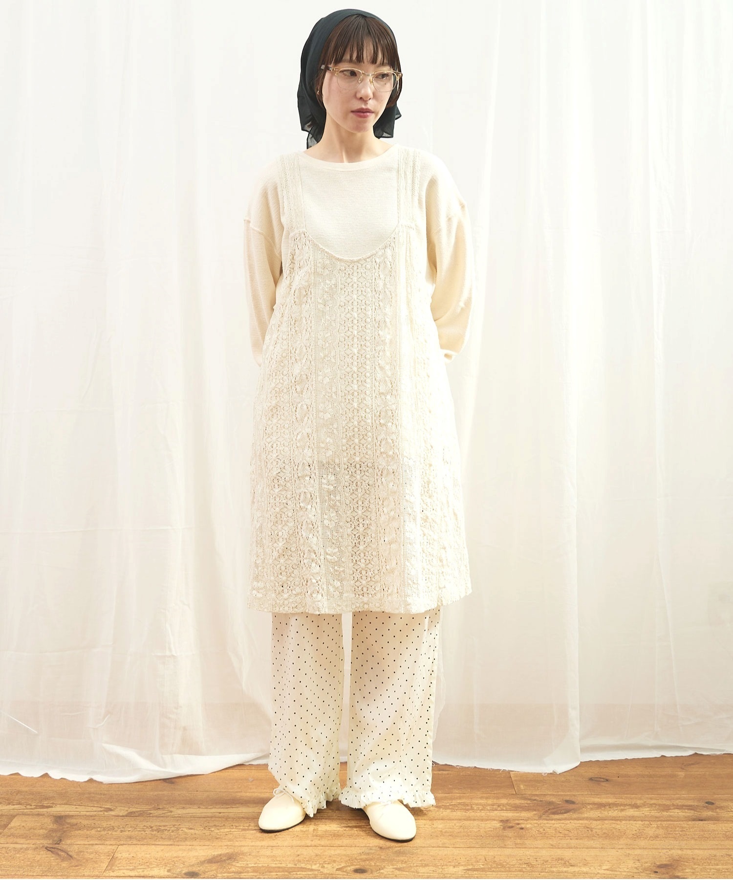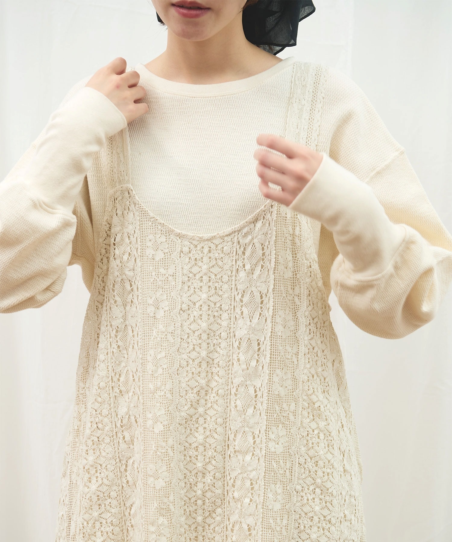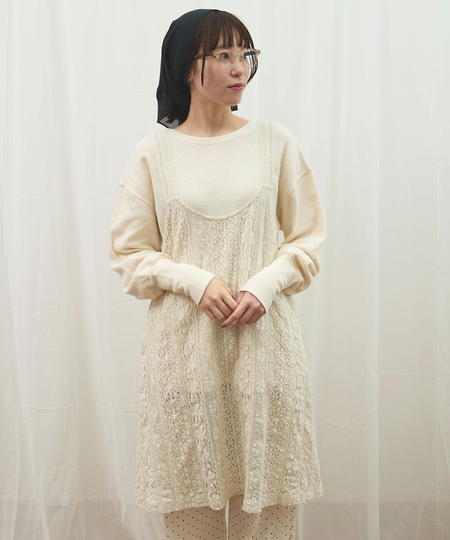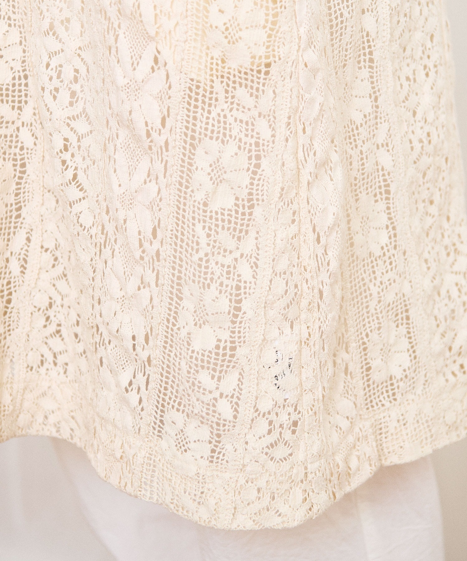 ・この製品はレースを使用しておりますので、生地の縮みに違いが生じる場合がございますが、デザイン上避けることが出来ません。