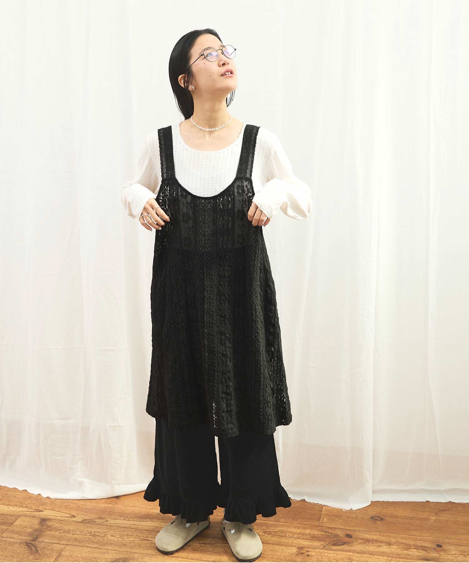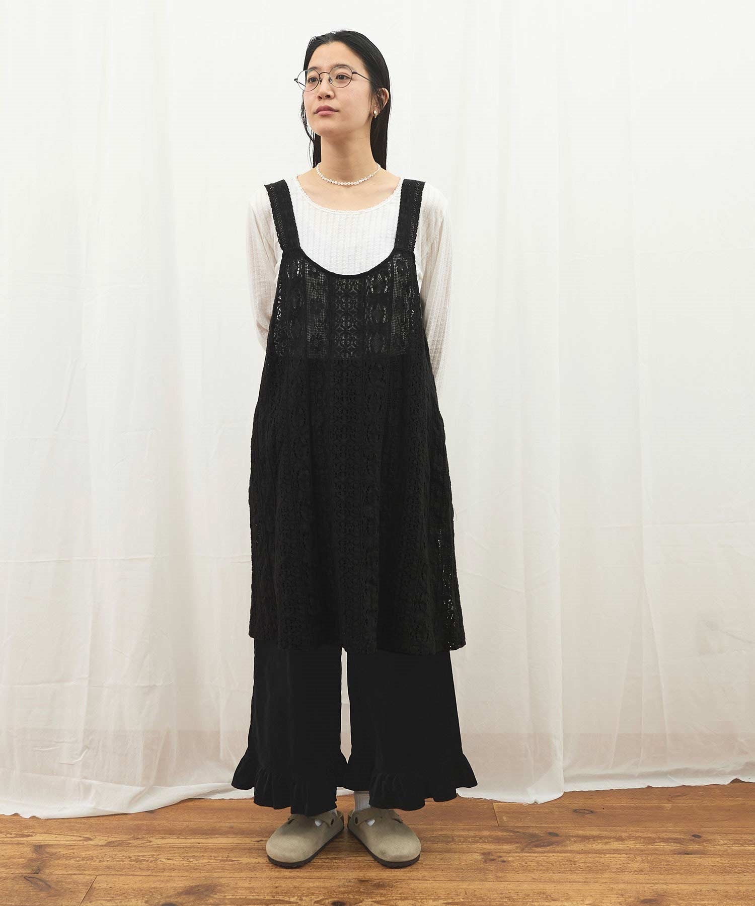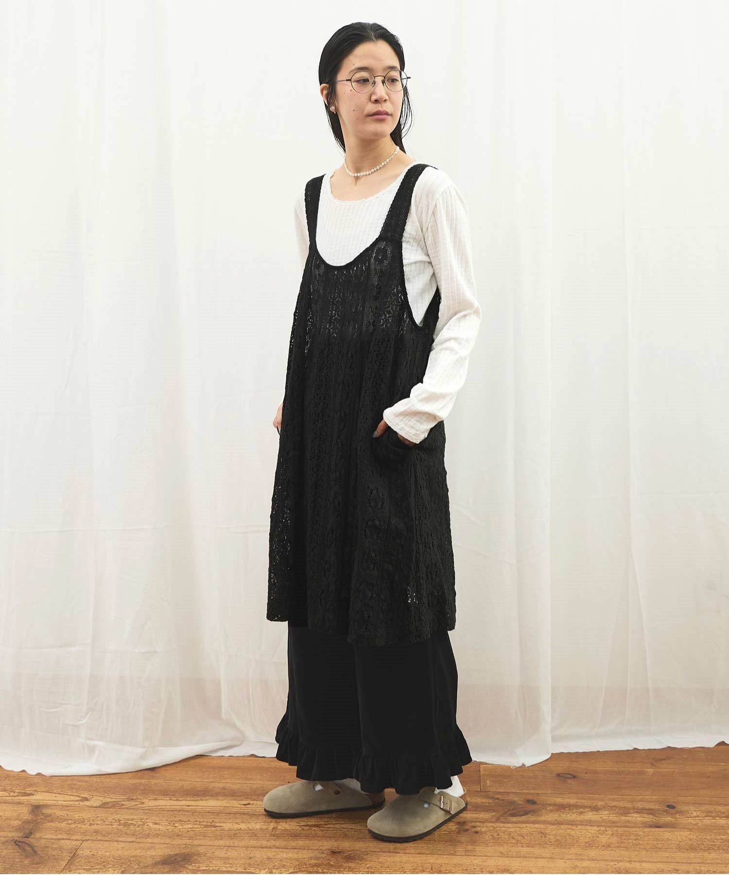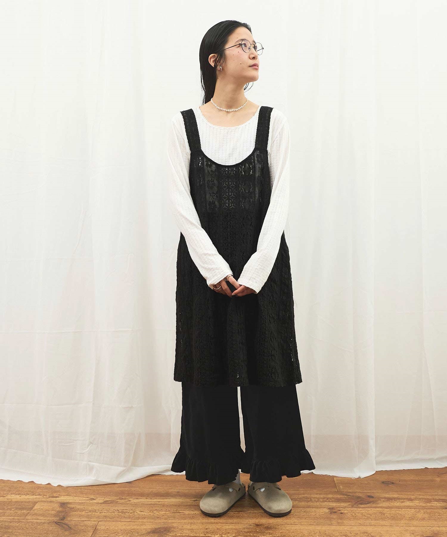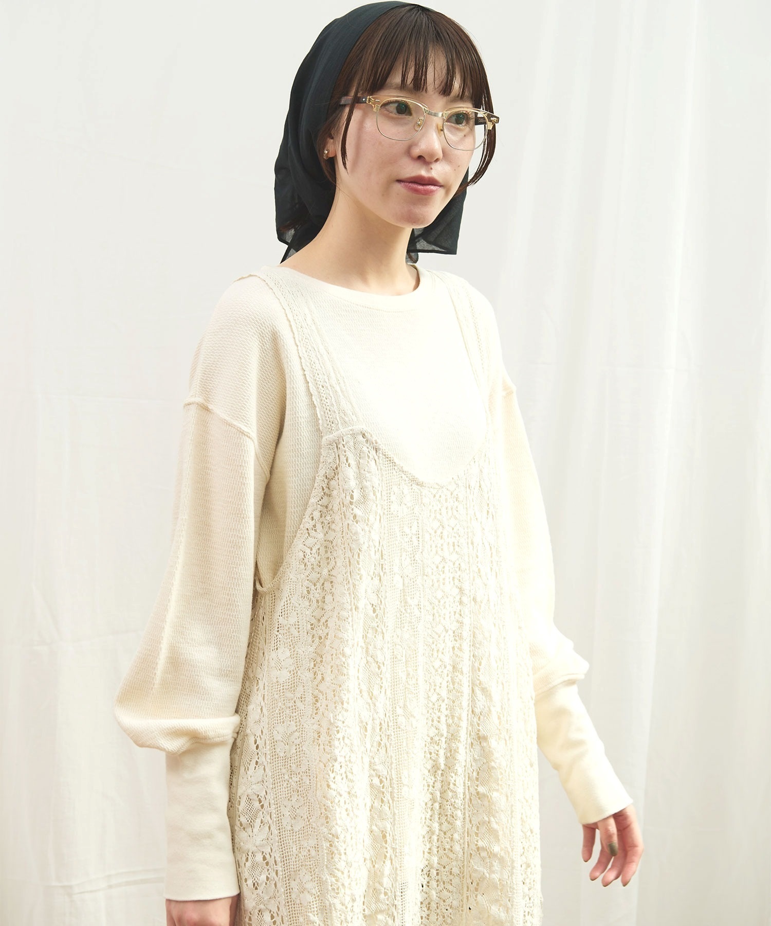 ・この製品はレースを使用しておりますので、生地の縮みに違いが生じる場合がございますが、デザイン上避けることが出来ません。