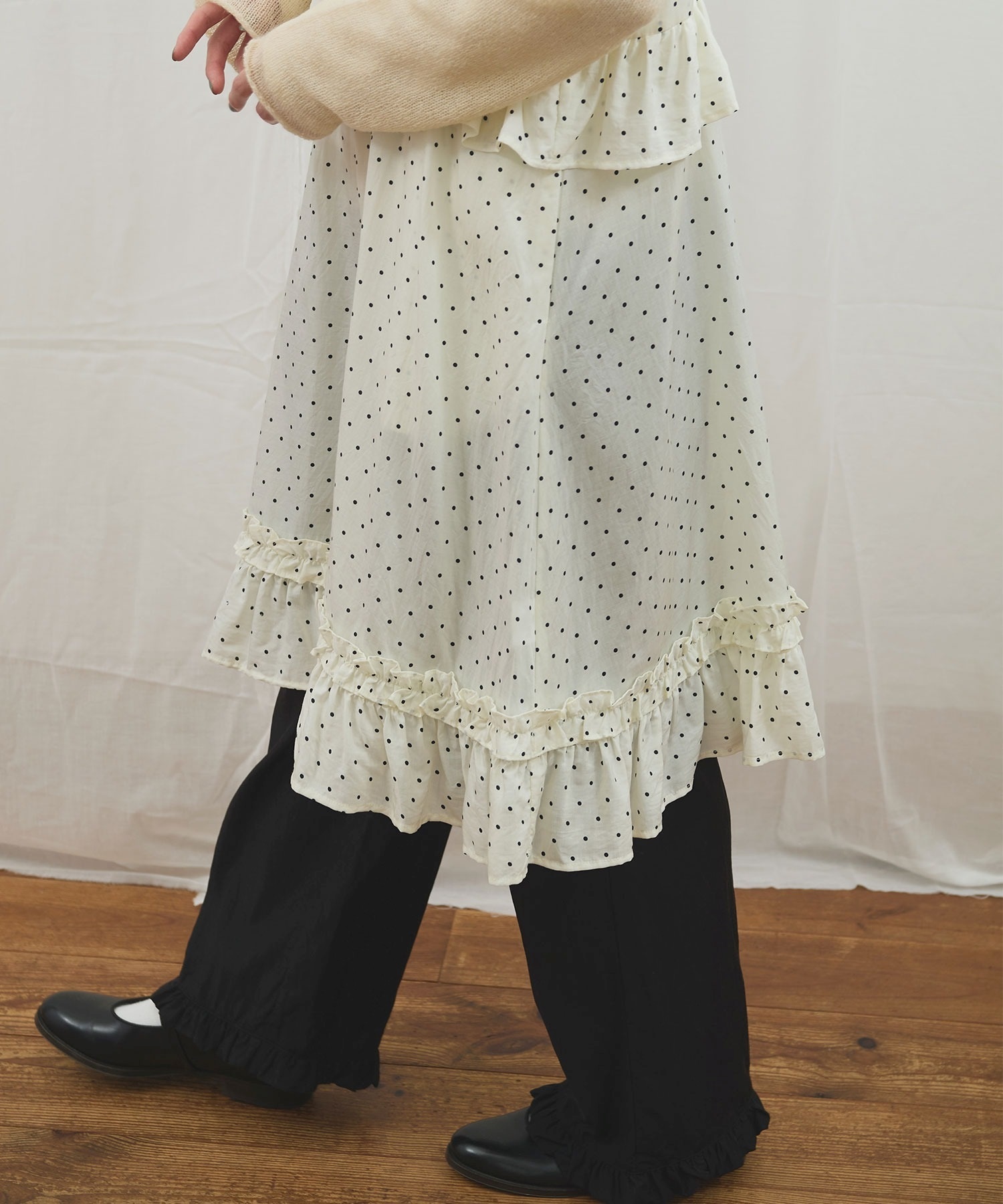 主張すぎないさりげないフリルでどんなコーディネートにも合わせやすいです。