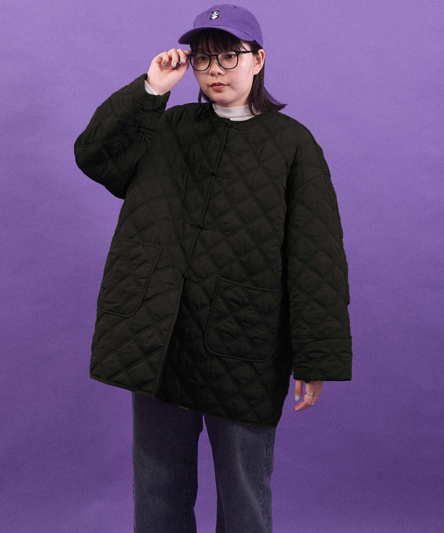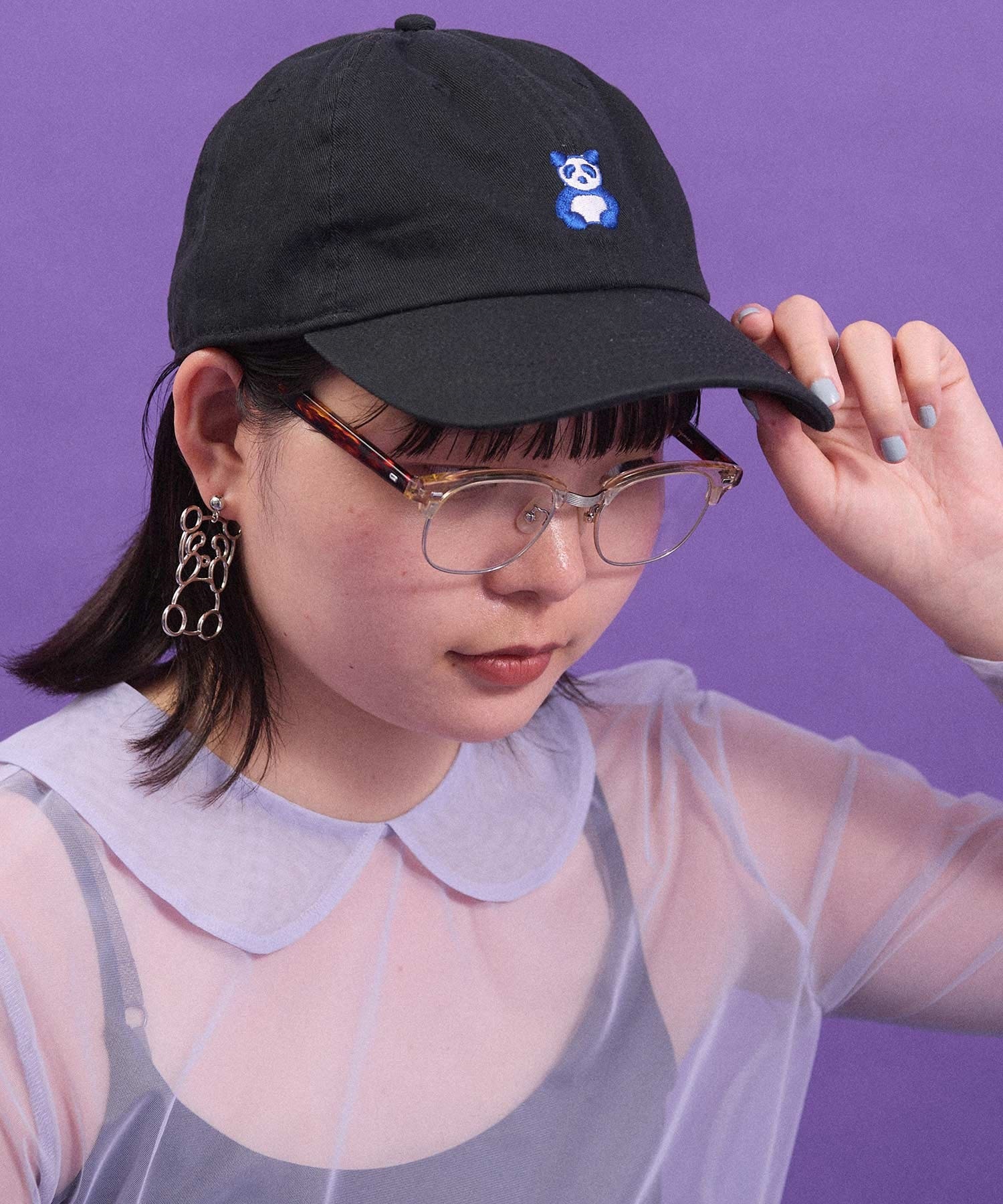 パンダの刺繍キャップ。