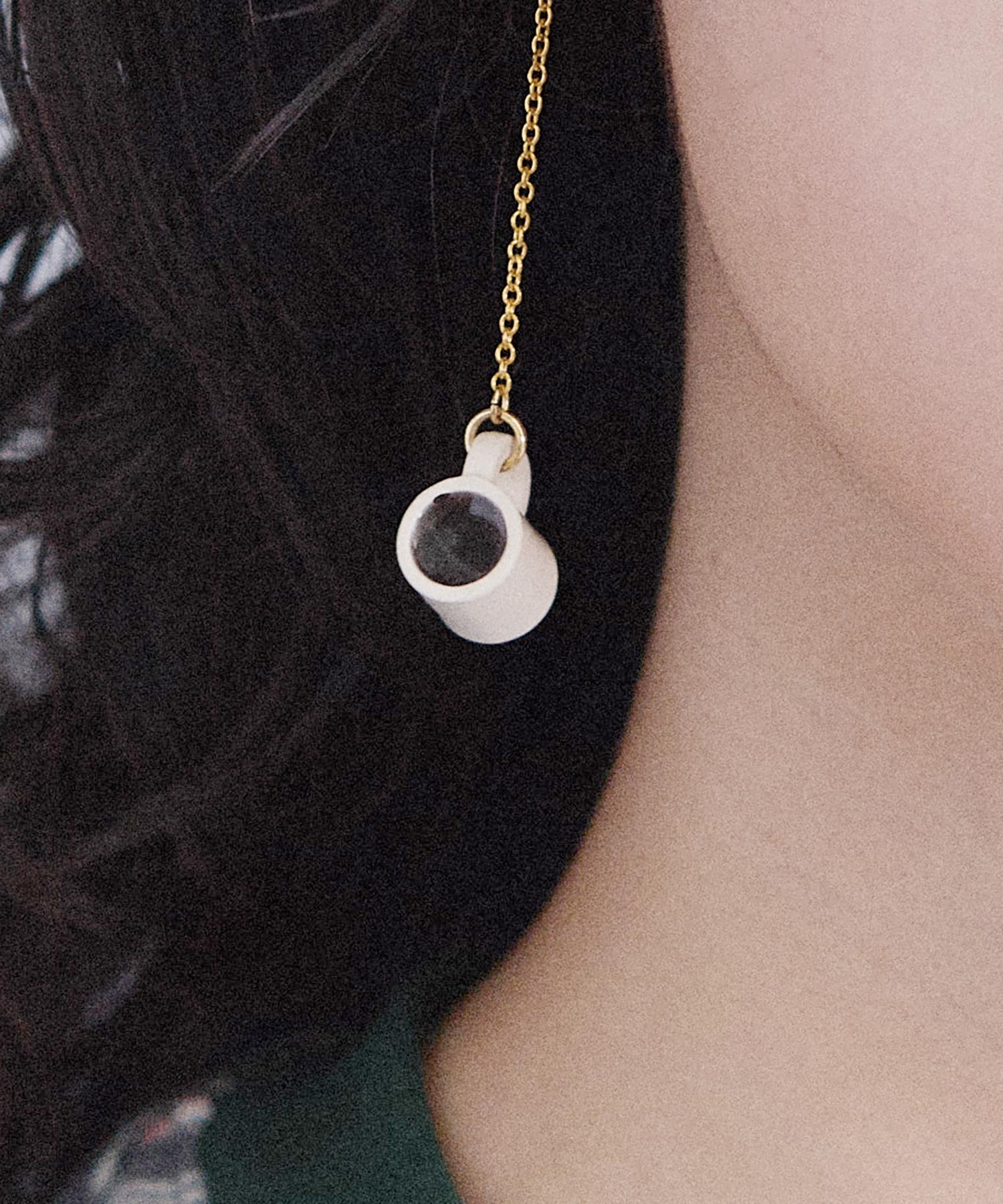 ゆらゆら揺れるホットコーヒーのピアス。