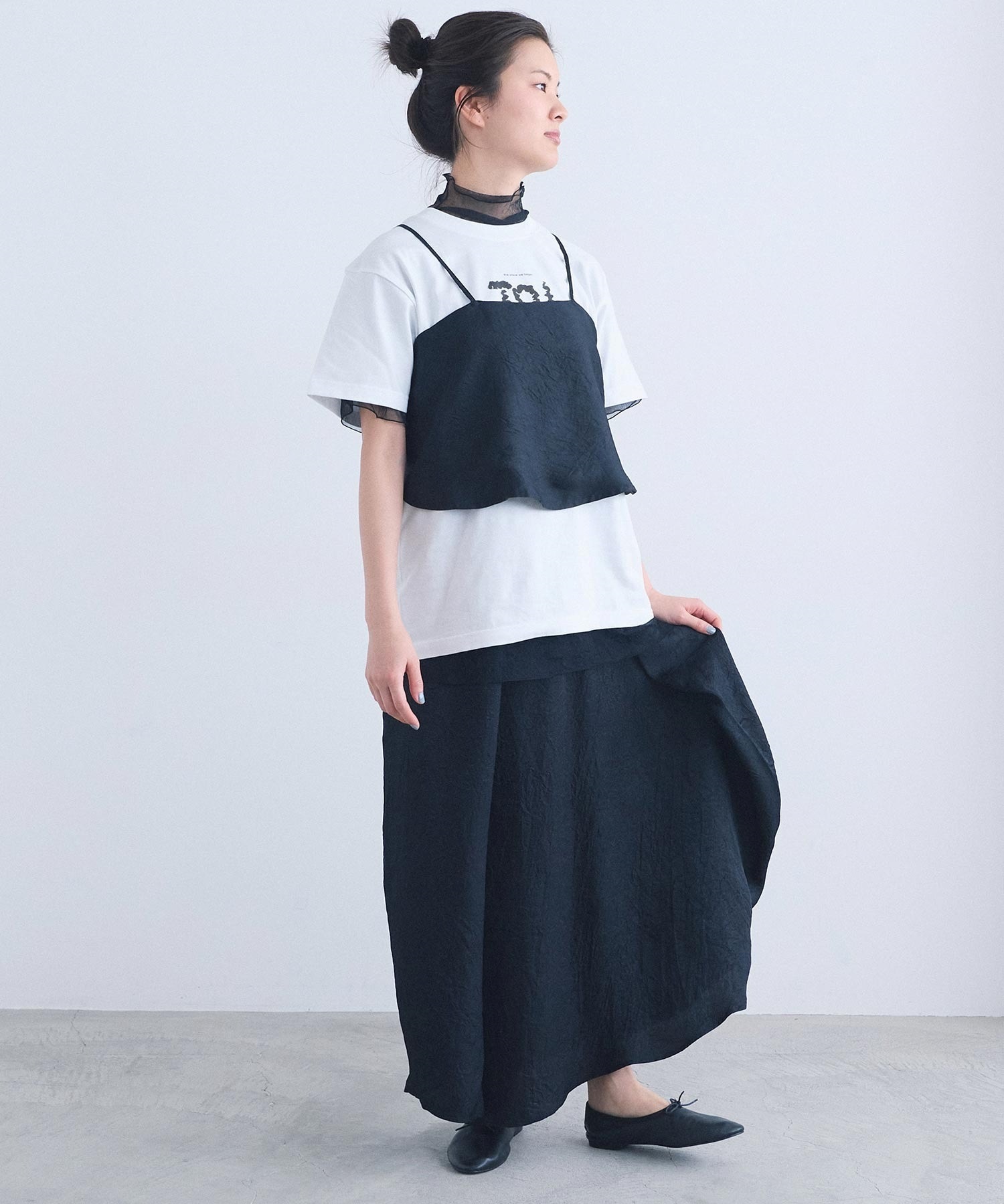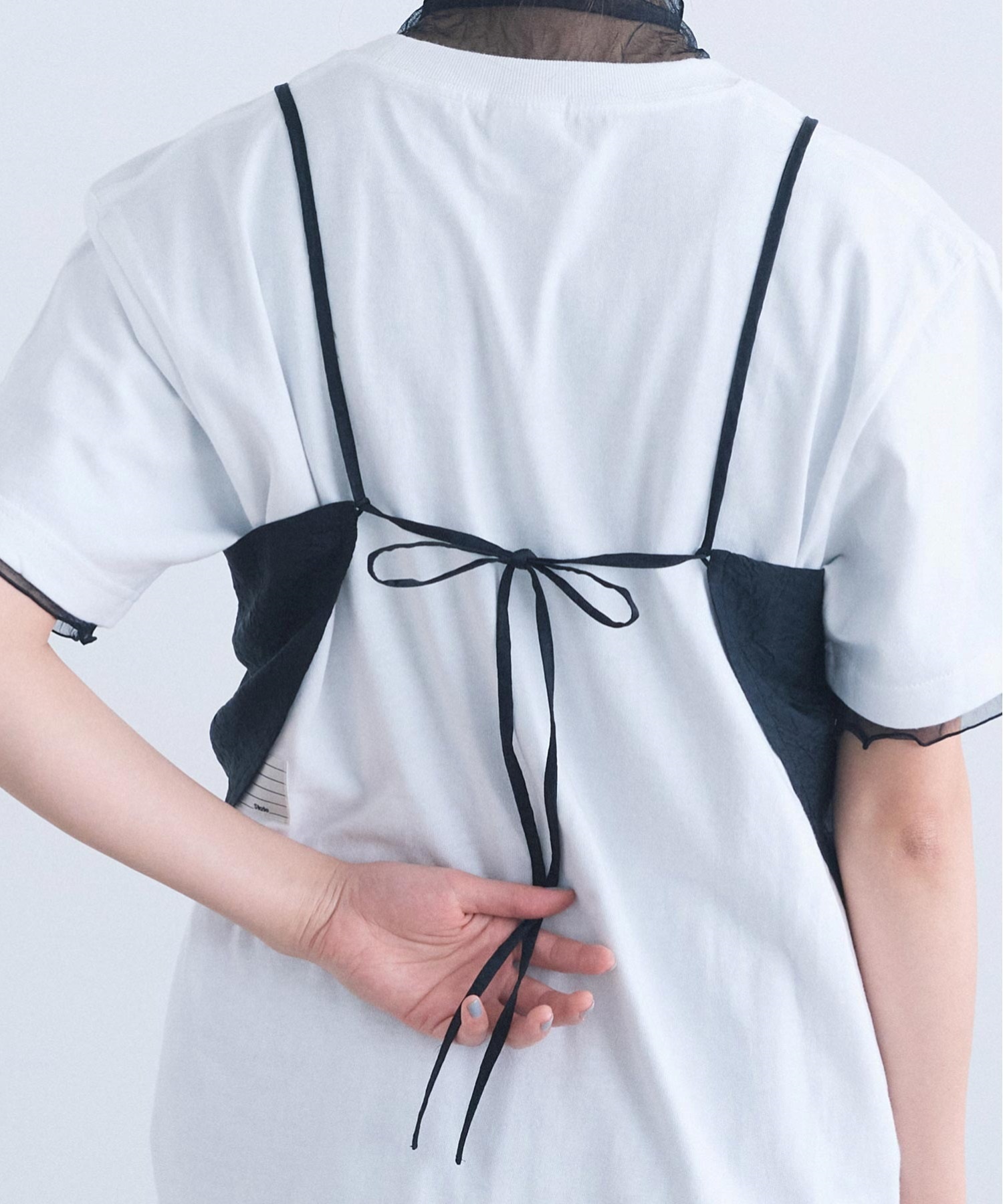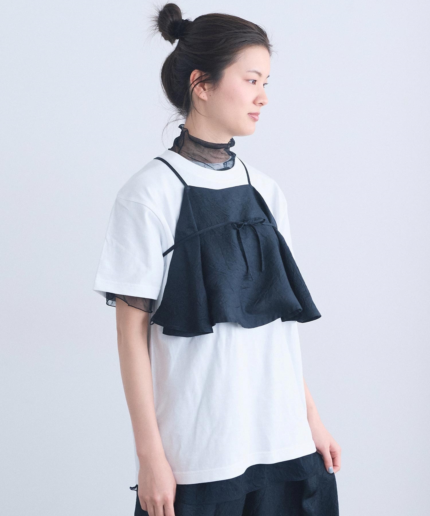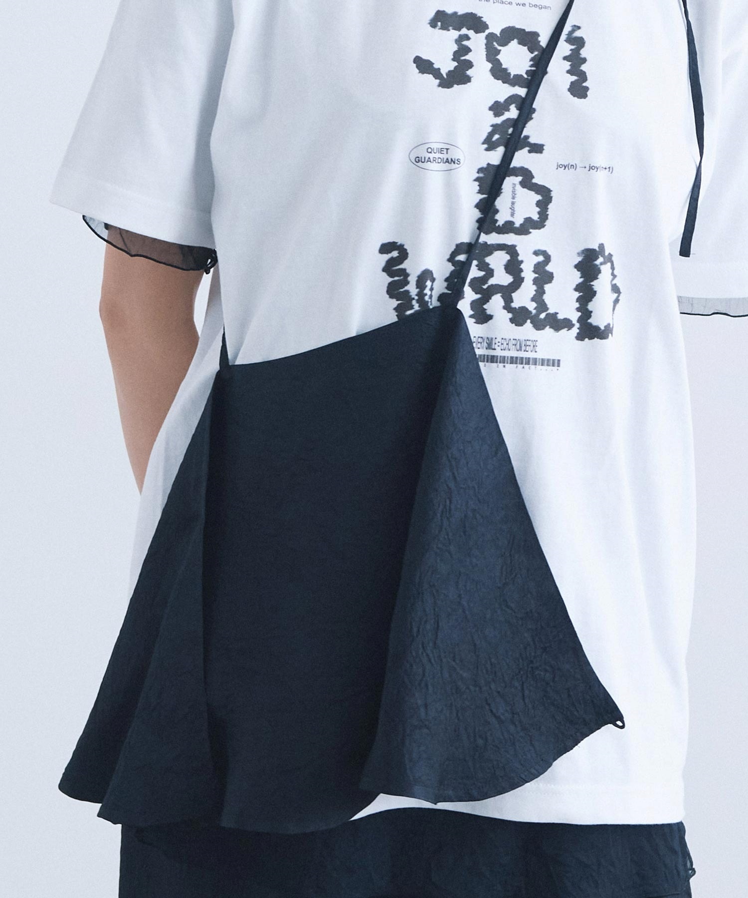 肩紐のアレンジで、衿にも、ウエストにも、バッグのようにも。