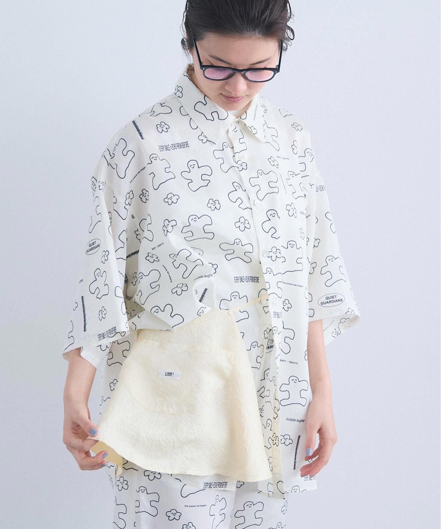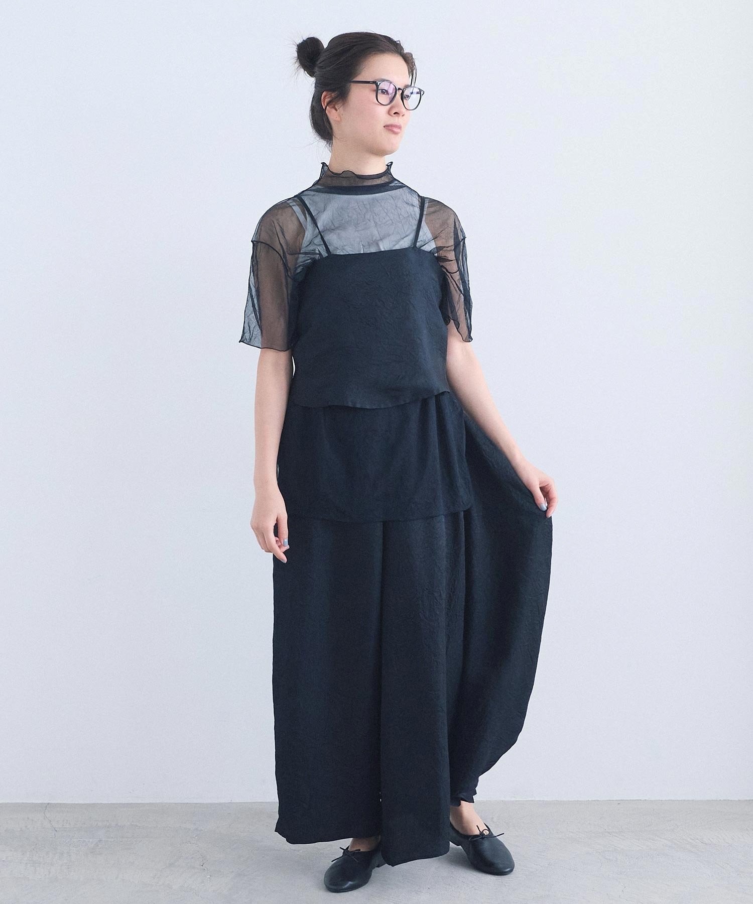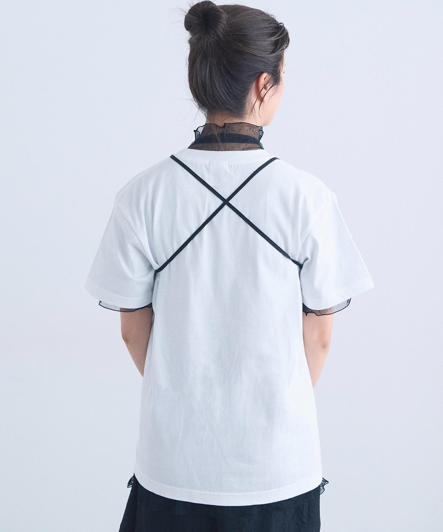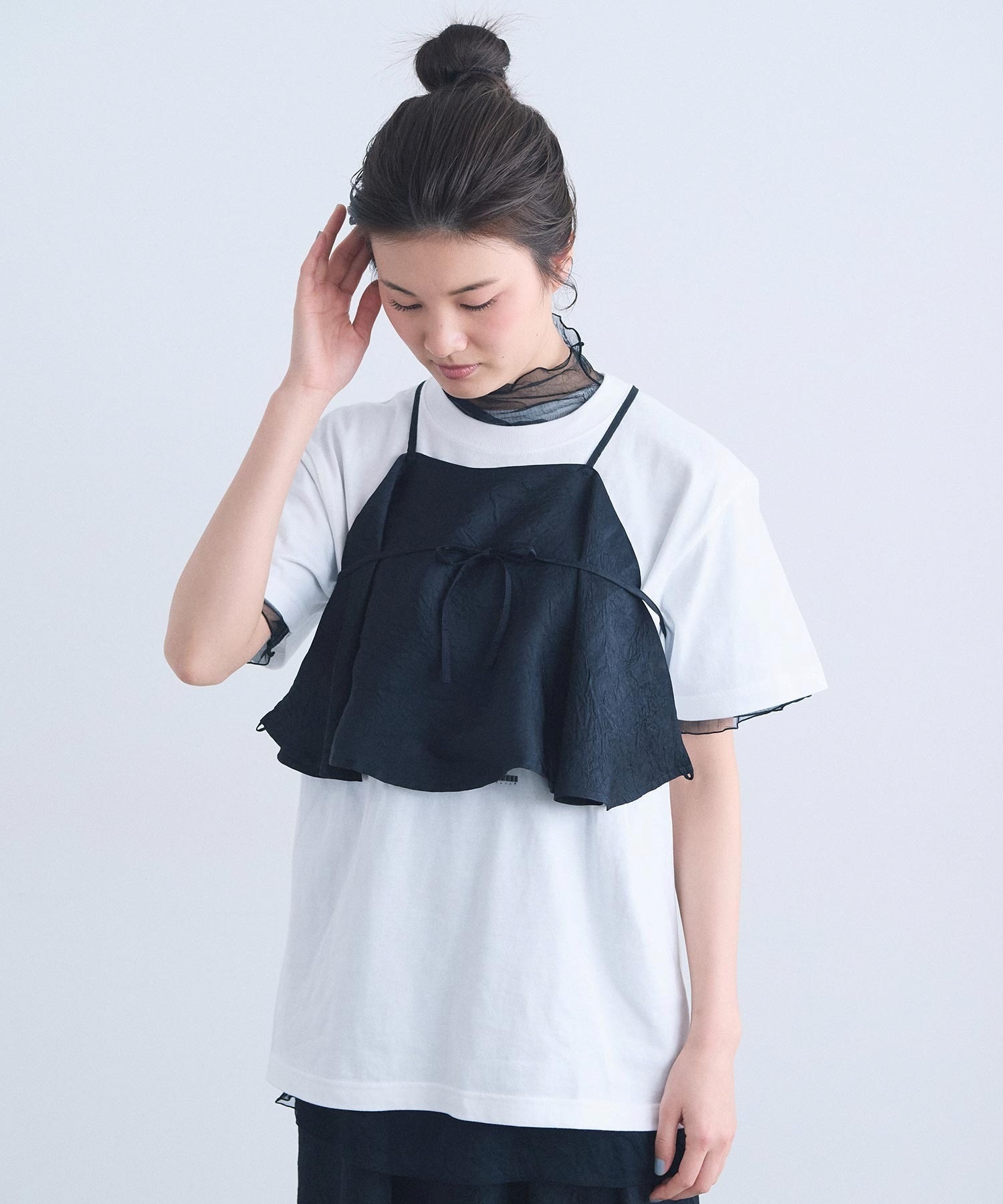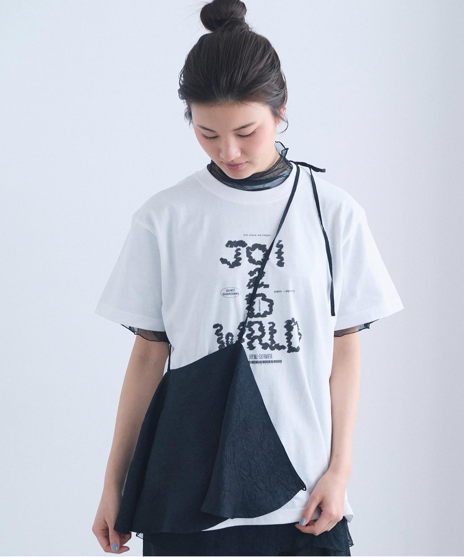 肩紐のアレンジで、衿にも、ウエストにも、バッグのようにも。