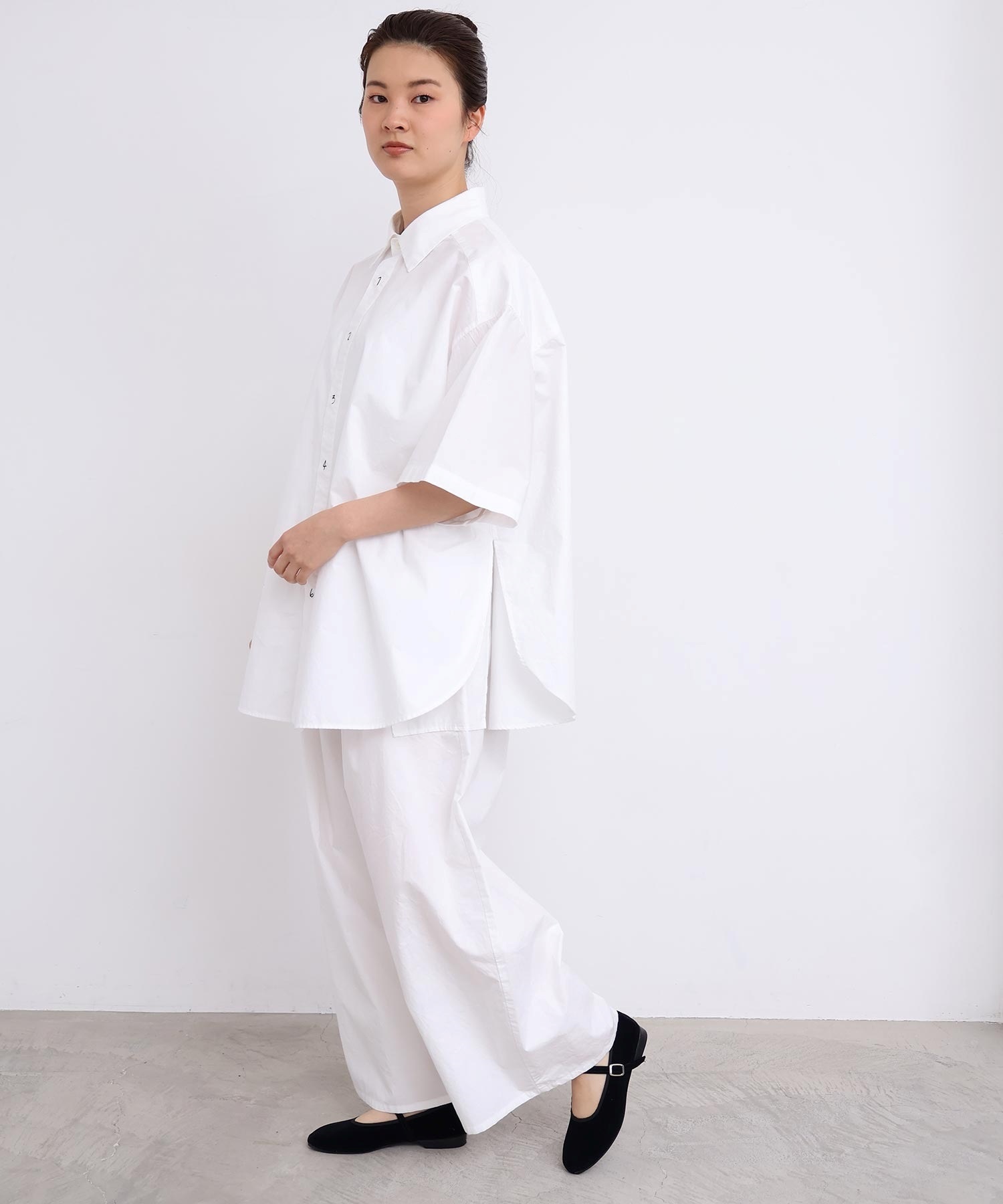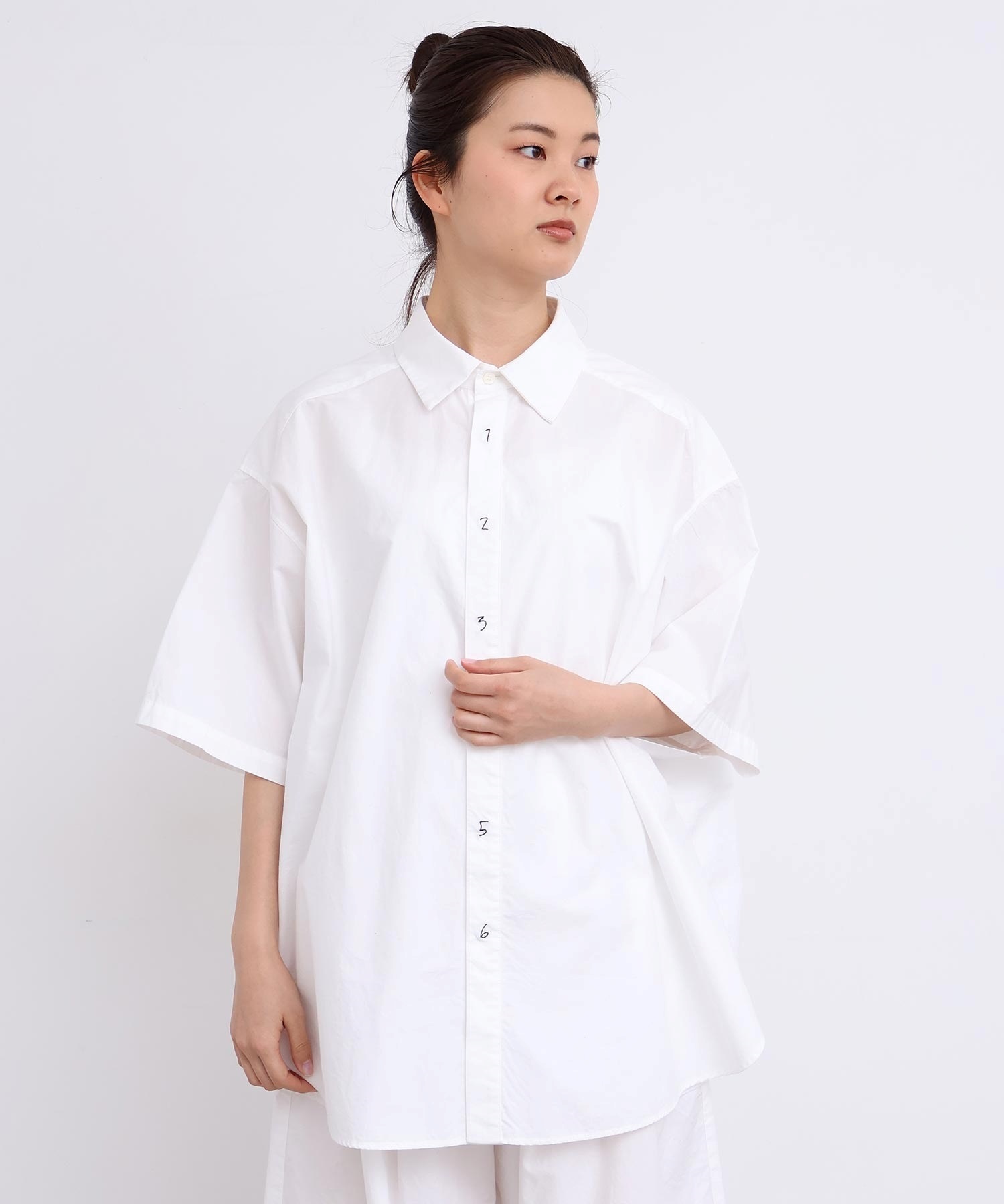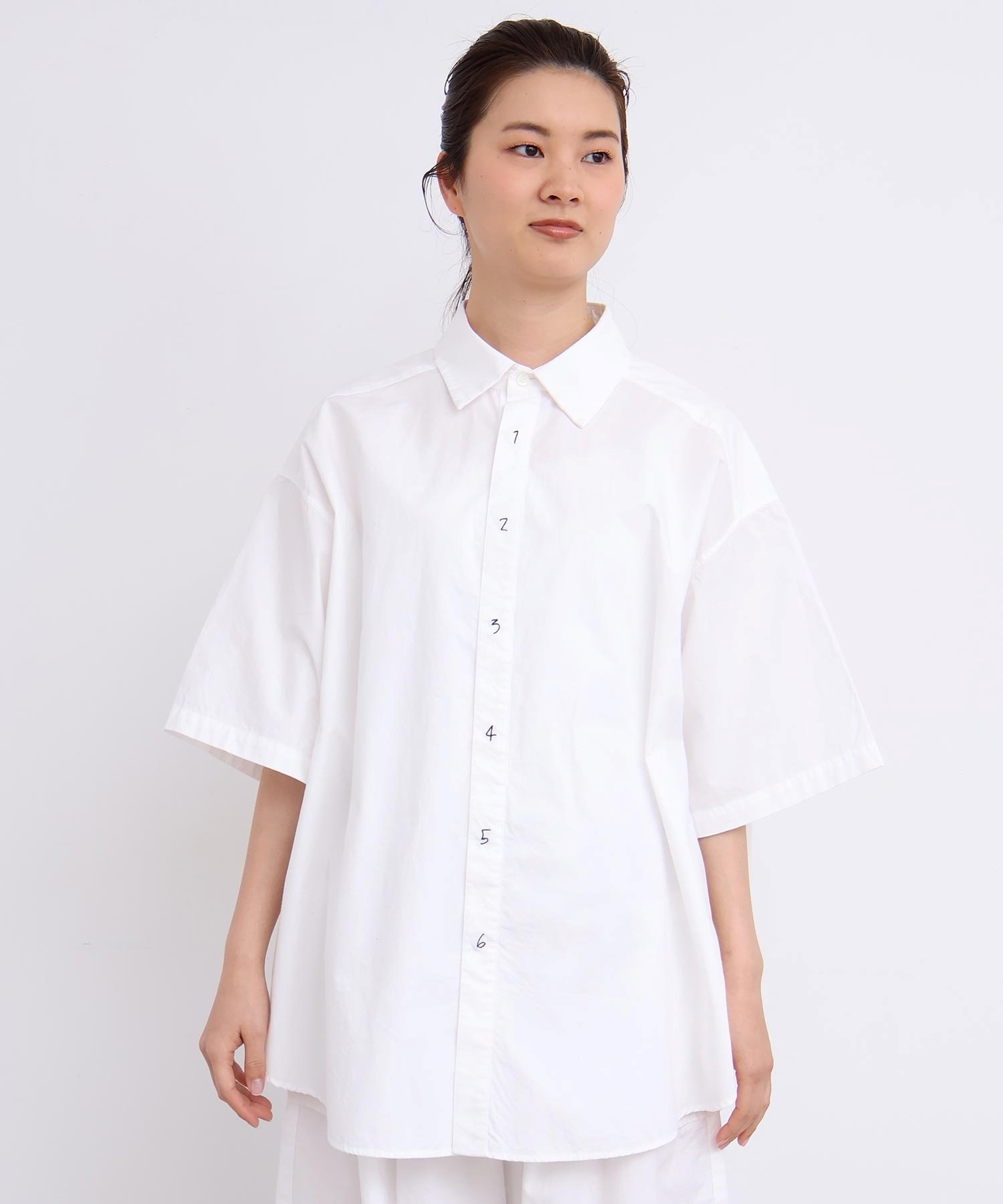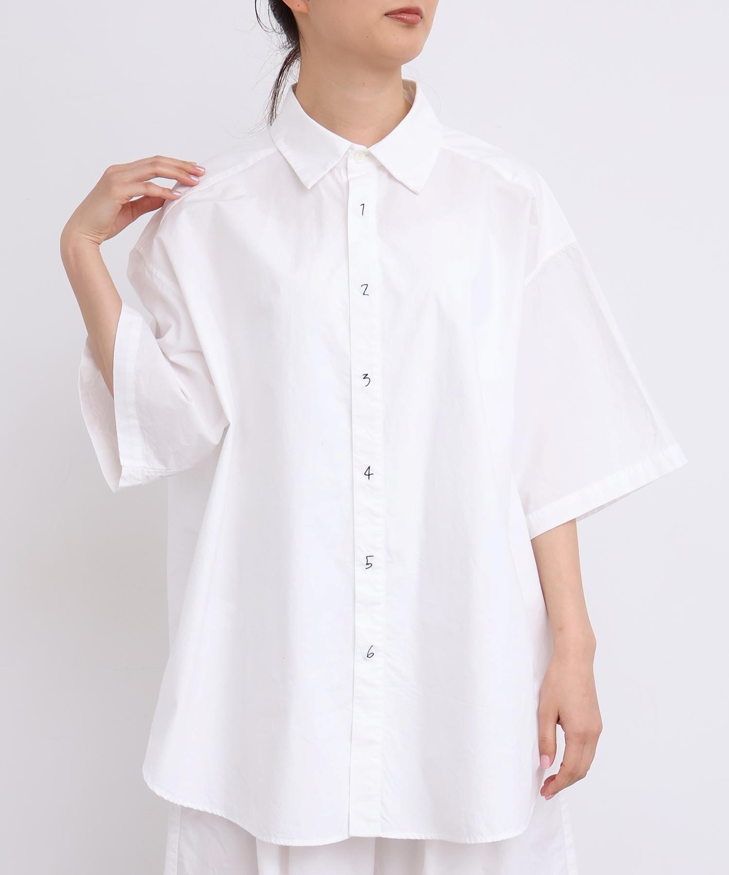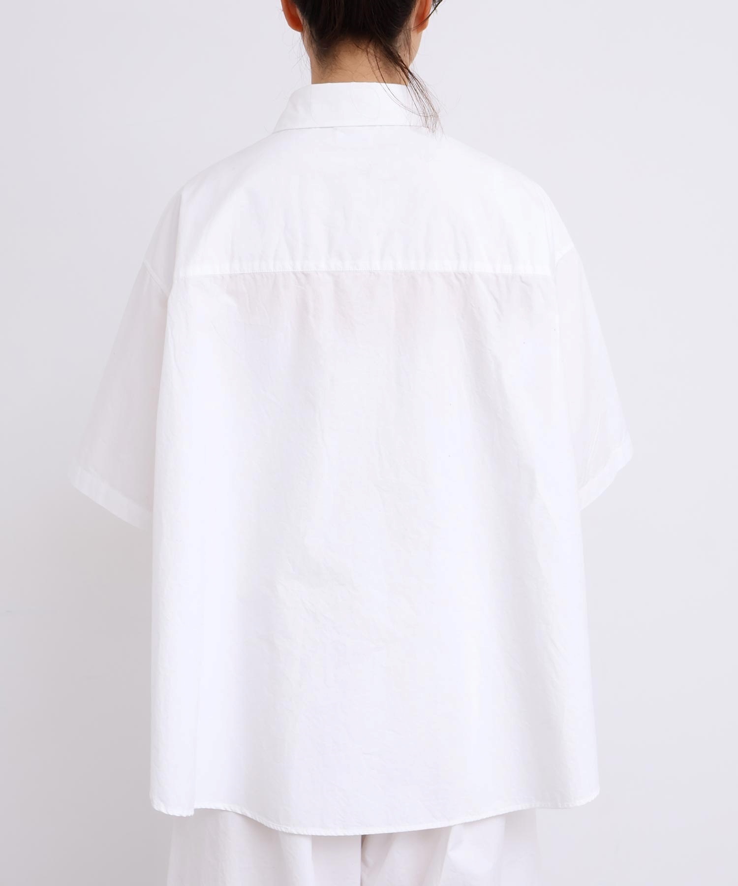 架空の女性「SUSIE」をイメージした綿100%タイプライター生地のオーバーサイズシャツ。