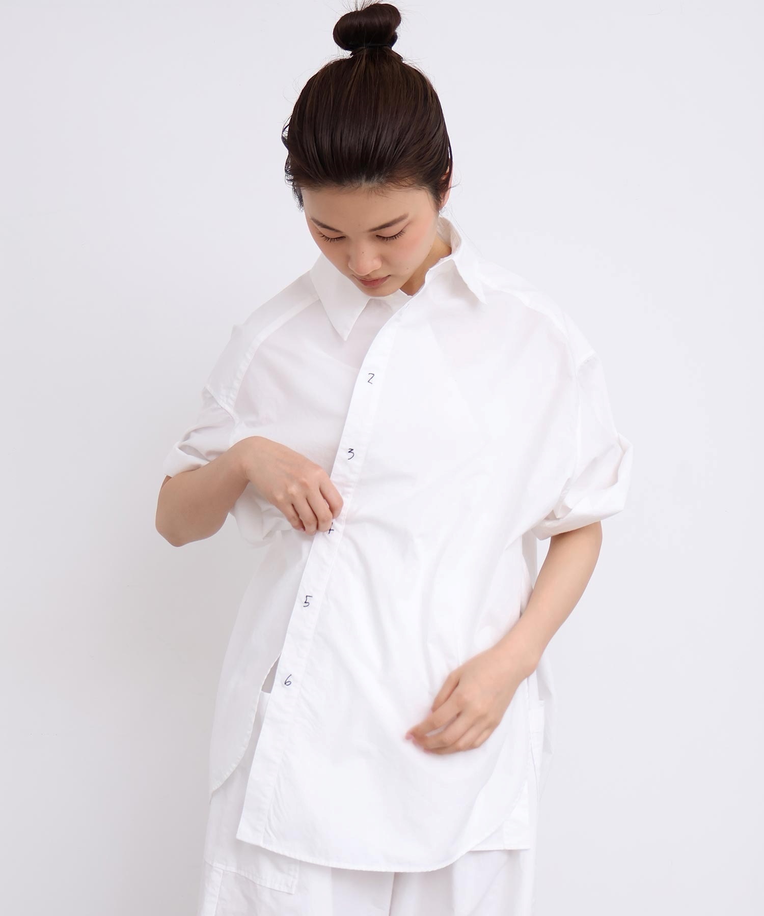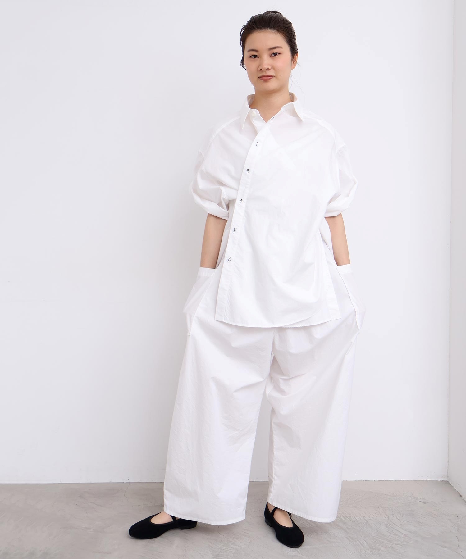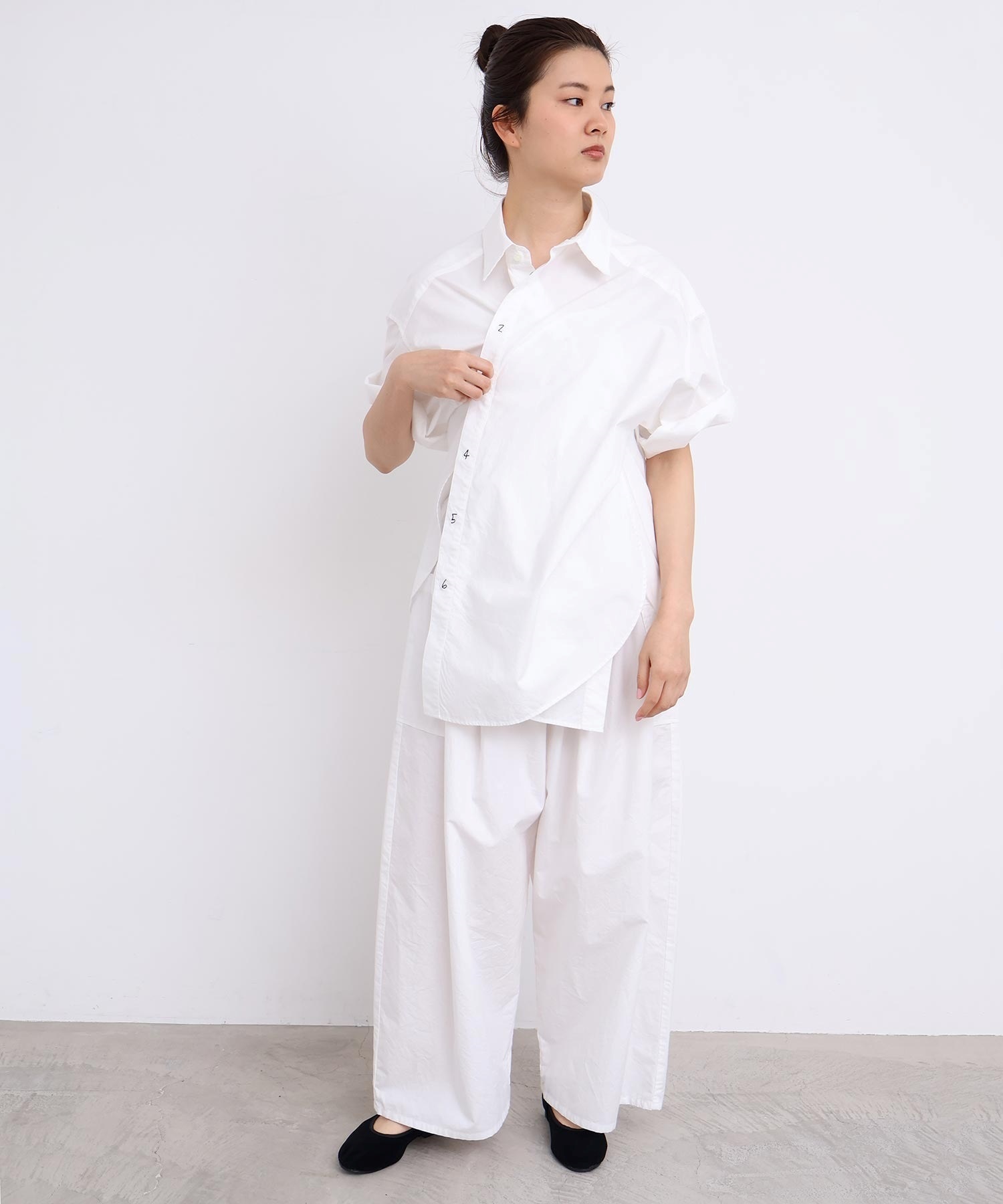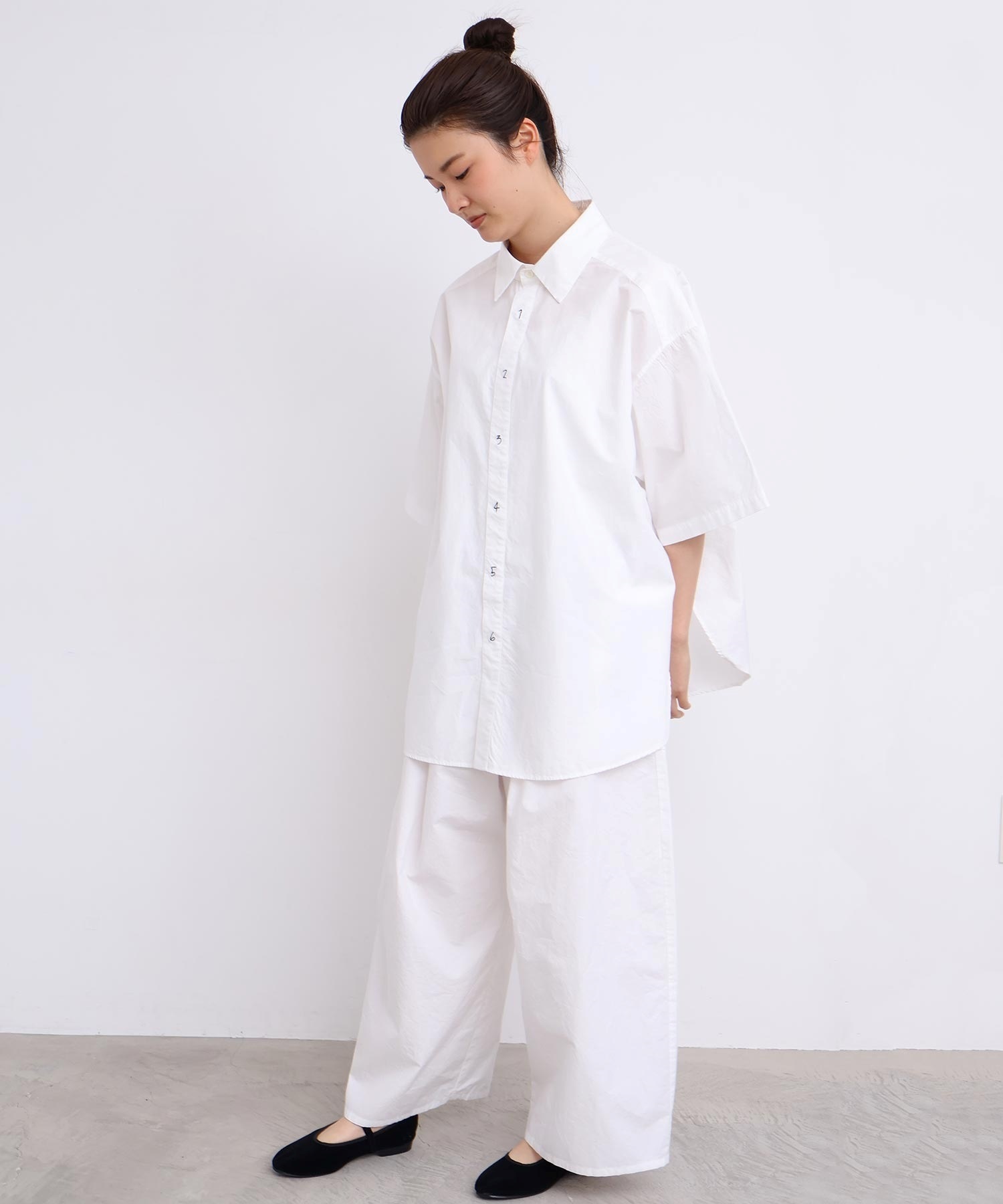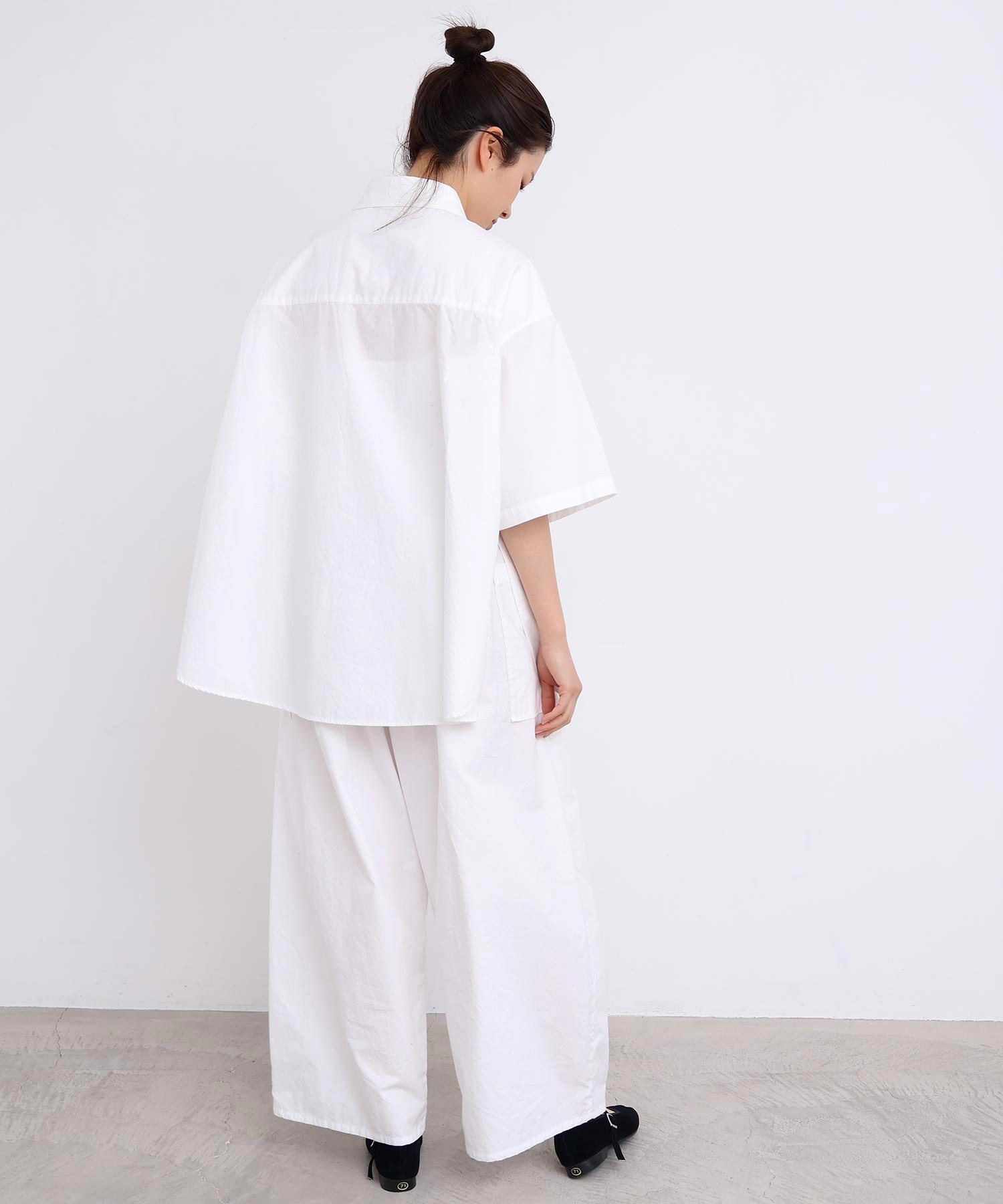 架空の女性「SUSIE」をイメージした綿100%タイプライター生地のオーバーサイズシャツ。