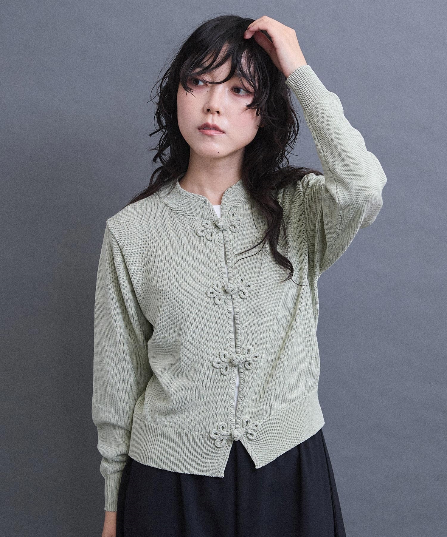 アイアムアイの華ボタンニット。
