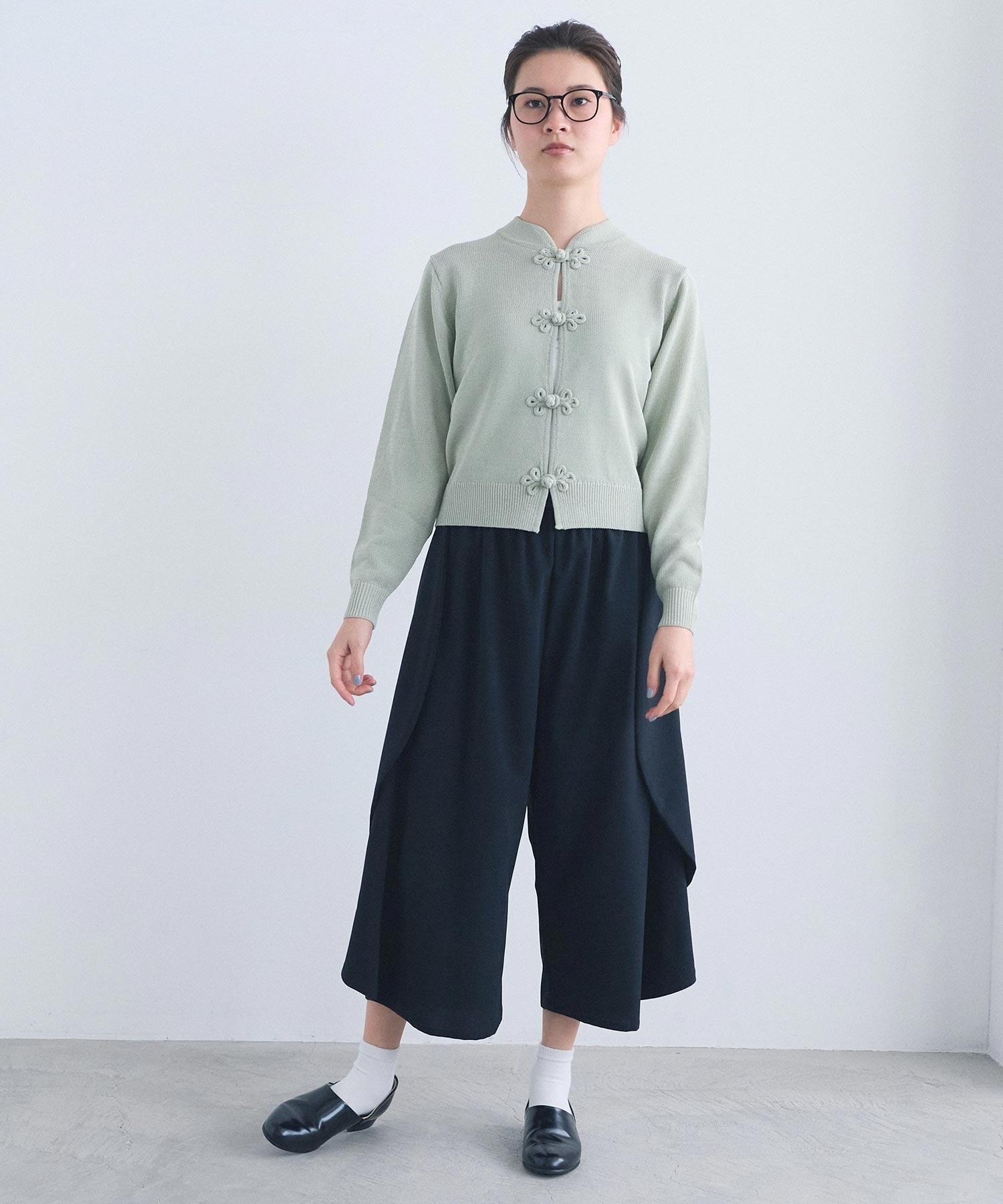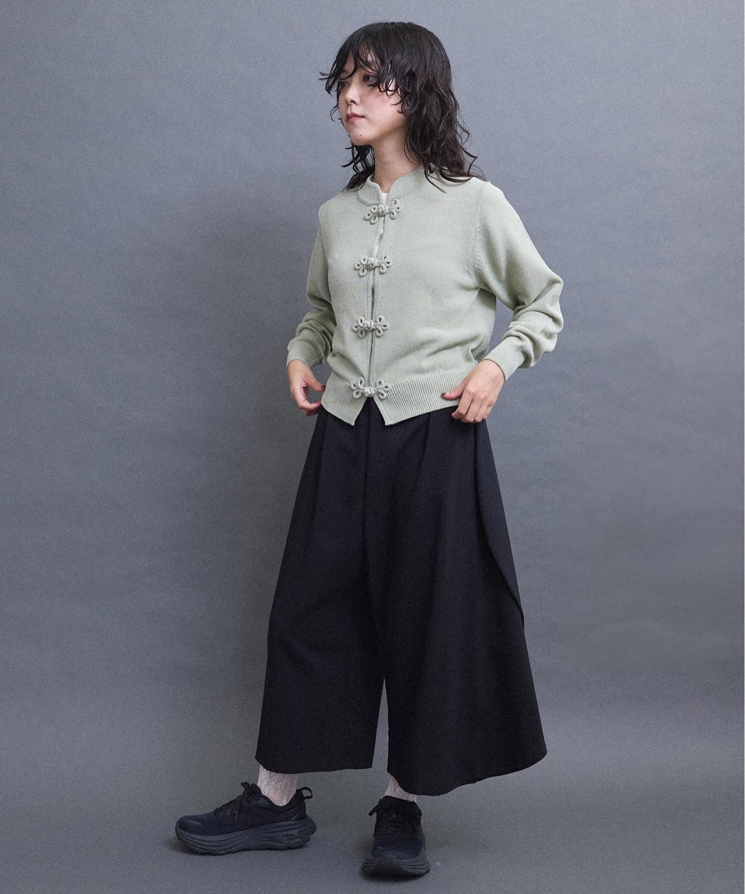 羽織りとしても、前を閉じてプルオーバーとしても。
