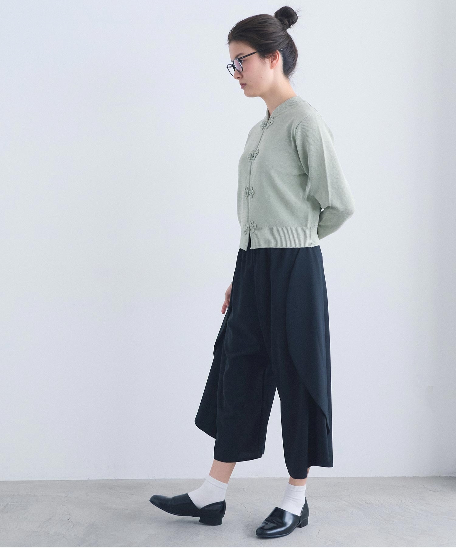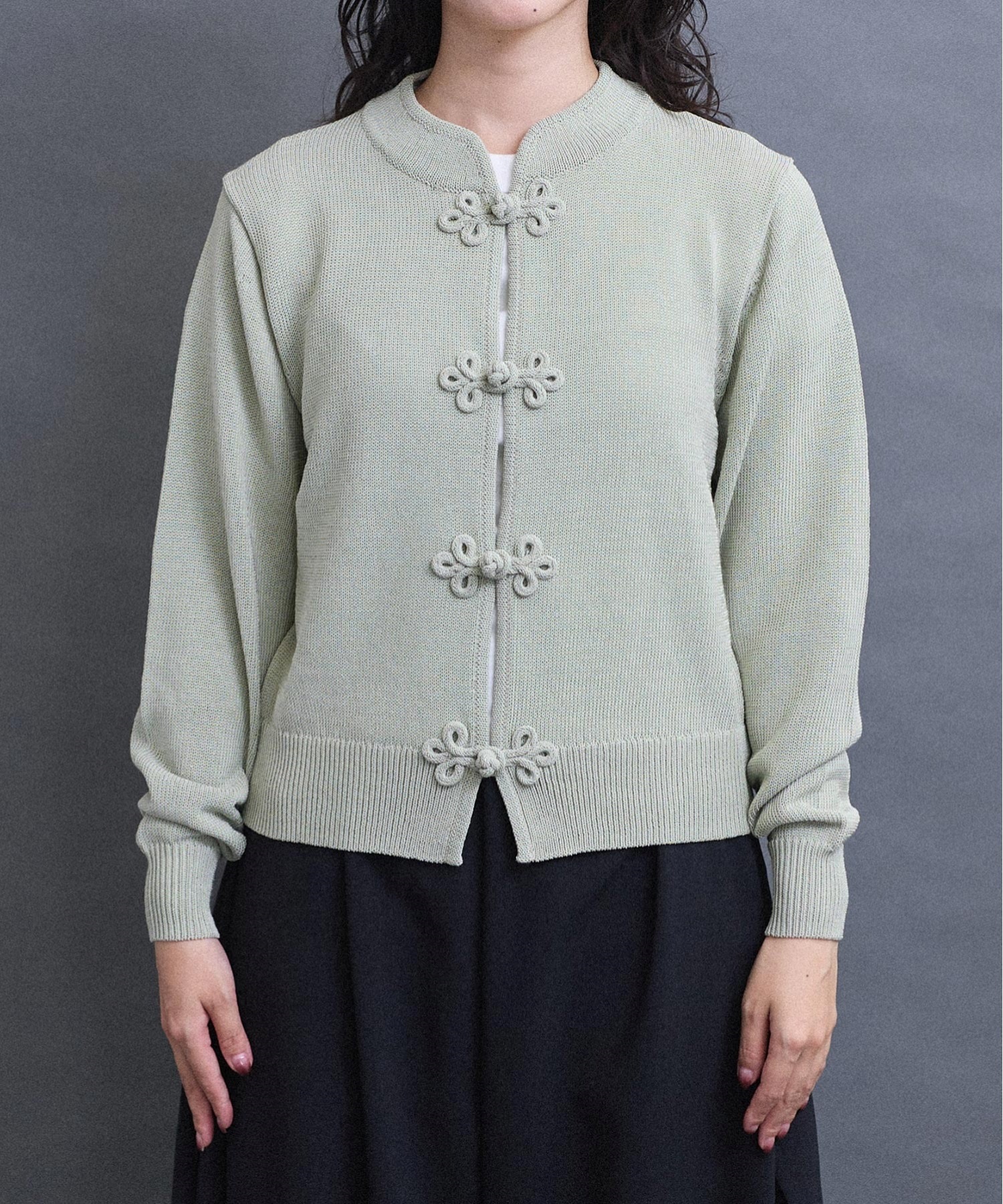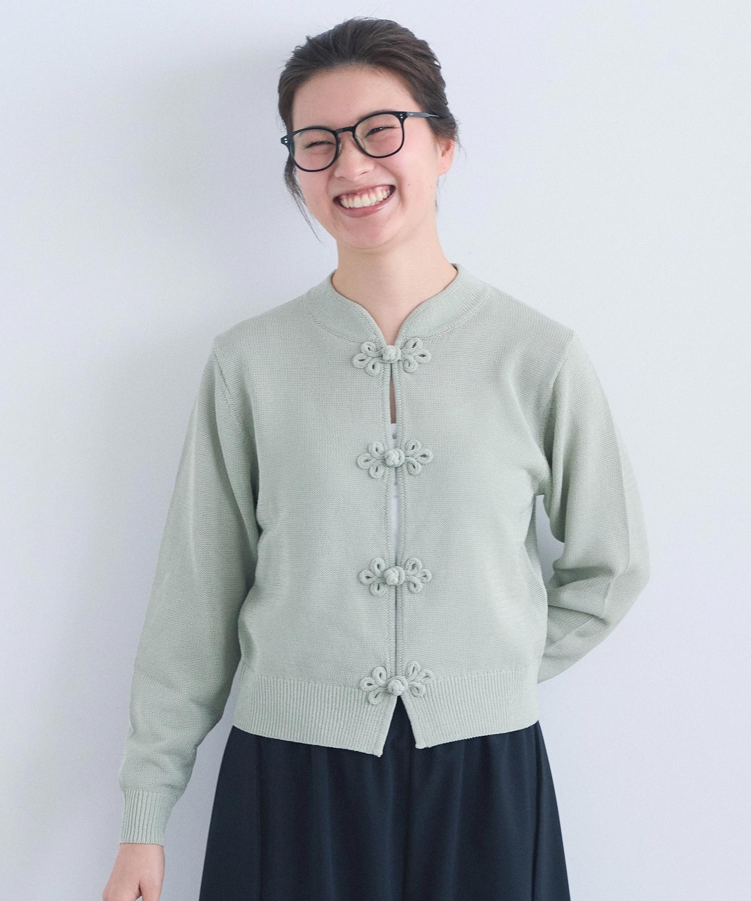 いつもより少し太めの糸で編んでいるため、ほどよい重さがあり着た時に体にしっくりとくる印象に仕上がりました。