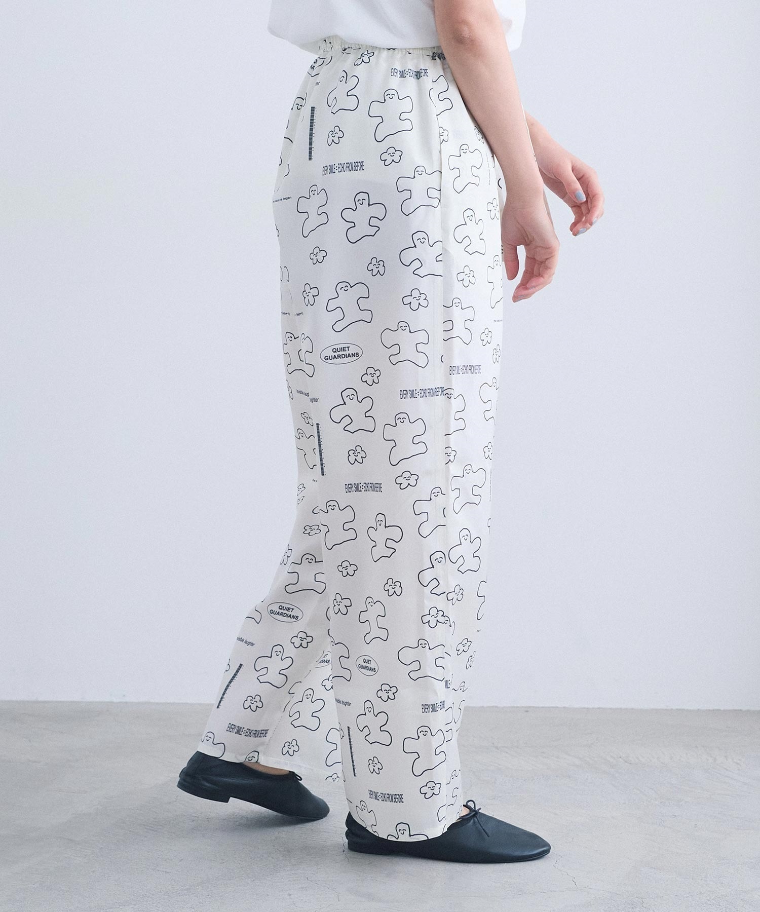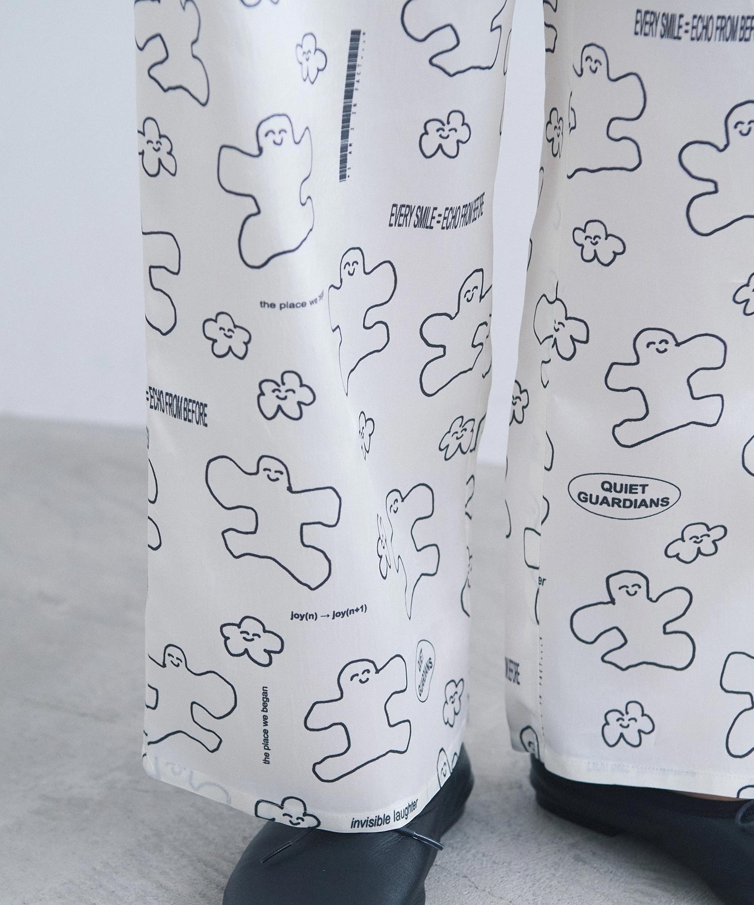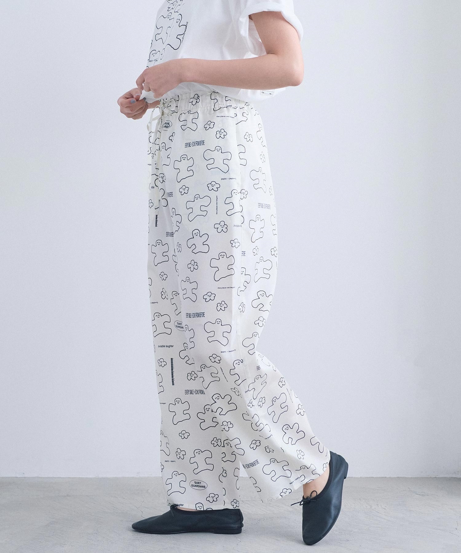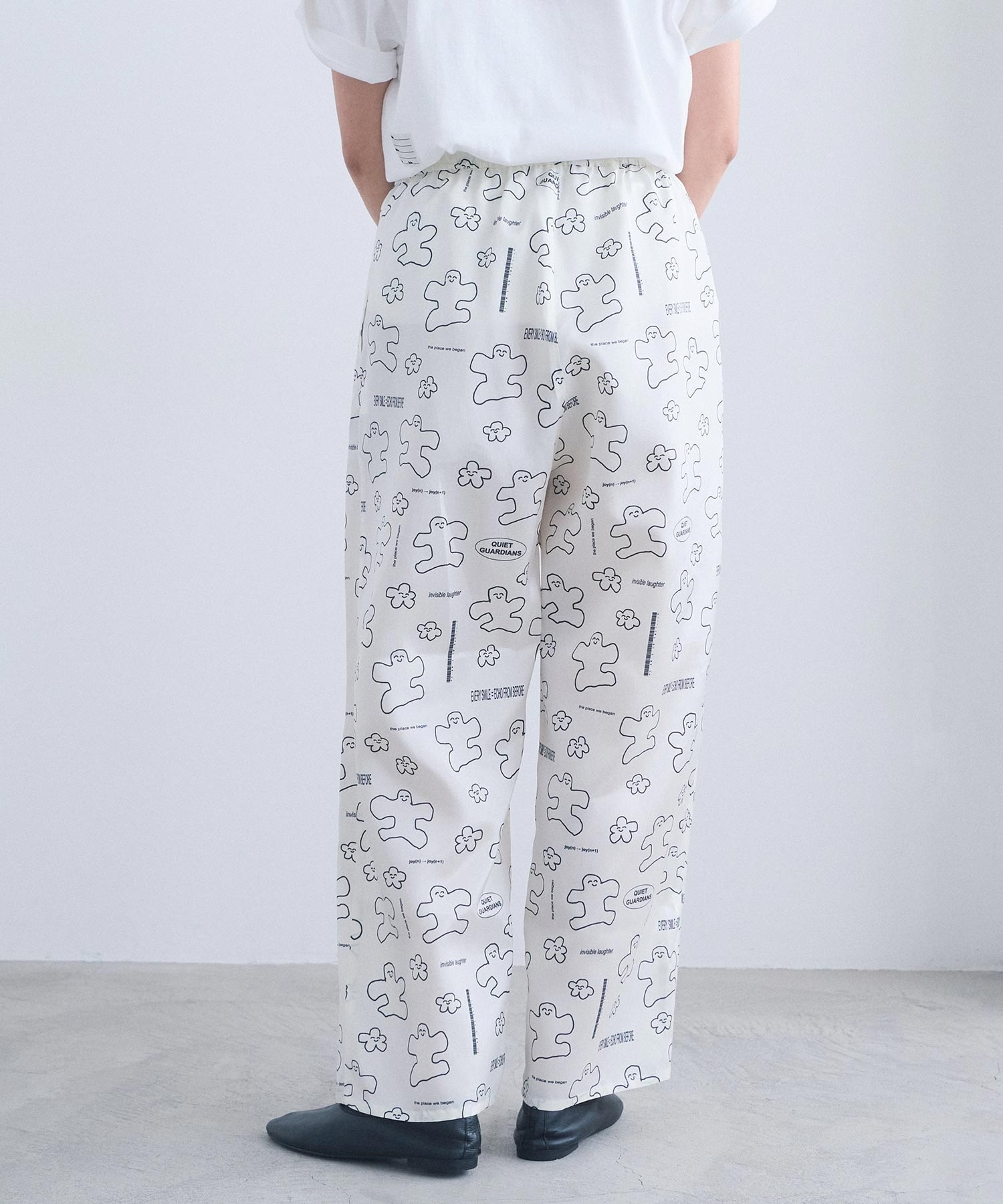 なめらかな落ち感が美しい、太めストレートシルエットのアート柄パンツ。