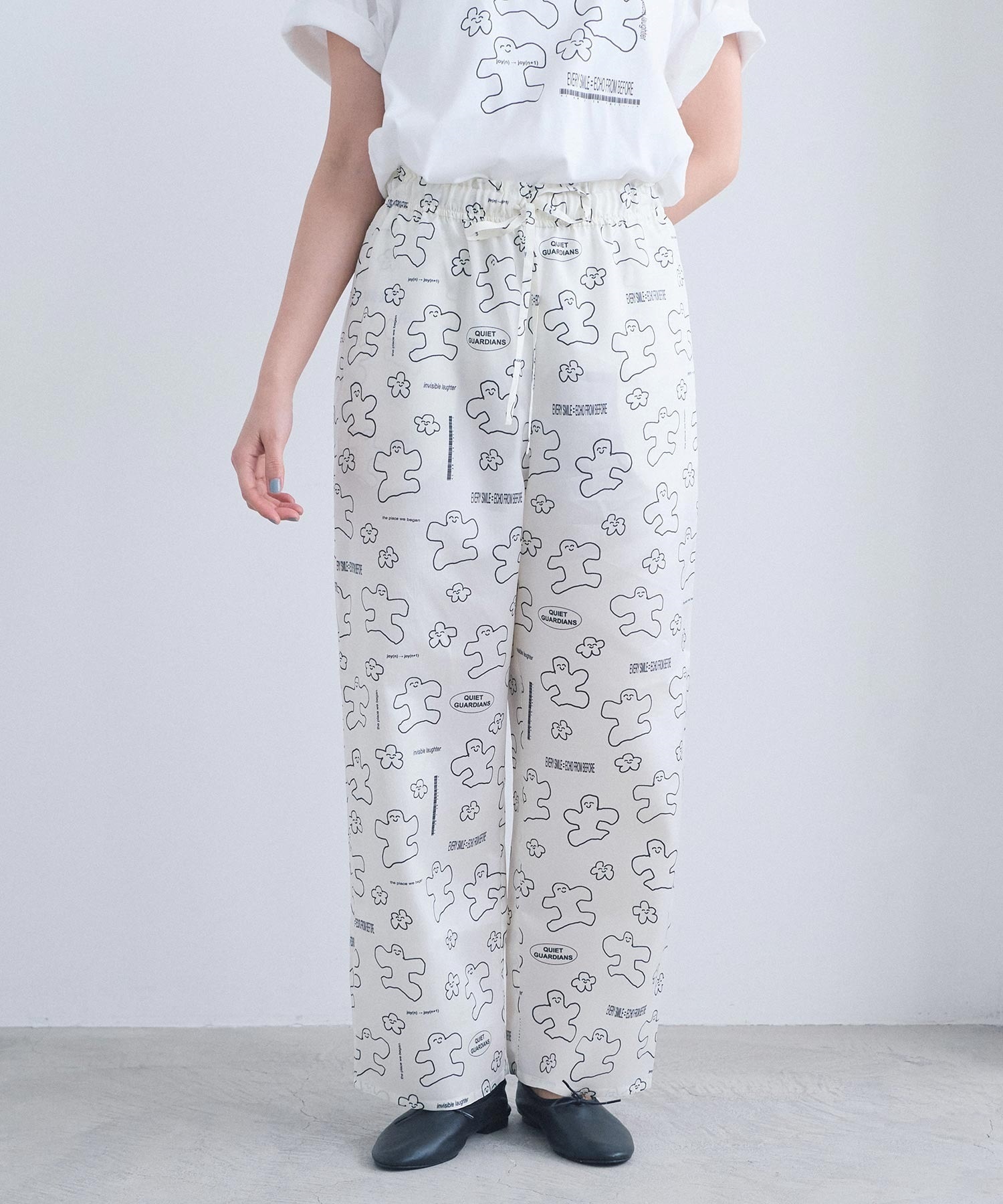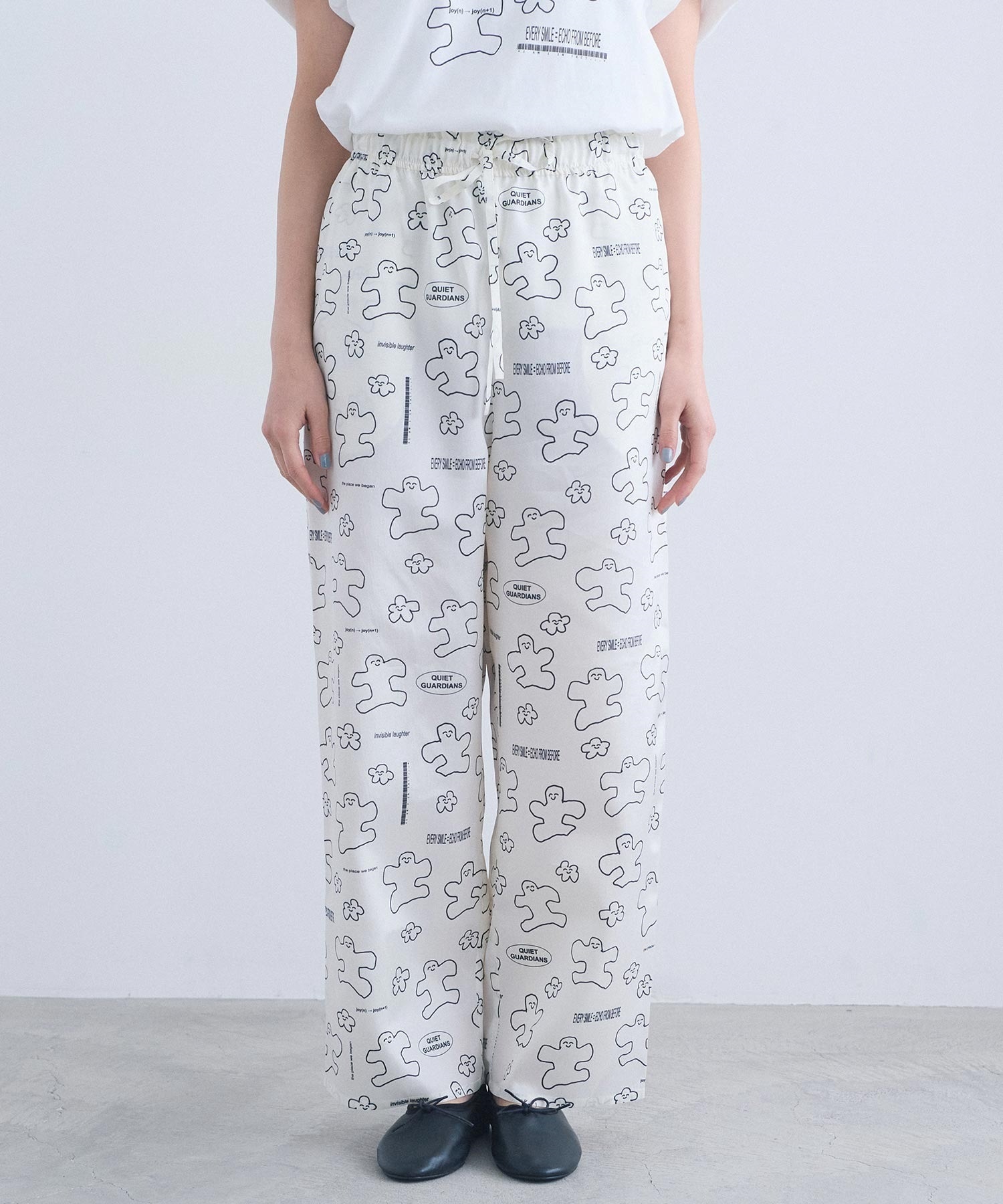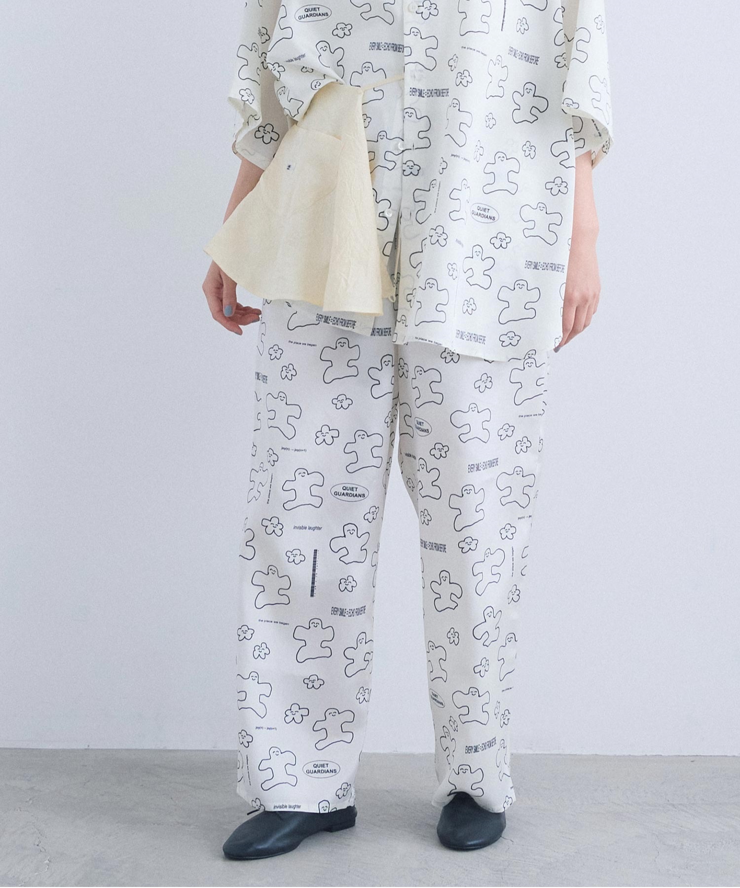 なめらかな落ち感が美しい、太めストレートシルエットのアート柄パンツ。