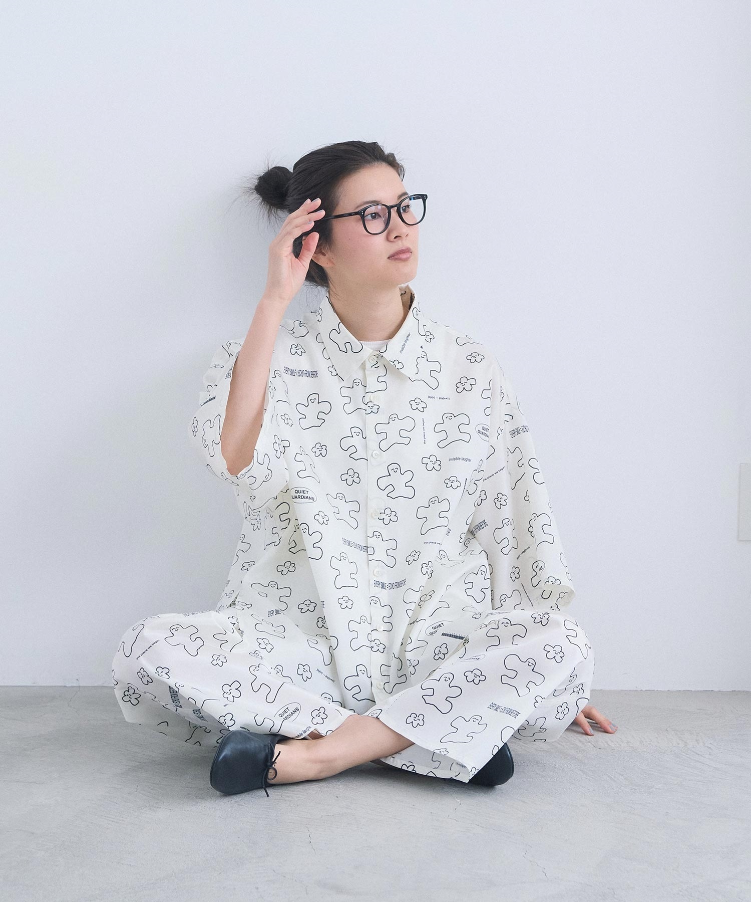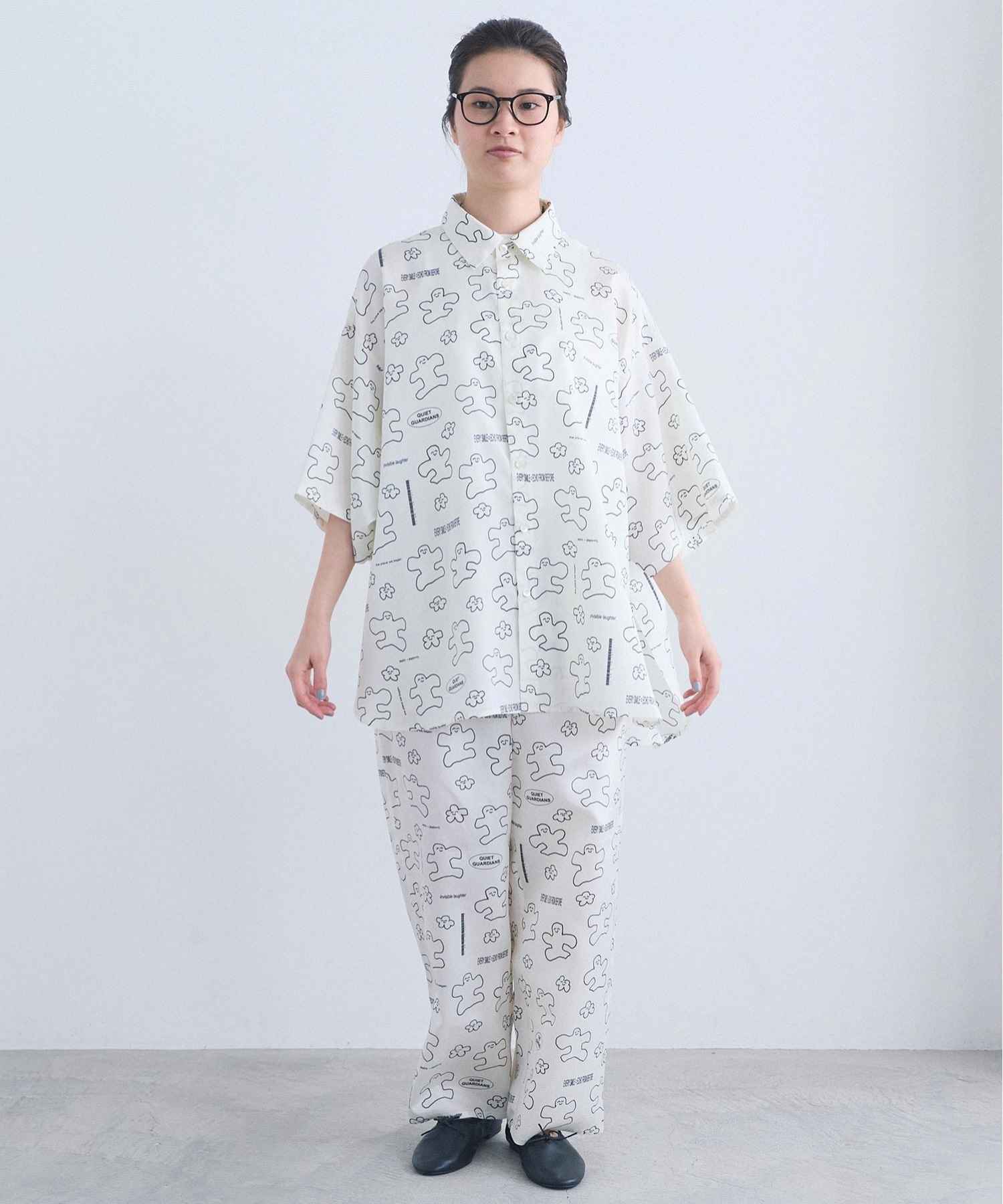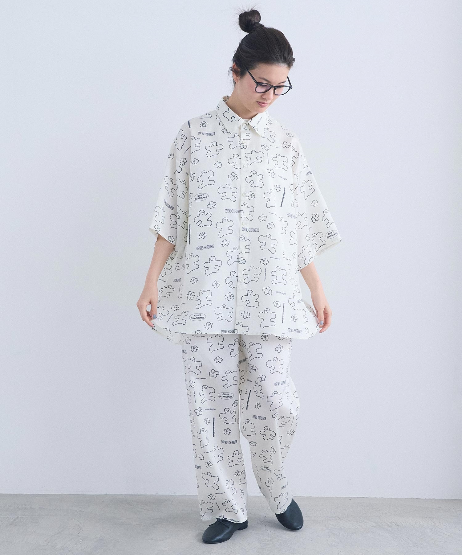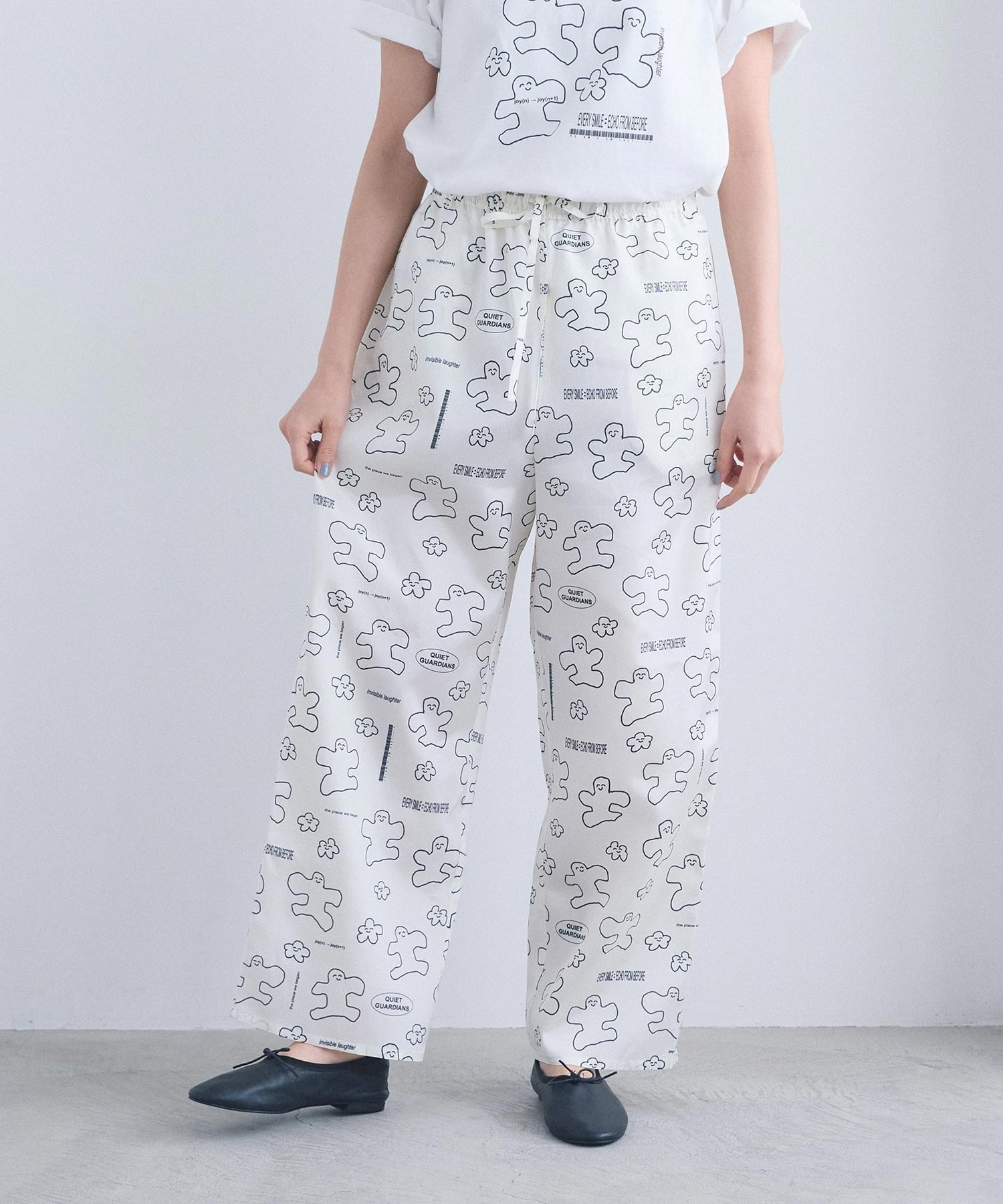 なめらかな落ち感が美しい、太めストレートシルエットのアート柄パンツ。