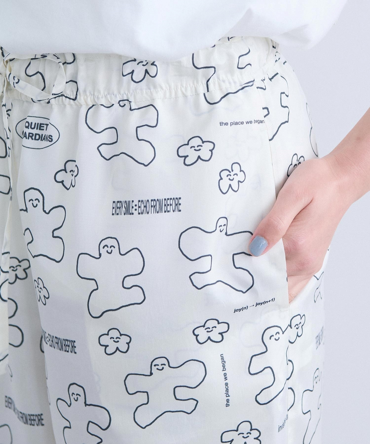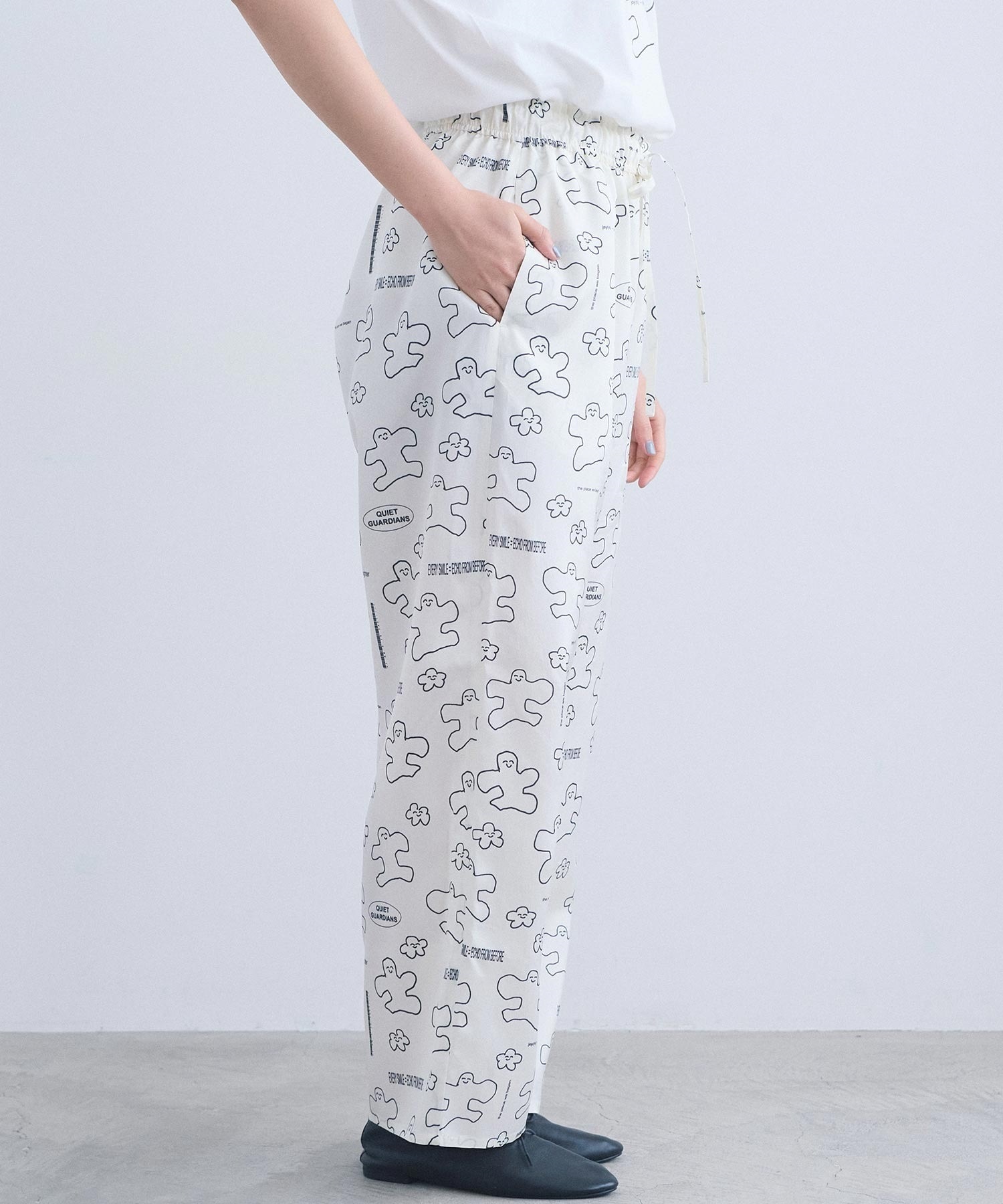 ウエストは総ゴムでストレスフリーの履き心地。大人が日常で穿けるバランスに仕上げました。
