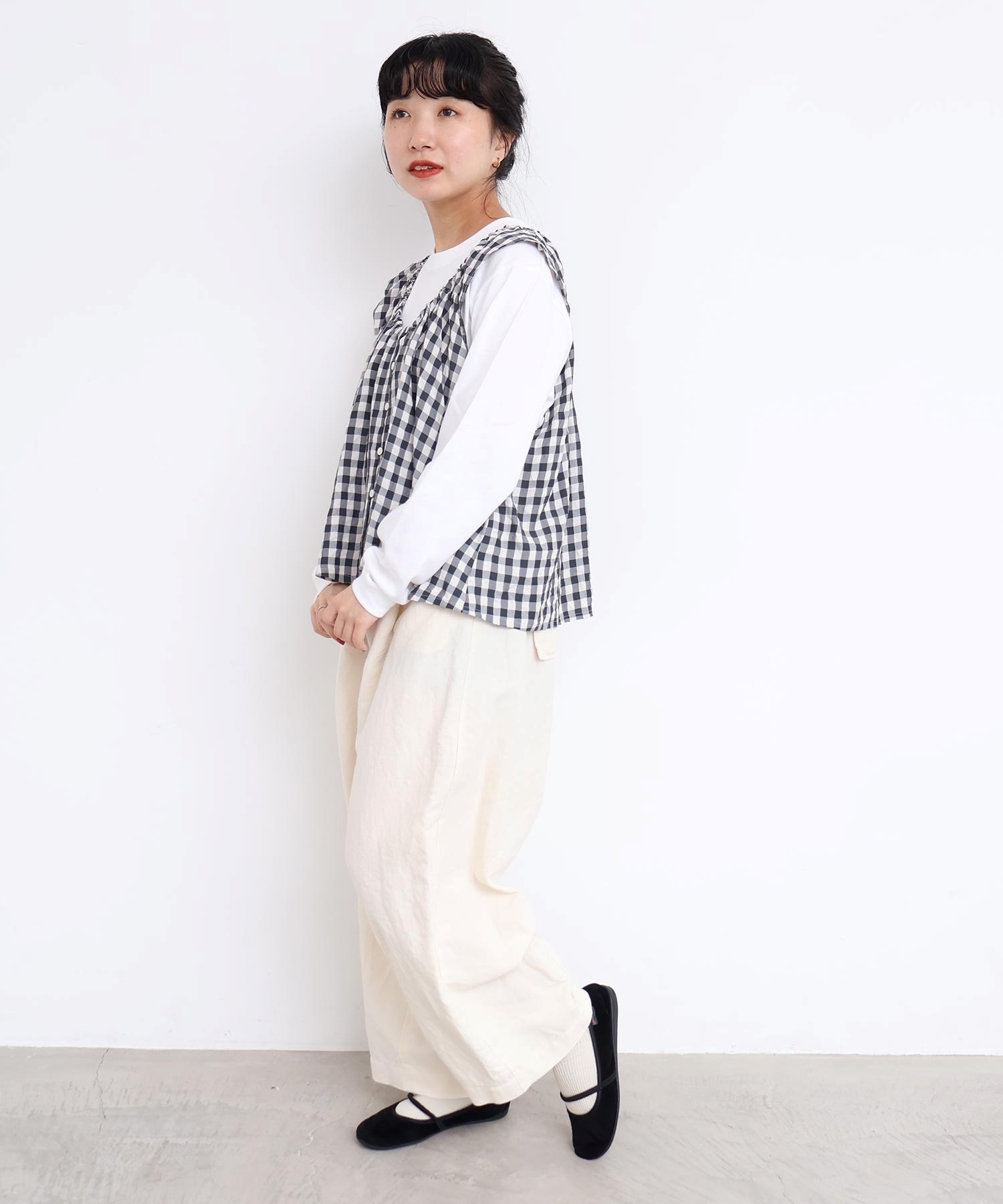 ニットや裏毛とも相性のいい軽やかなタッチで、早い時期から春まで長く着られます。