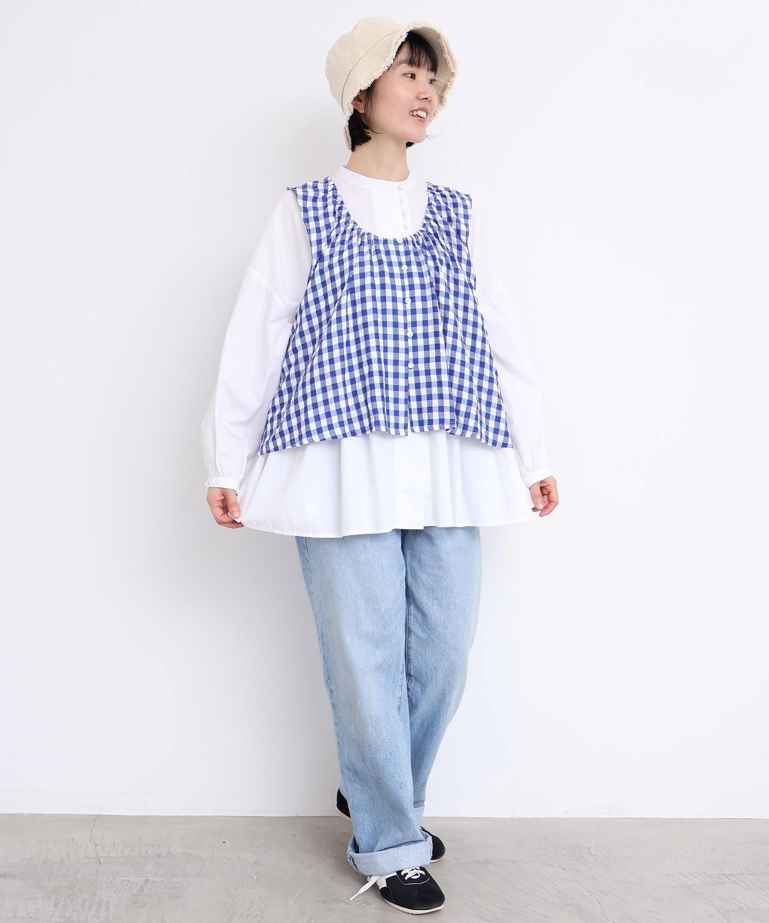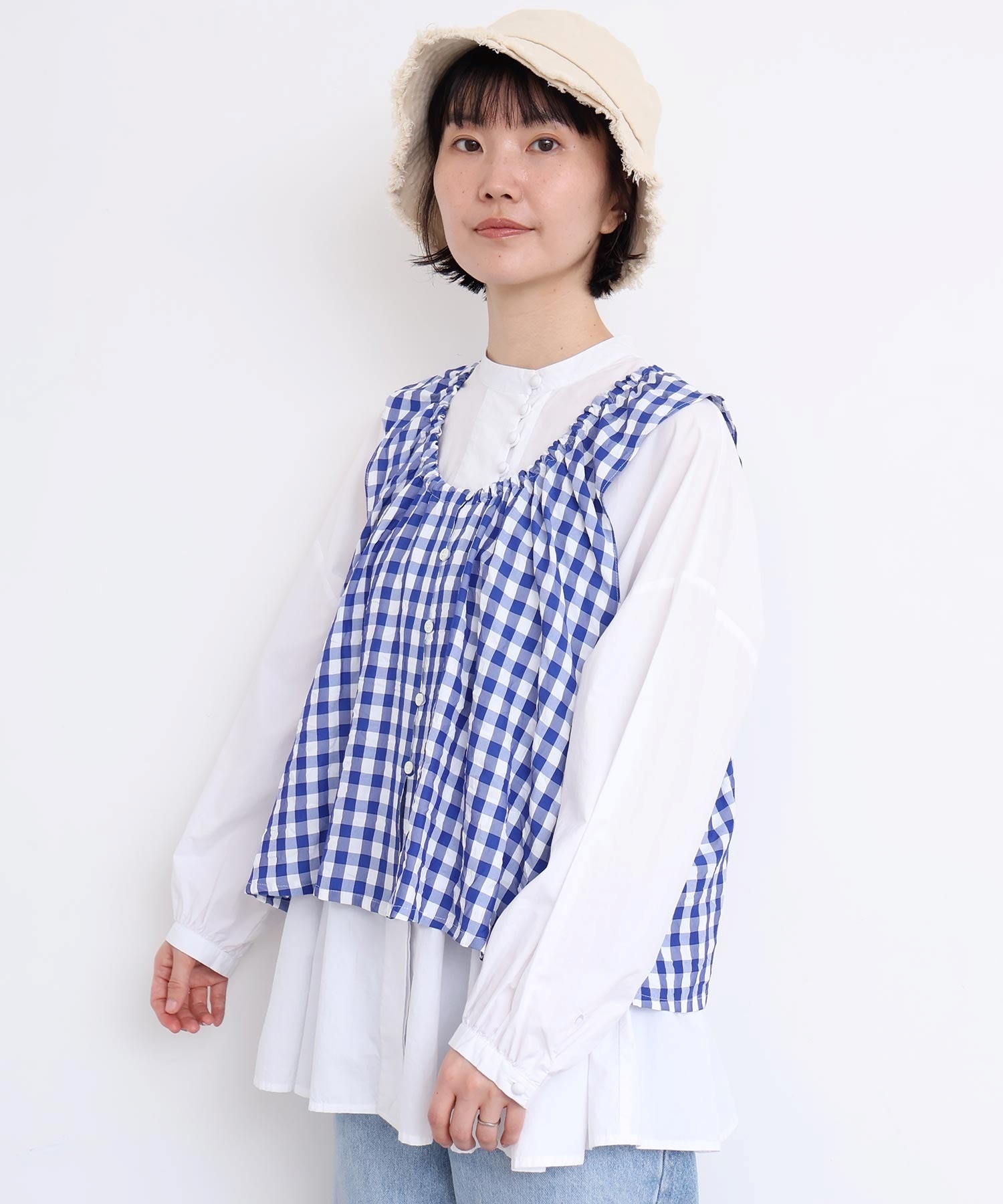 春の清らかな日が似合う、ぱきっとした大きなギンガムチェック。