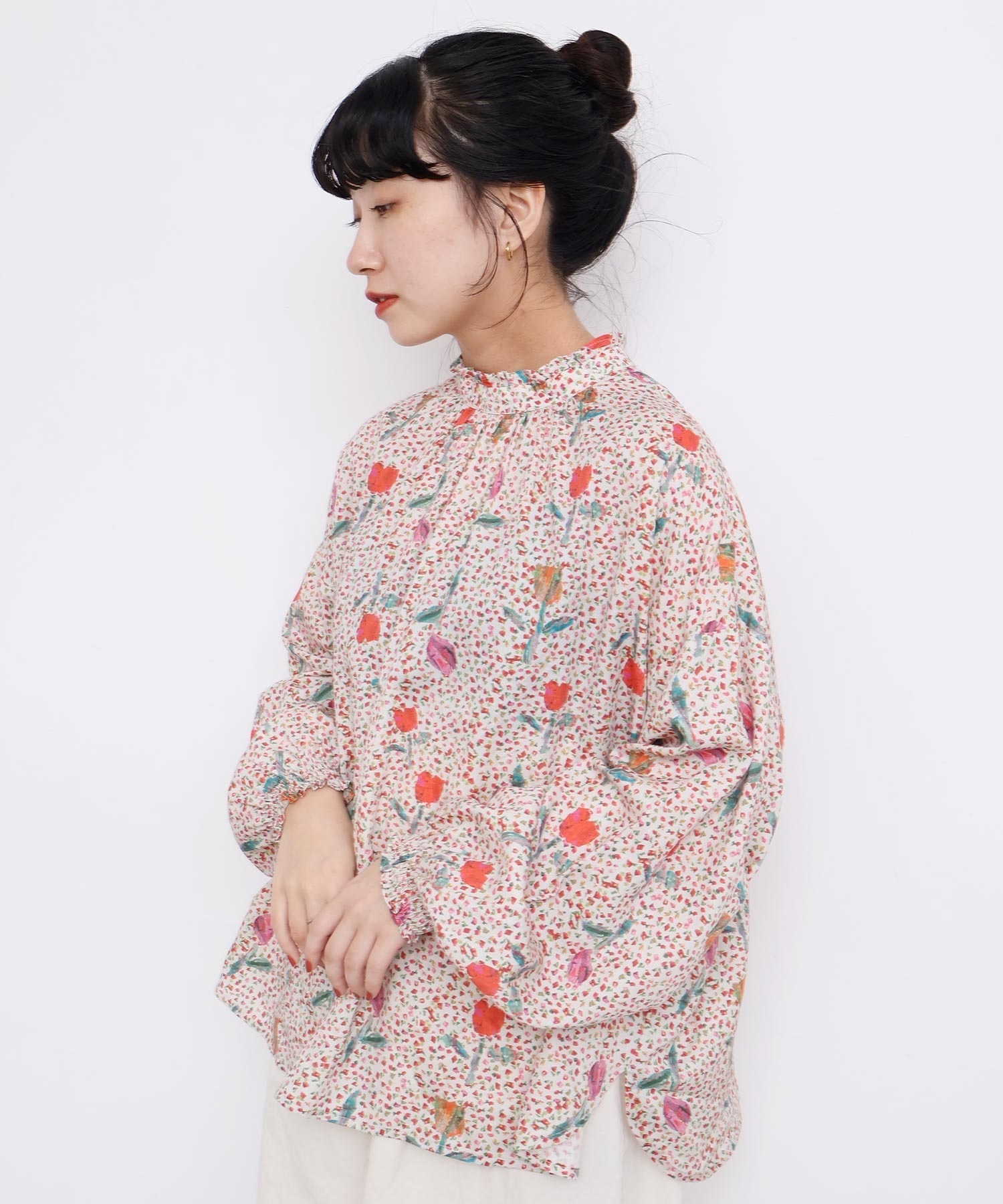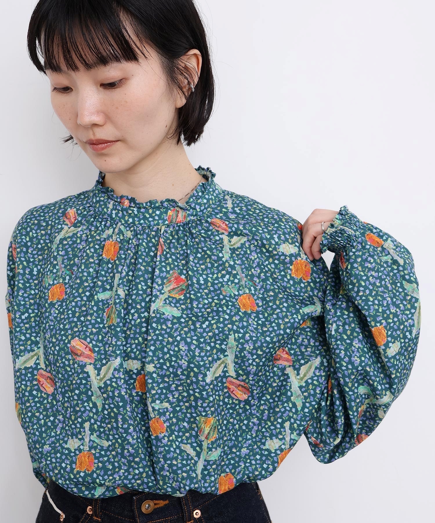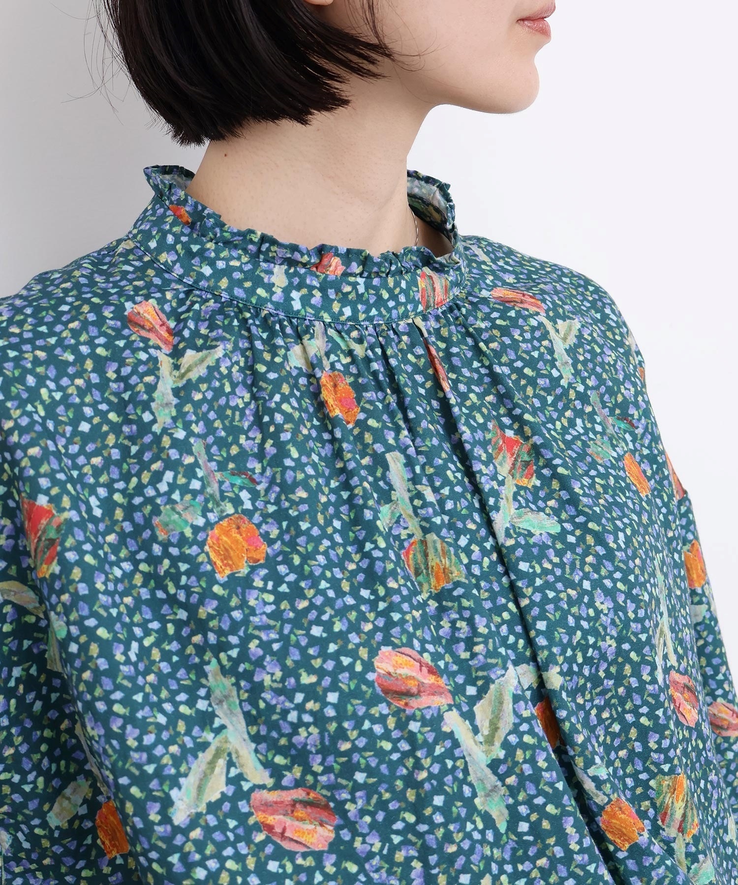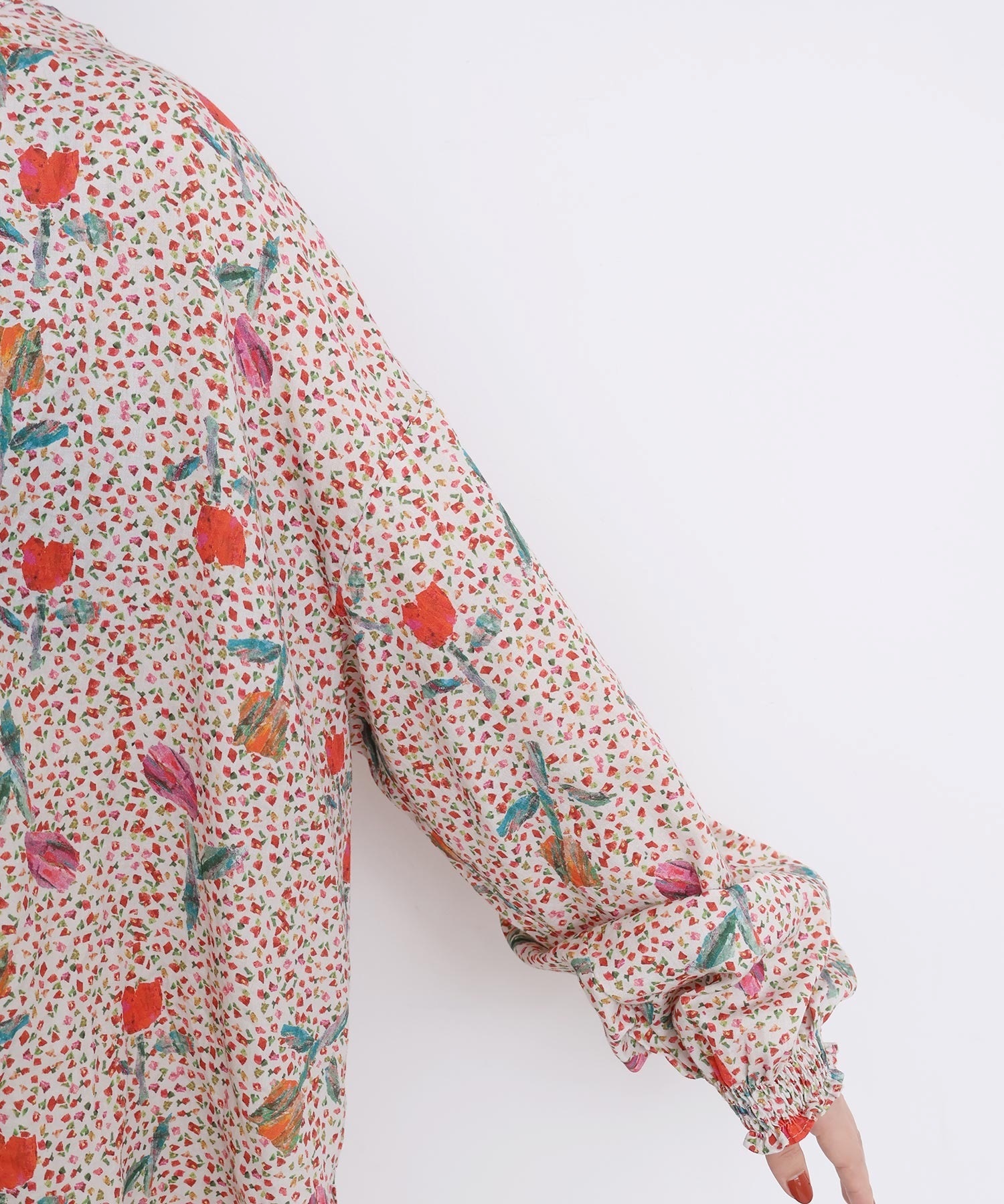 また袖口はフリルになったゴムのシャーリング仕様で着心地にもこだわりました。