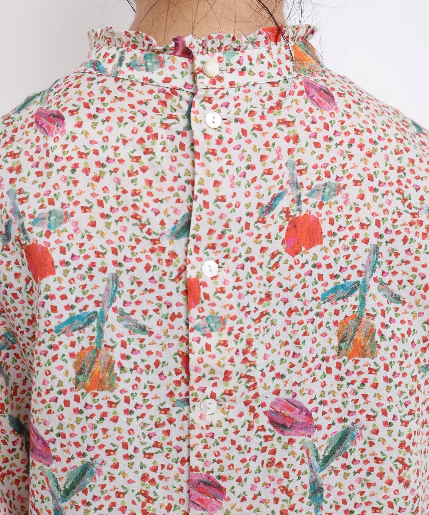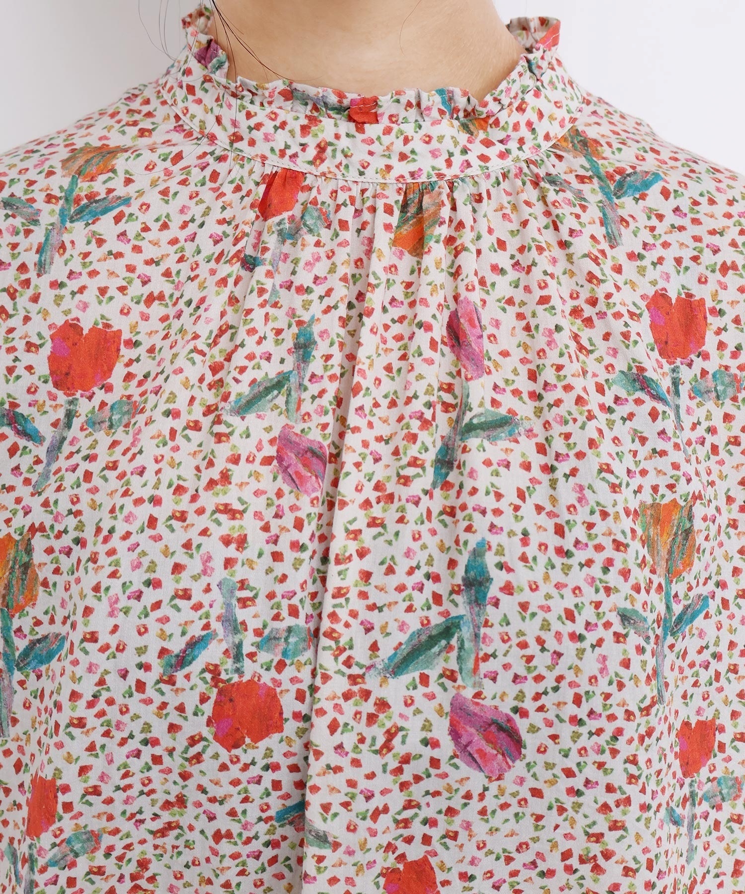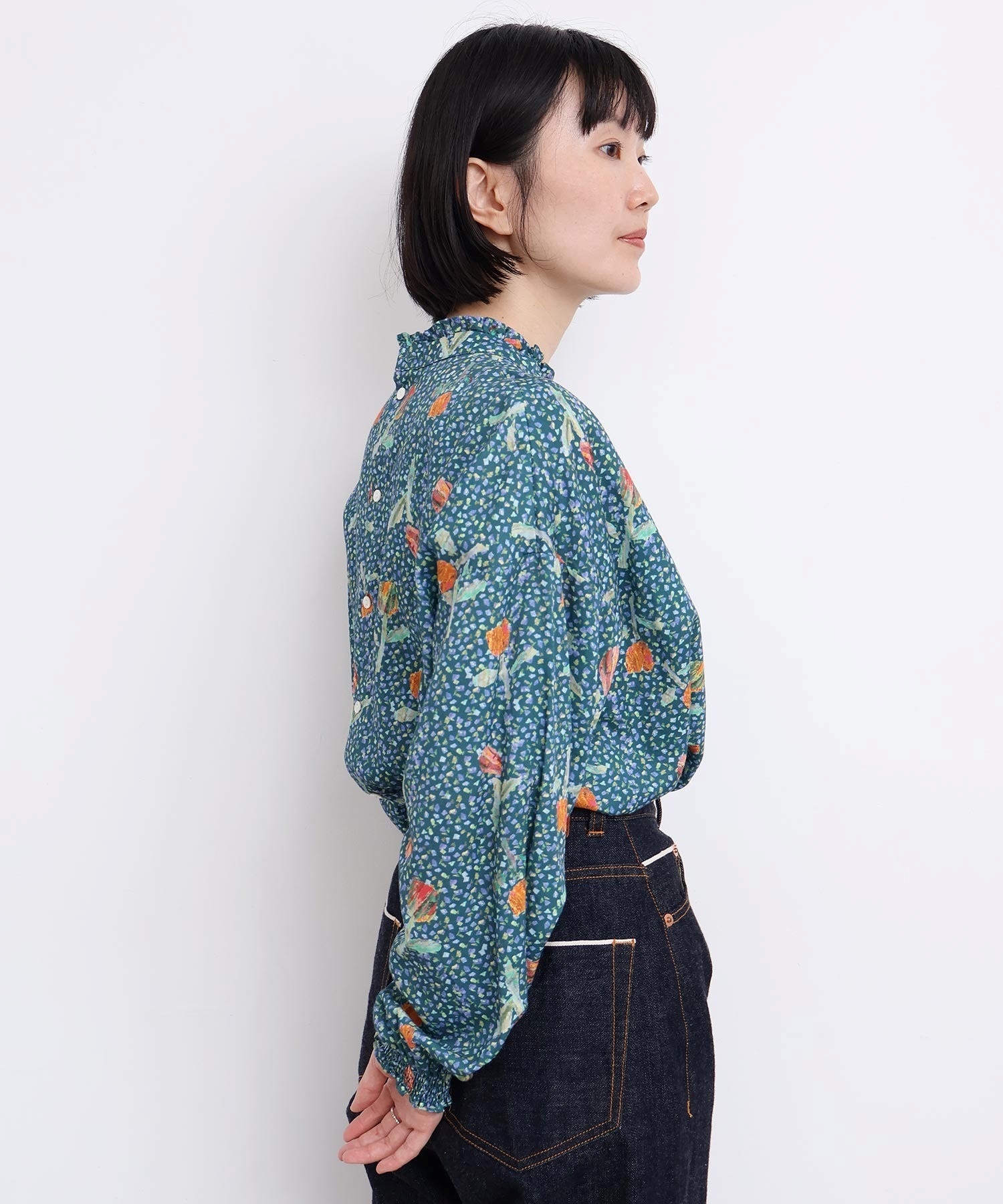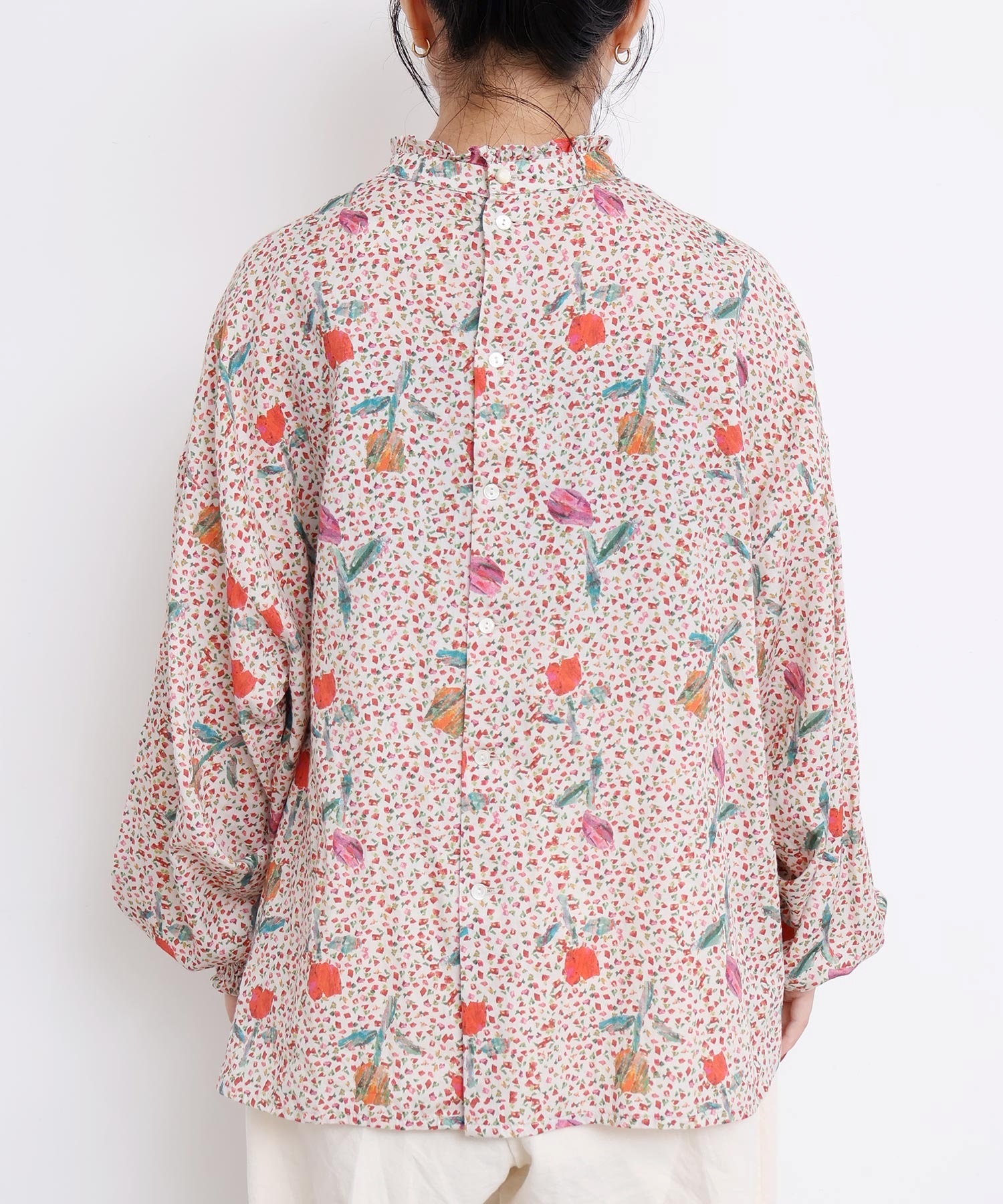 また袖口はフリルになったゴムのシャーリング仕様で着心地にもこだわりました。