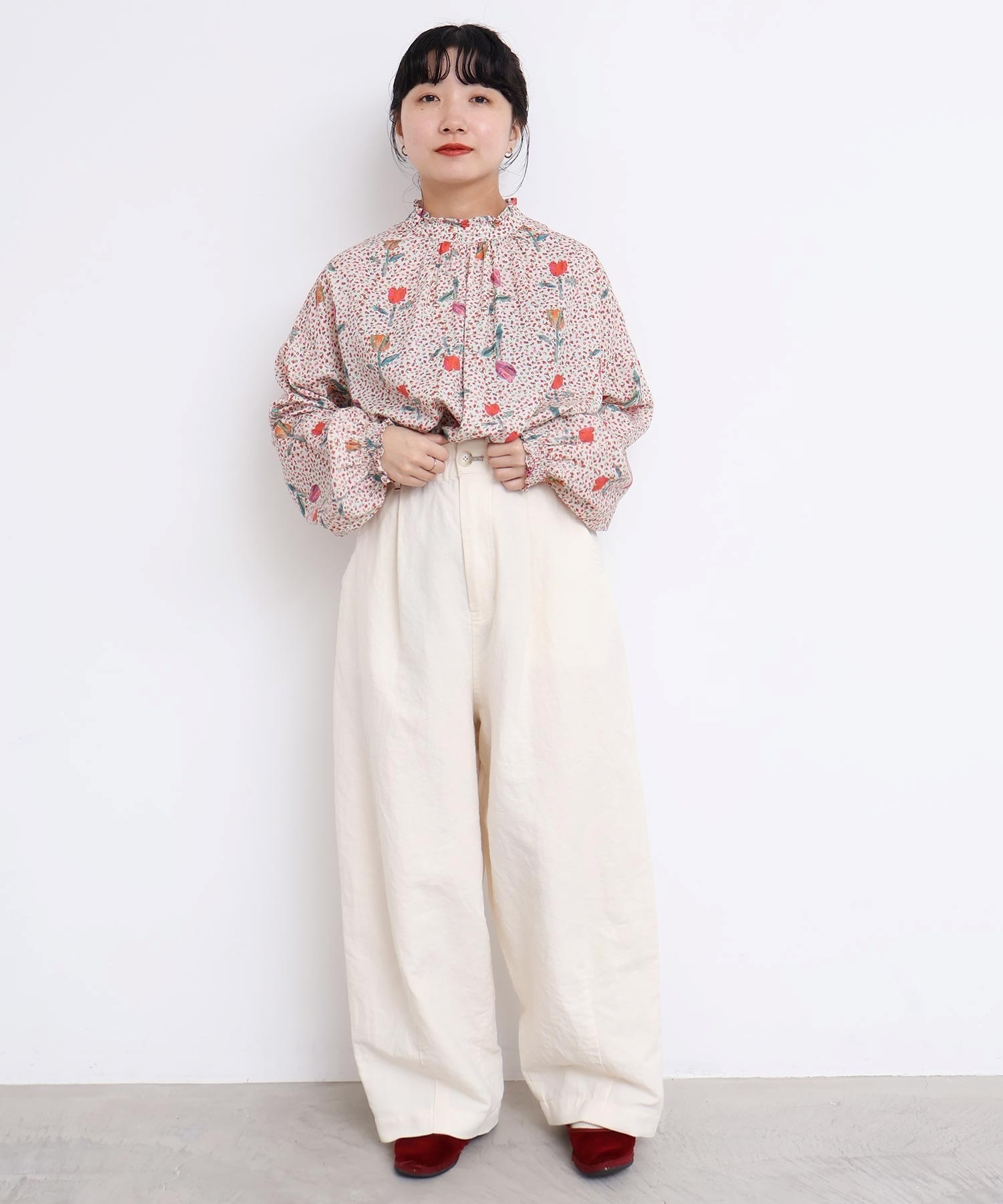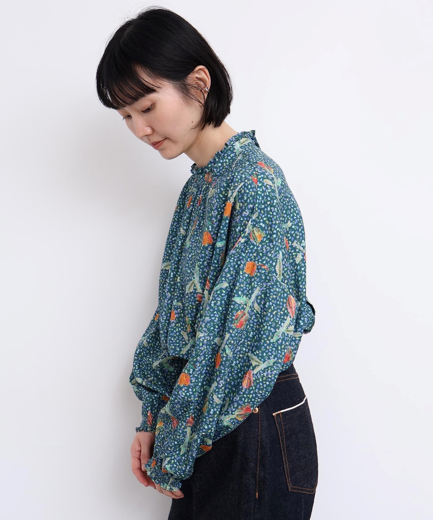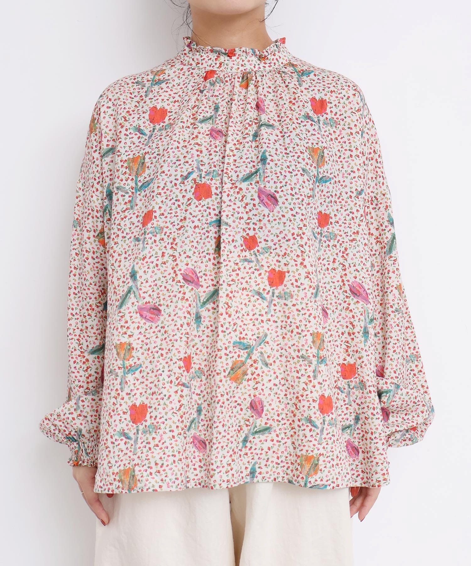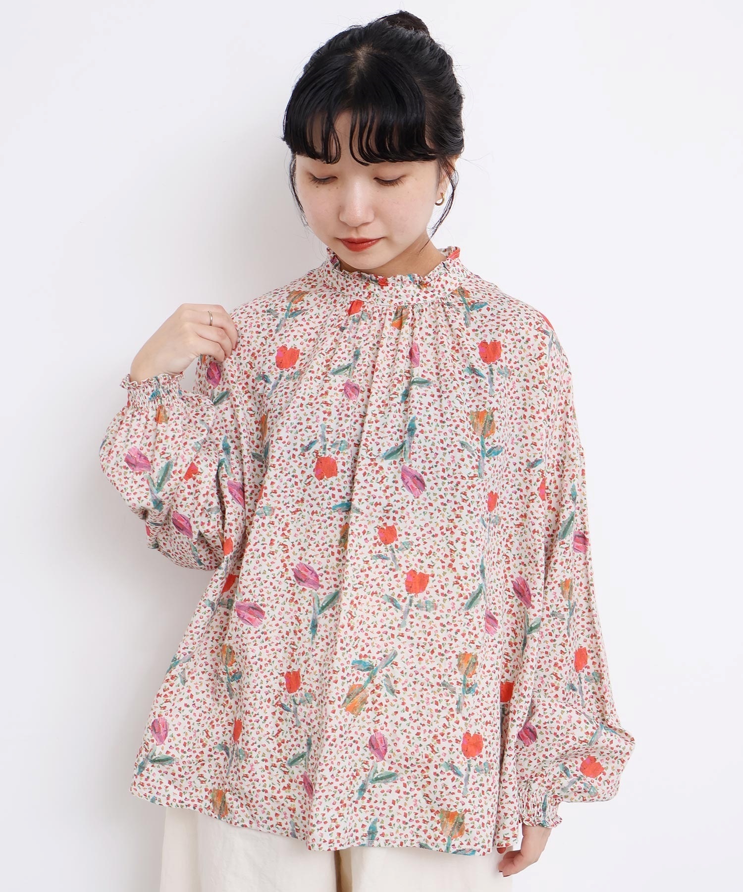 また袖口はフリルになったゴムのシャーリング仕様で着心地にもこだわりました。