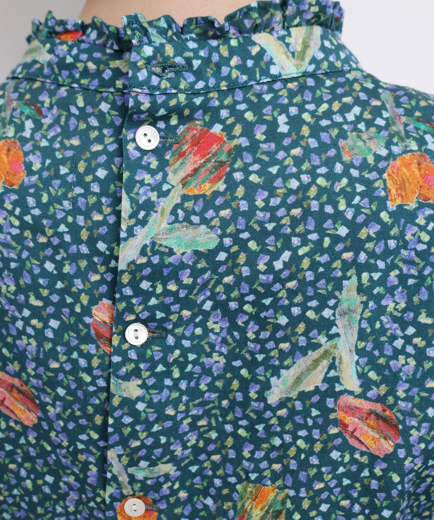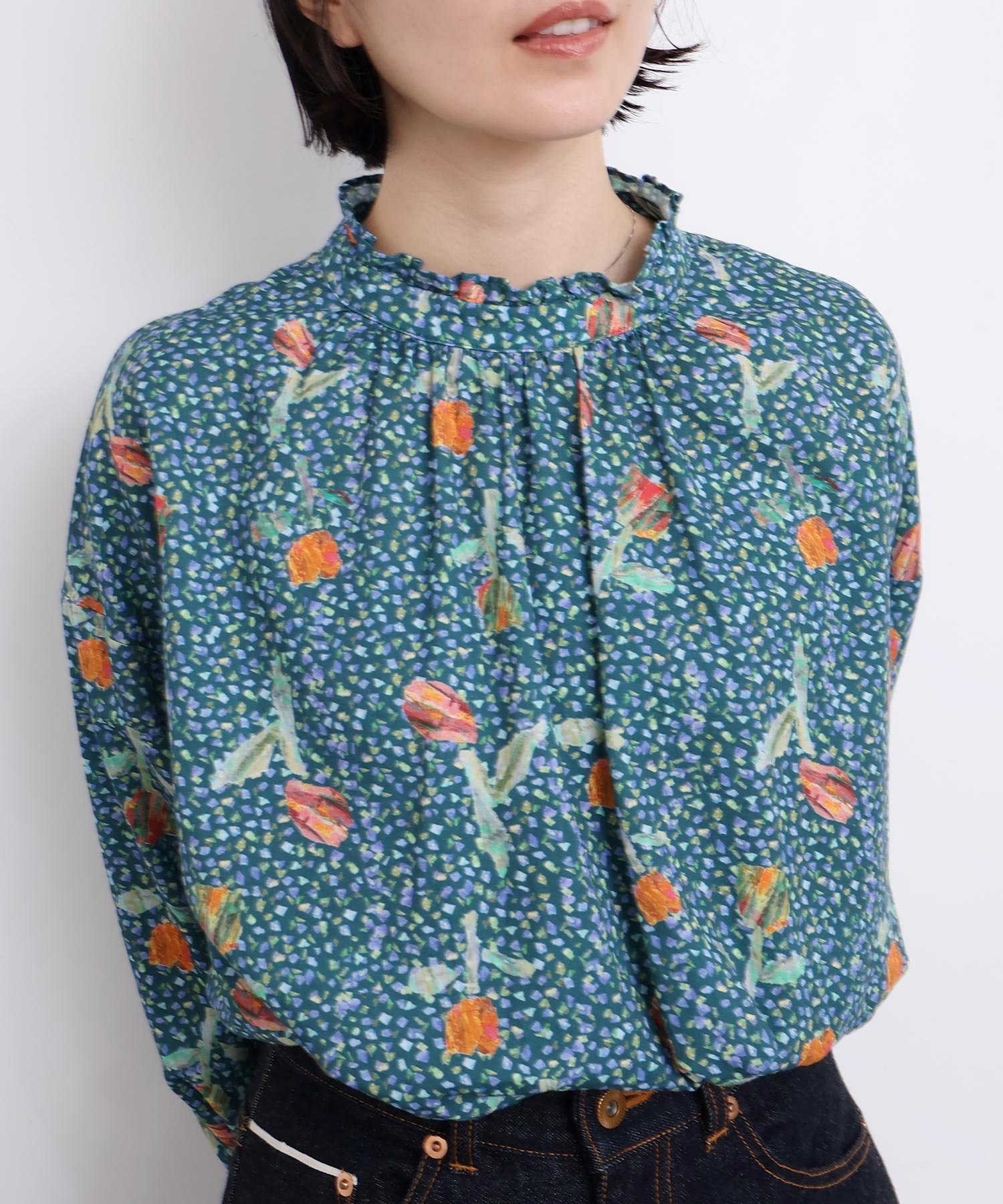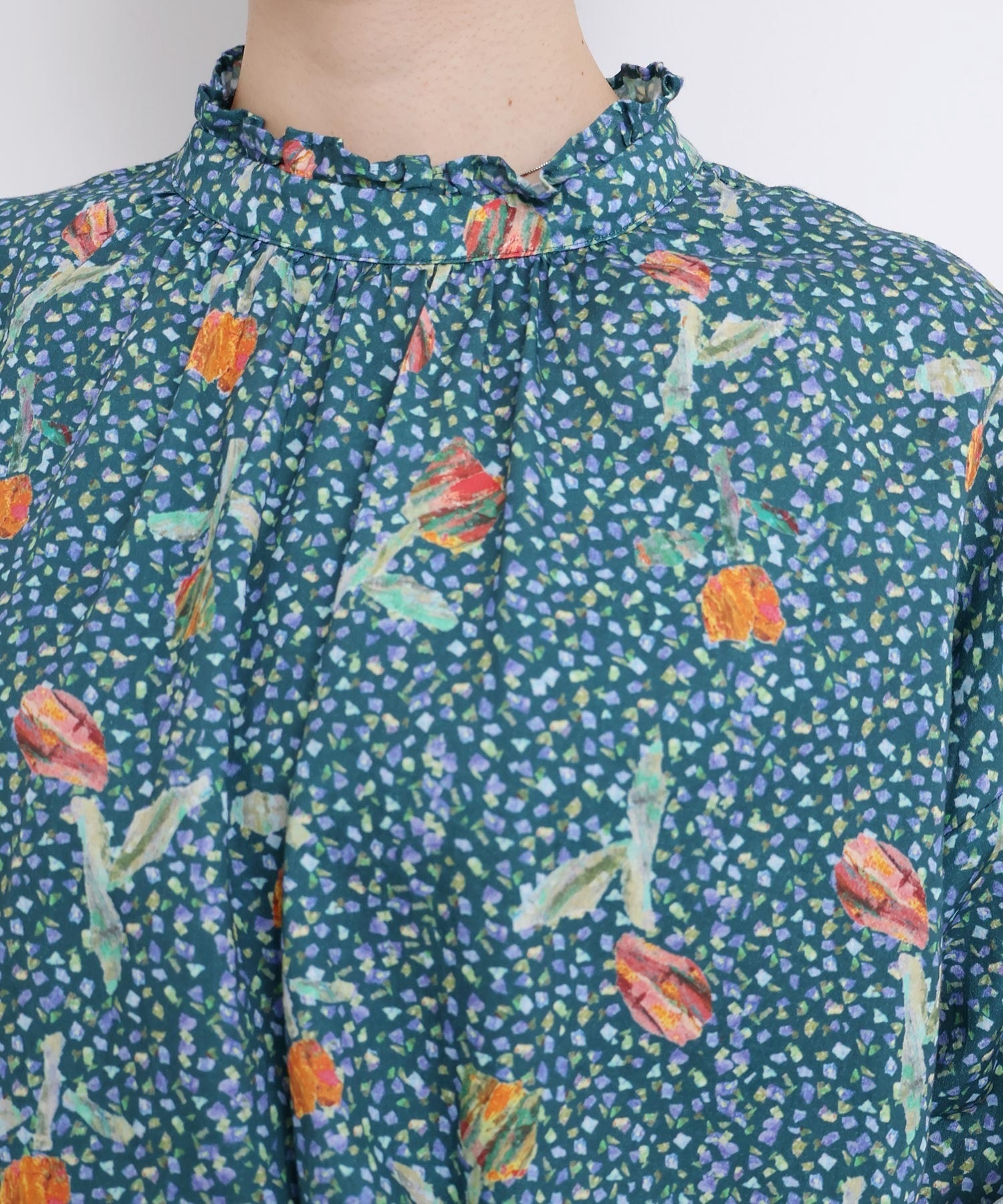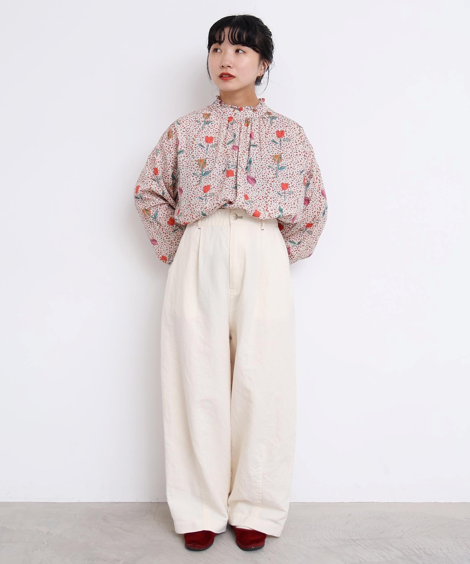 また袖口はフリルになったゴムのシャーリング仕様で着心地にもこだわりました。