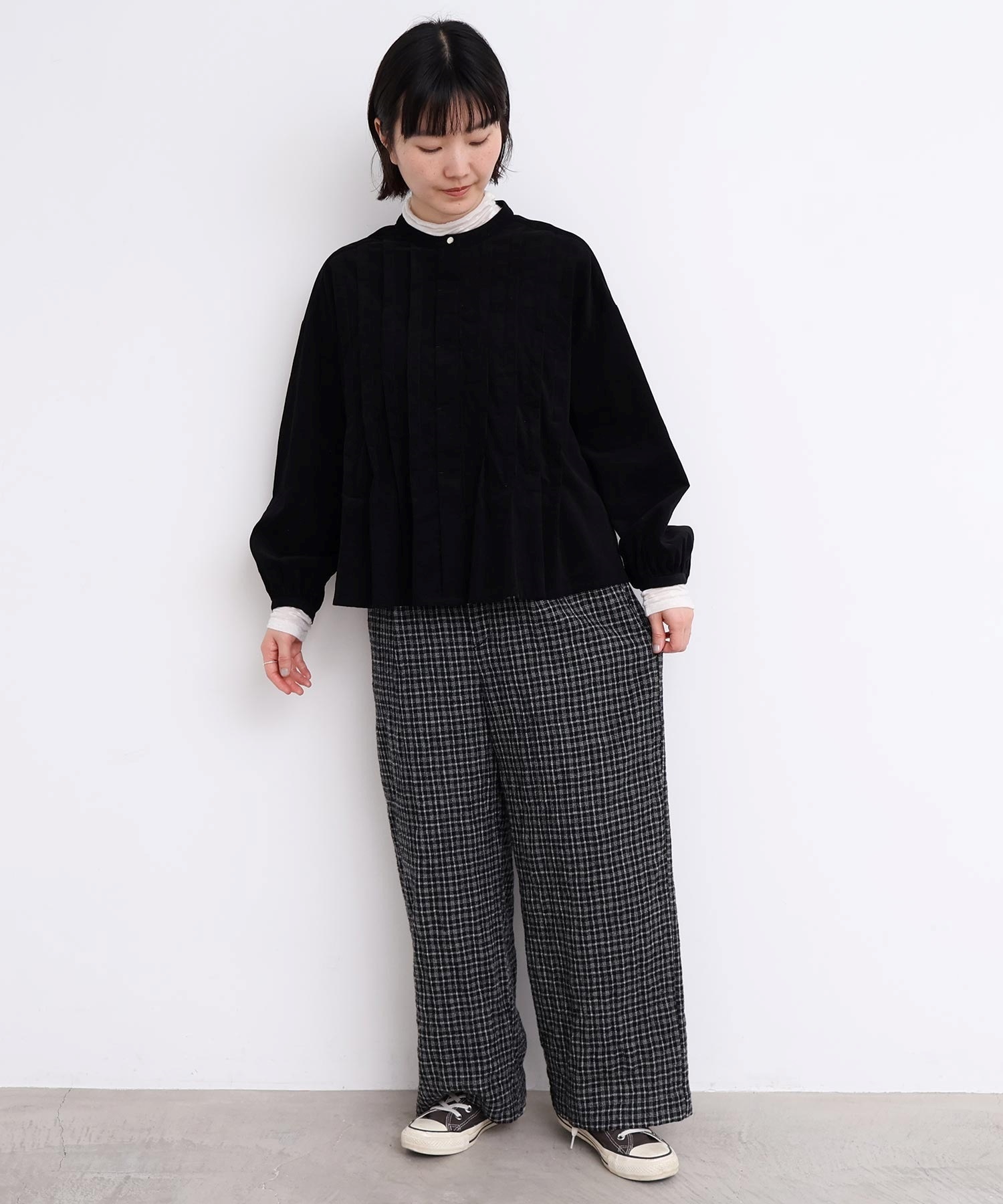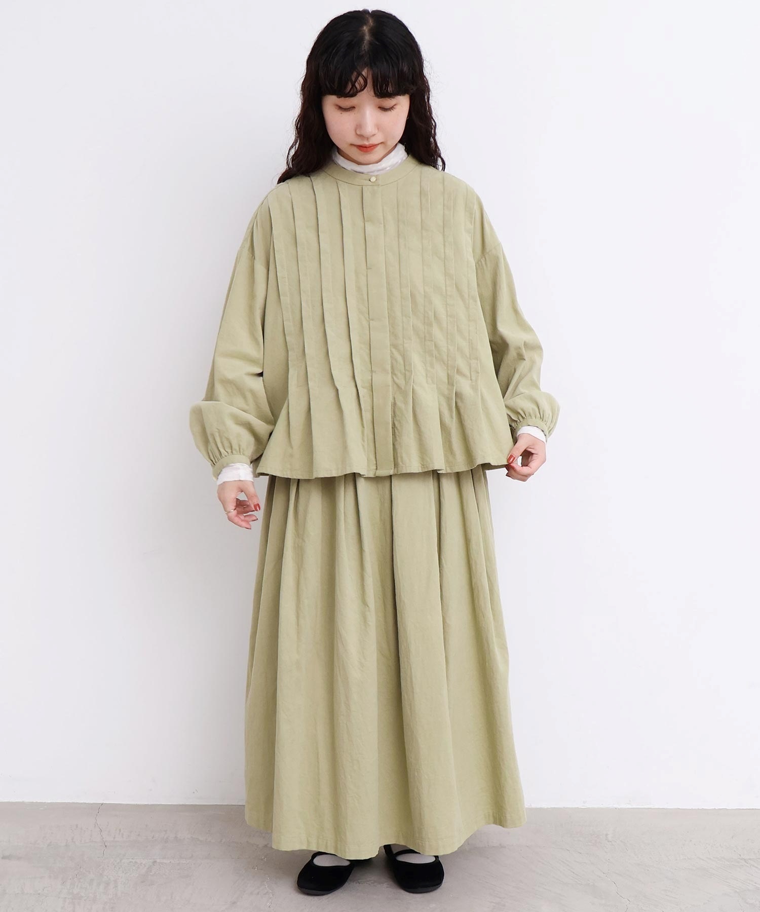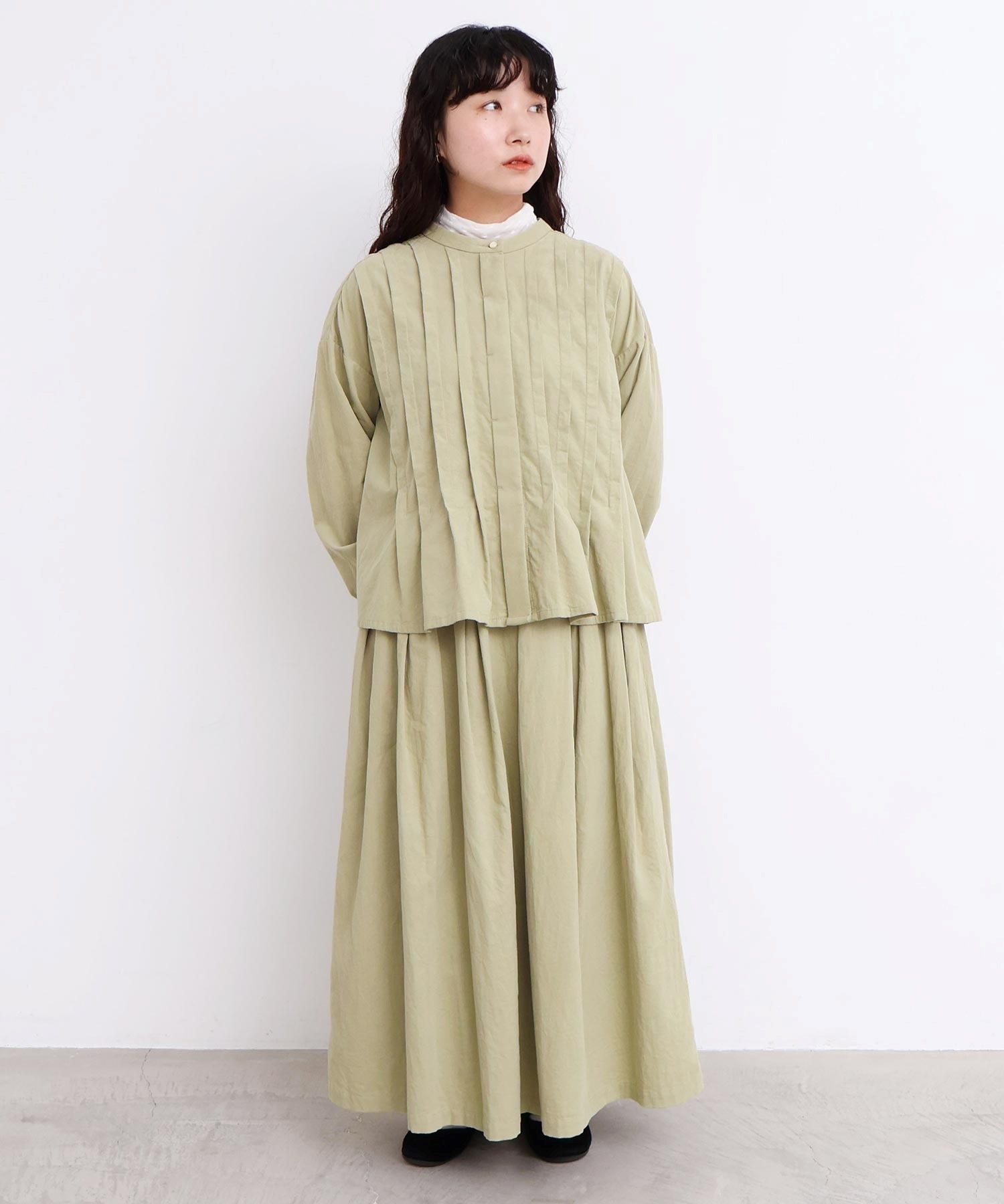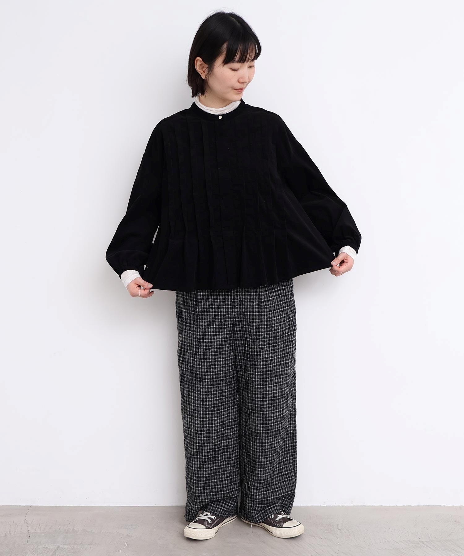 大きめのタックをとって裾はひらっと広がるデザインに。