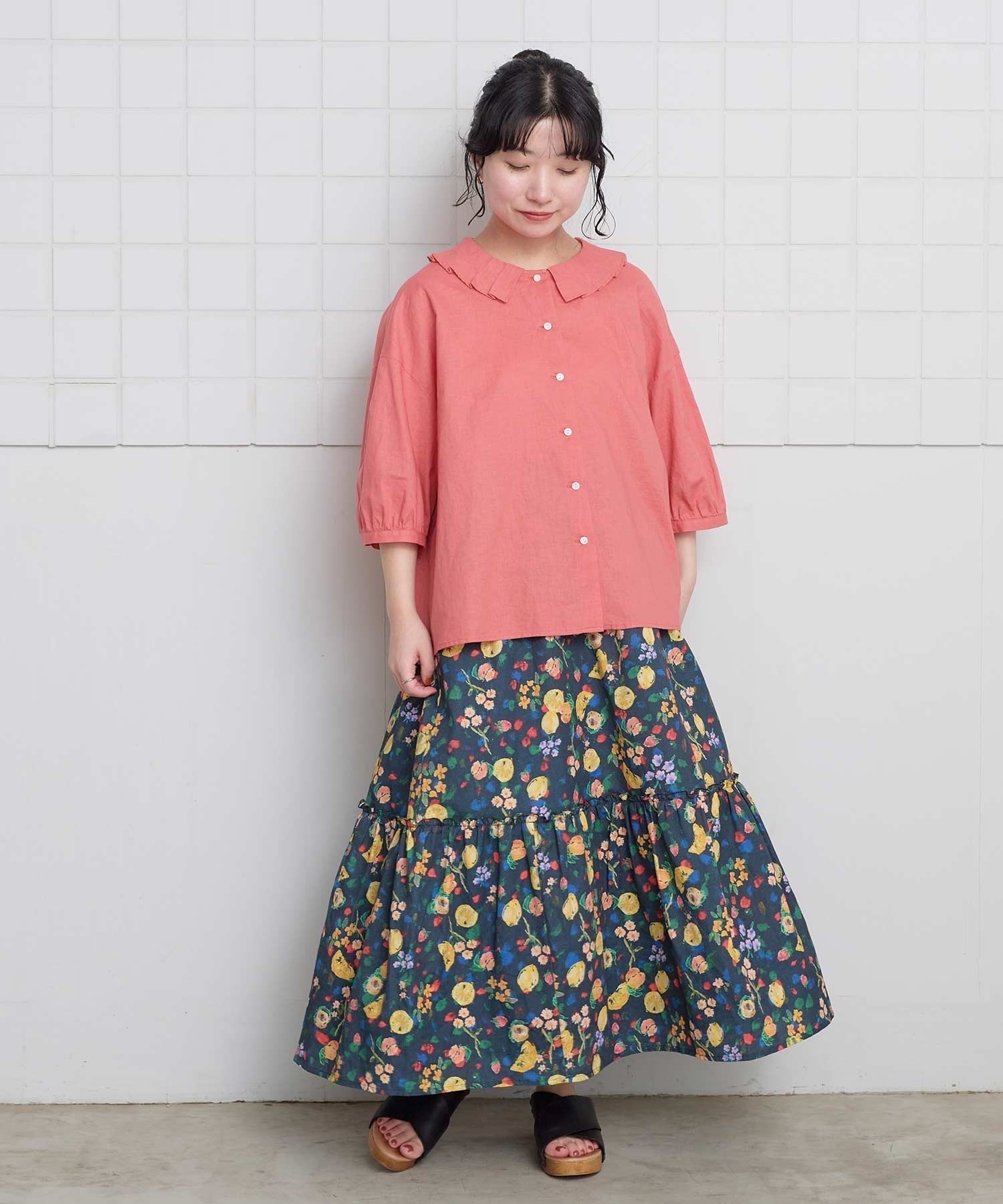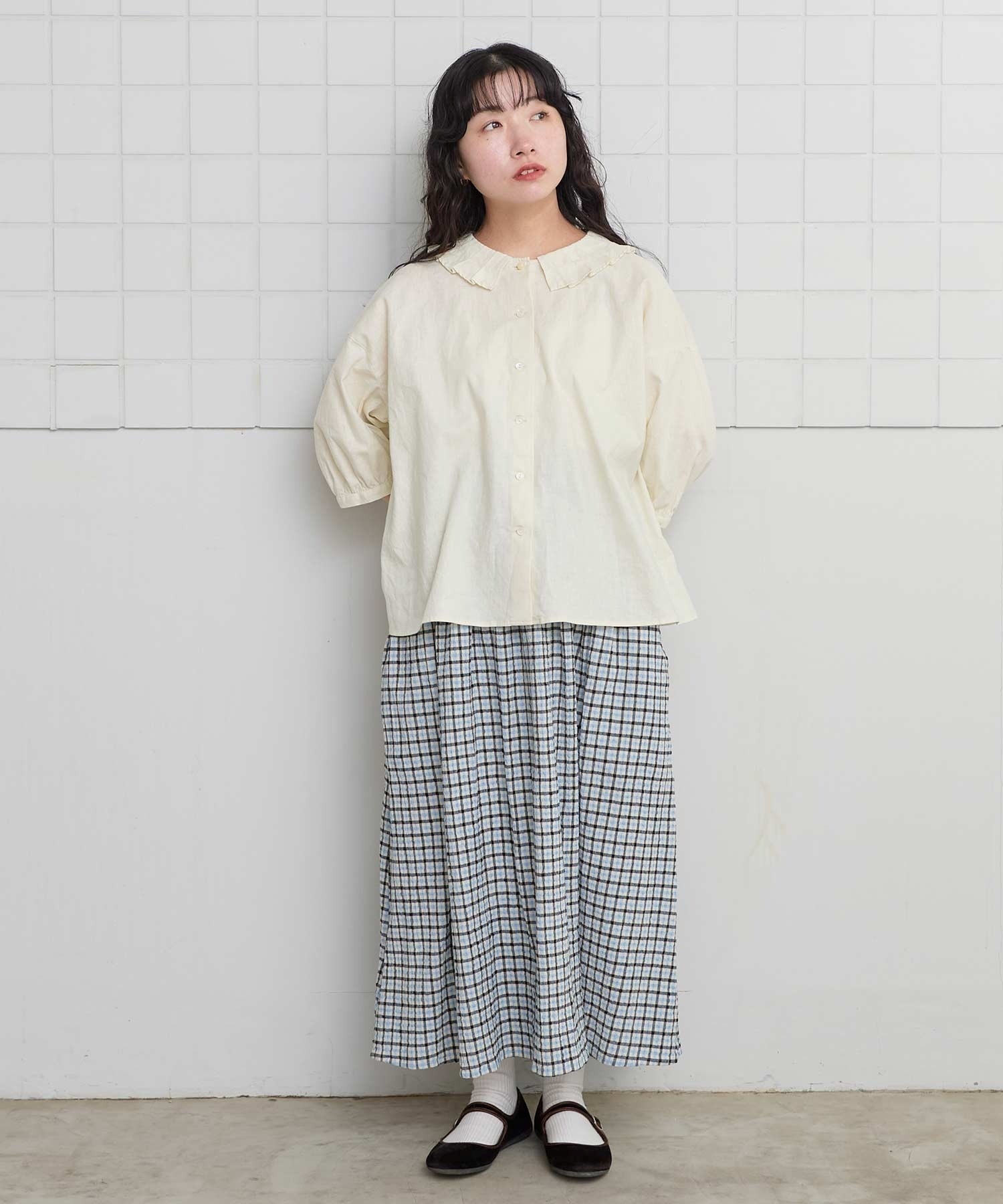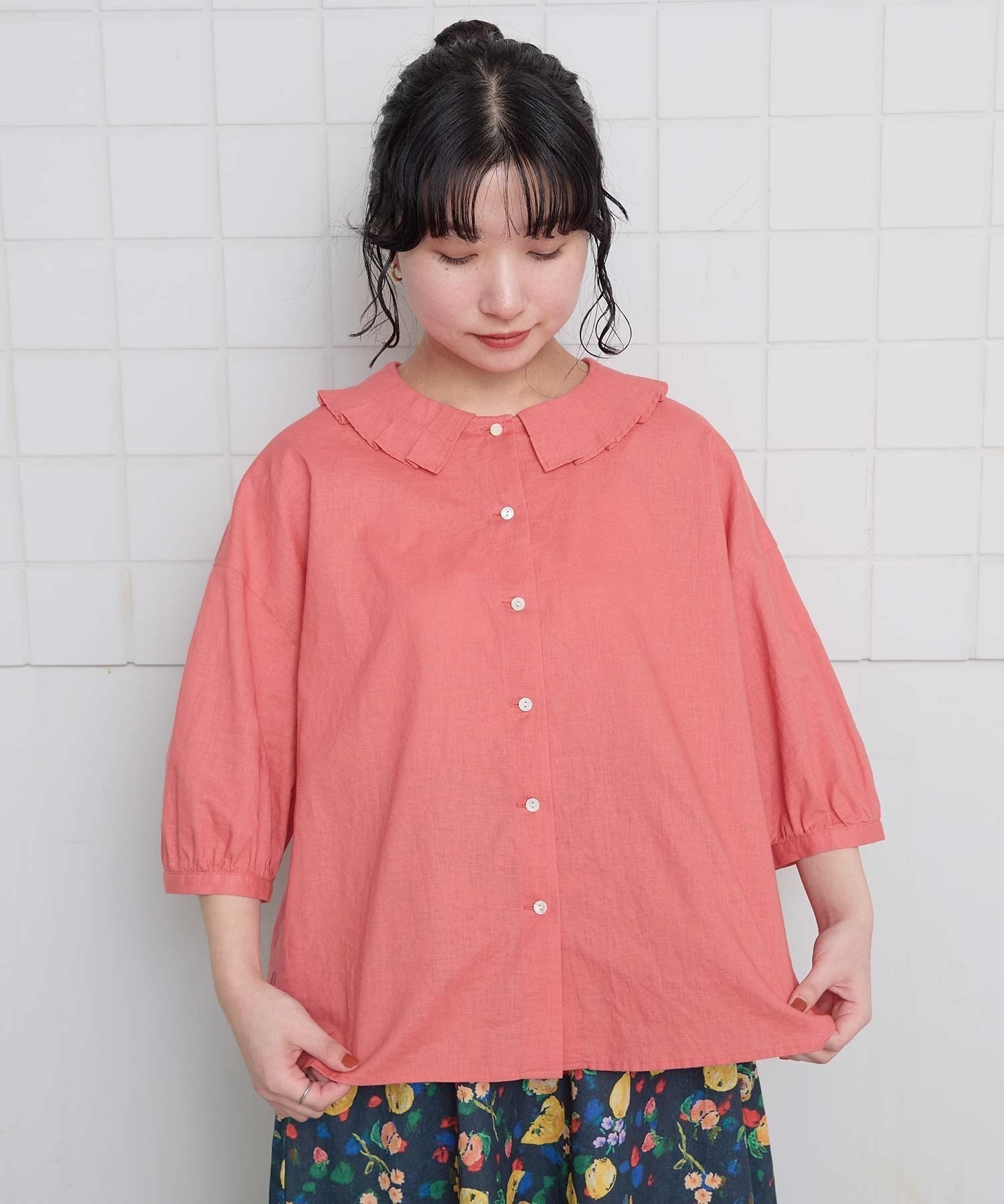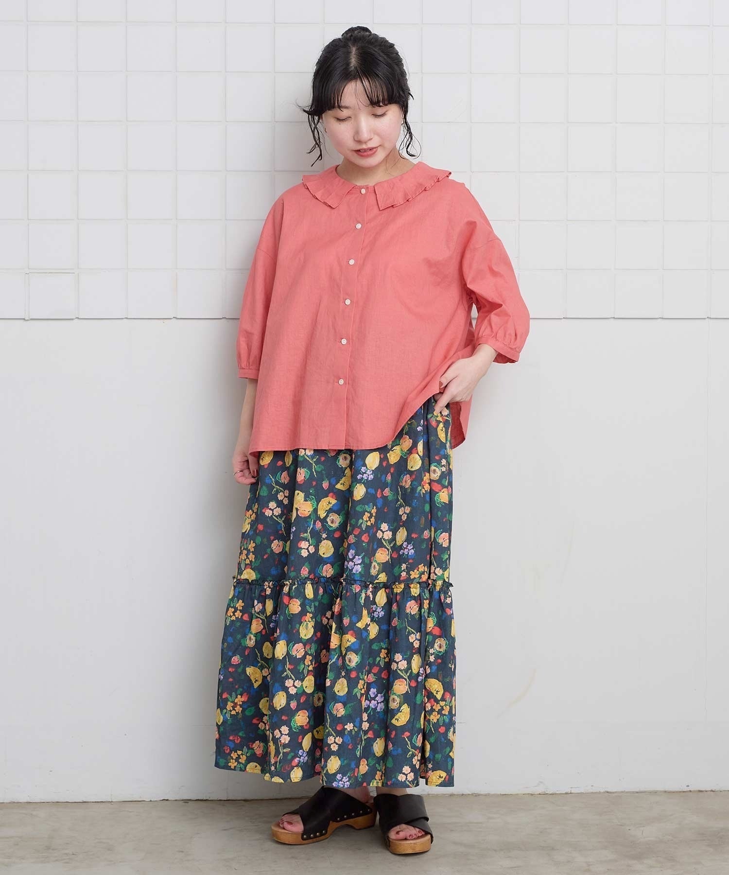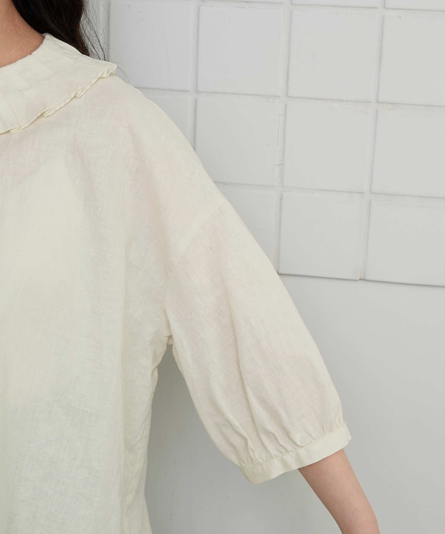 綿麻のほどよいしゃり感とやわらかな風合いがあるのでブラウスは羽織りにも◎