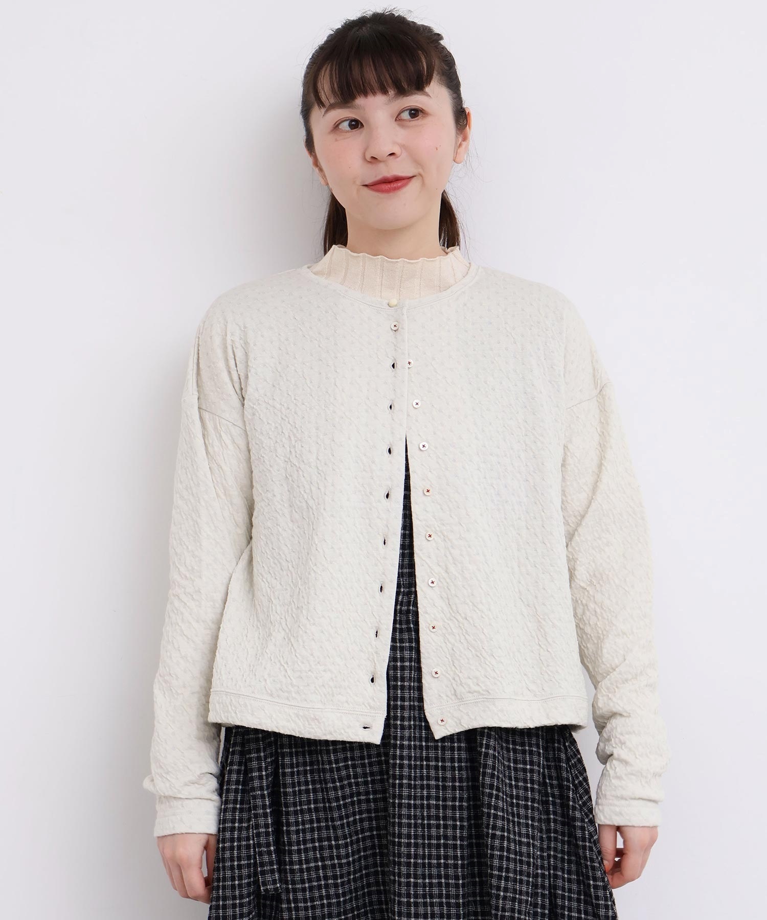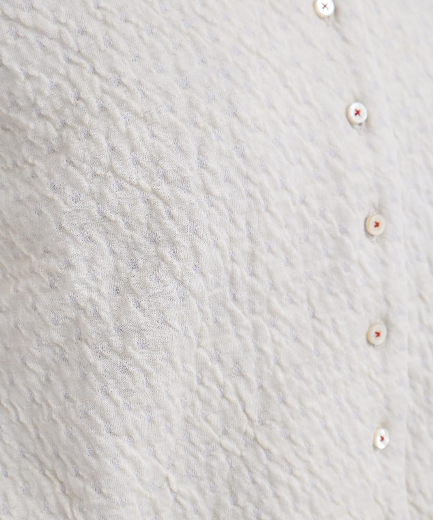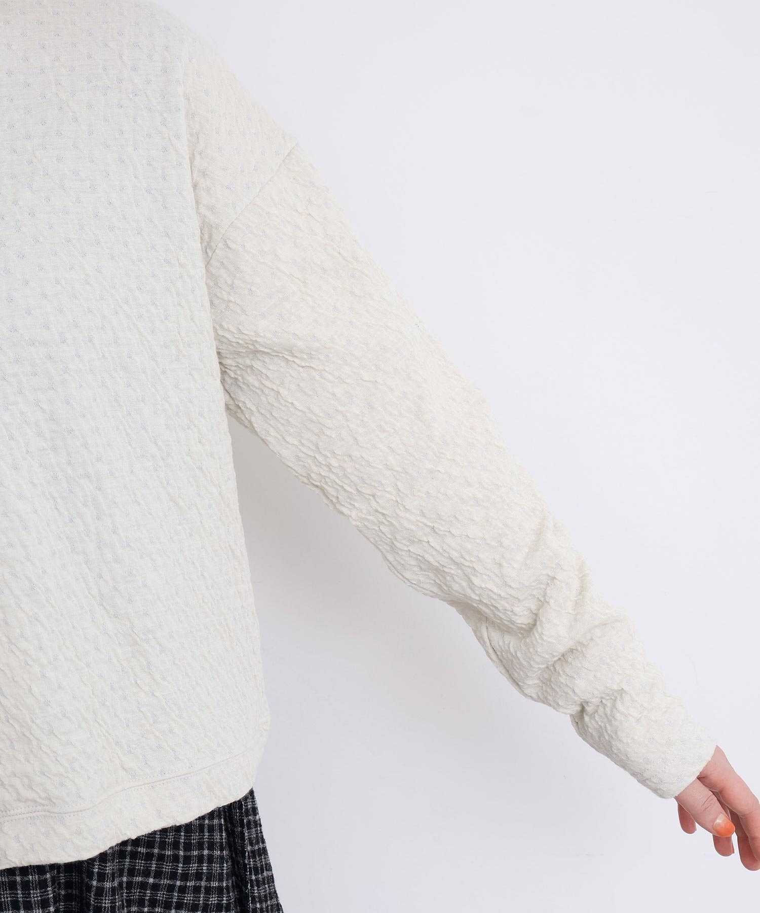 それぞれの糸で縮み方が違い、また部分的にしかくっついていないので、やわらかくふっくらとした立体感がある素材です。