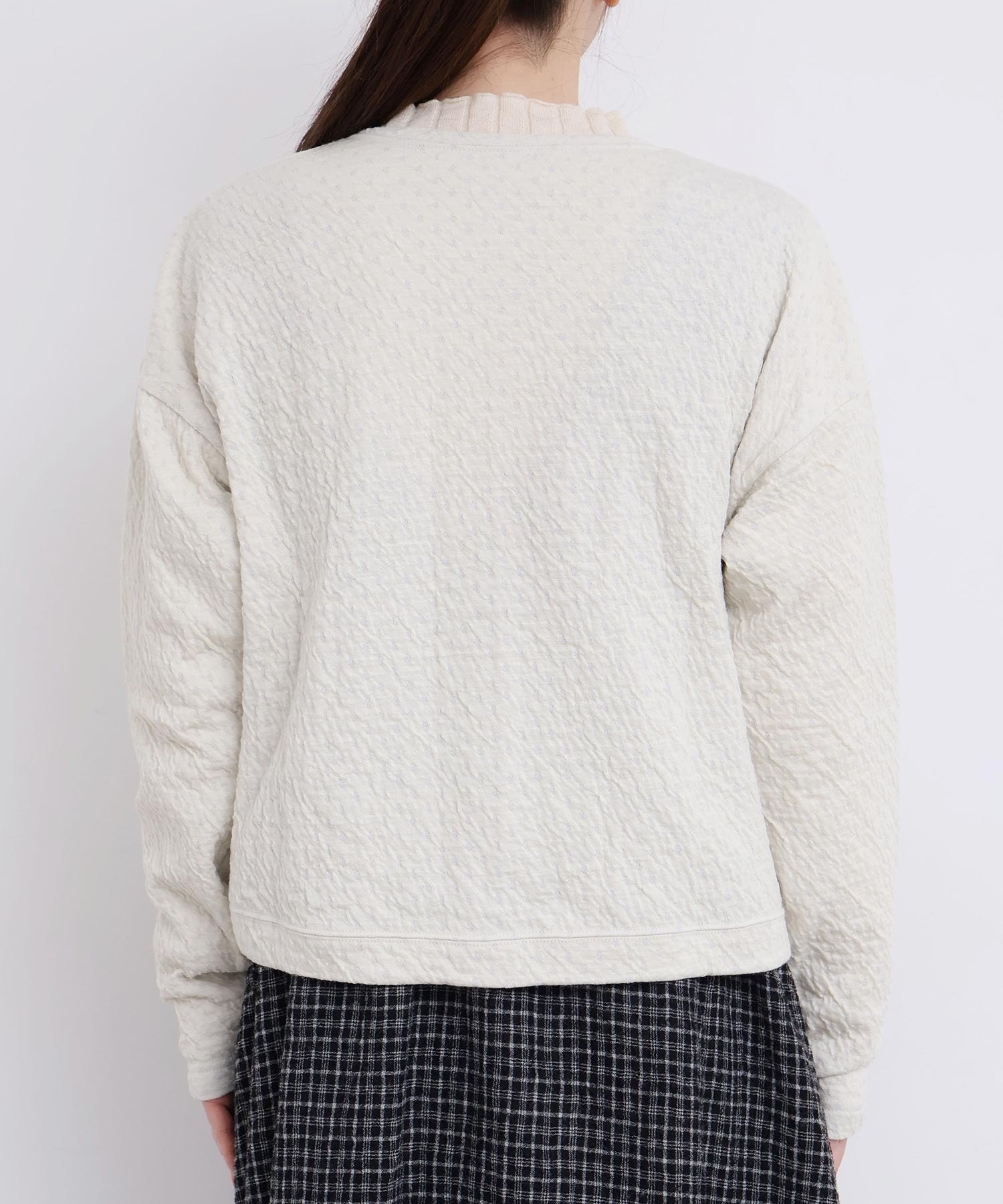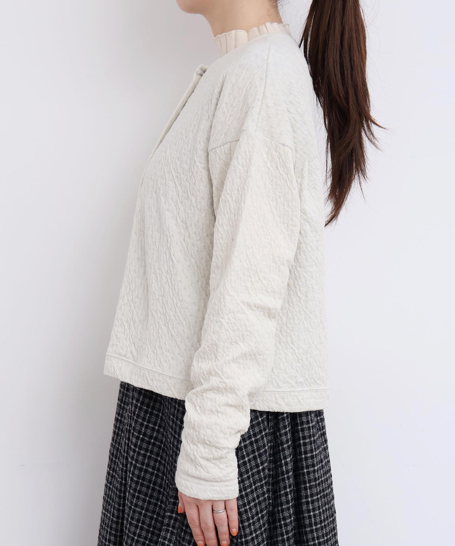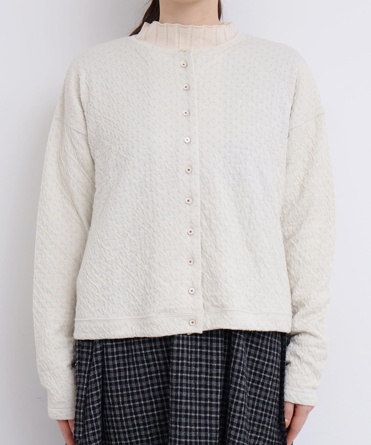 それぞれの糸で縮み方が違い、また部分的にしかくっついていないので、やわらかくふっくらとした立体感がある素材です。