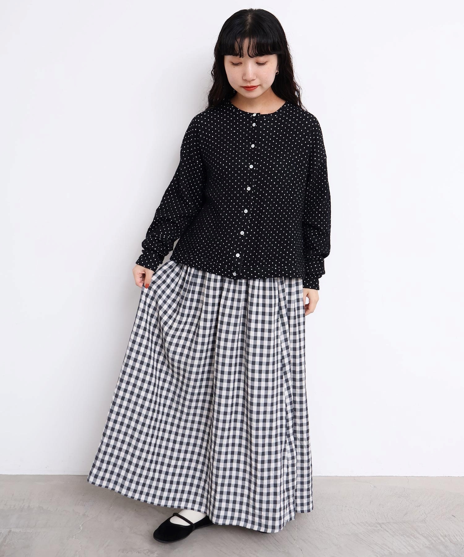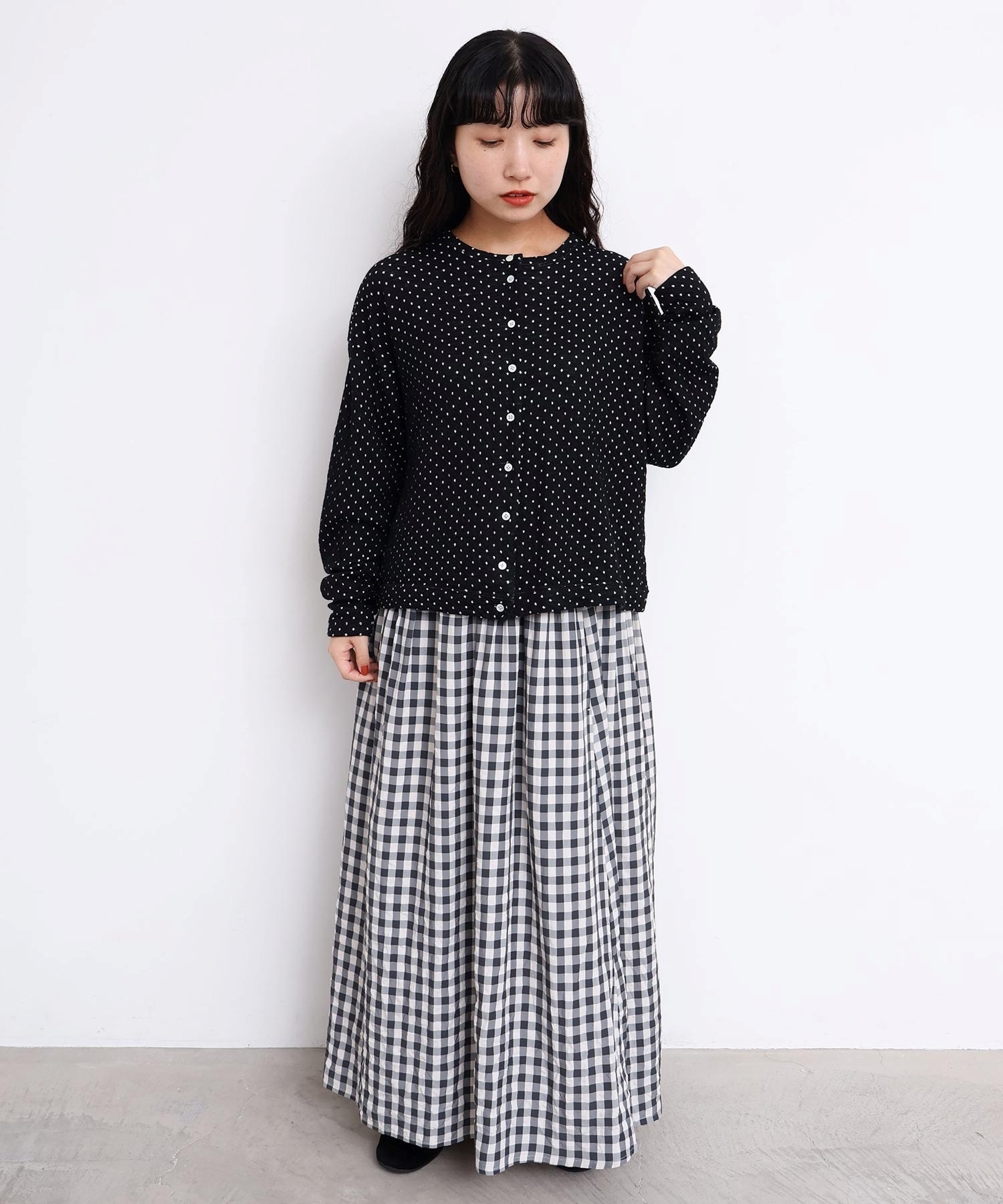 ドット柄ですがポップ過ぎない雰囲気で着られます。
