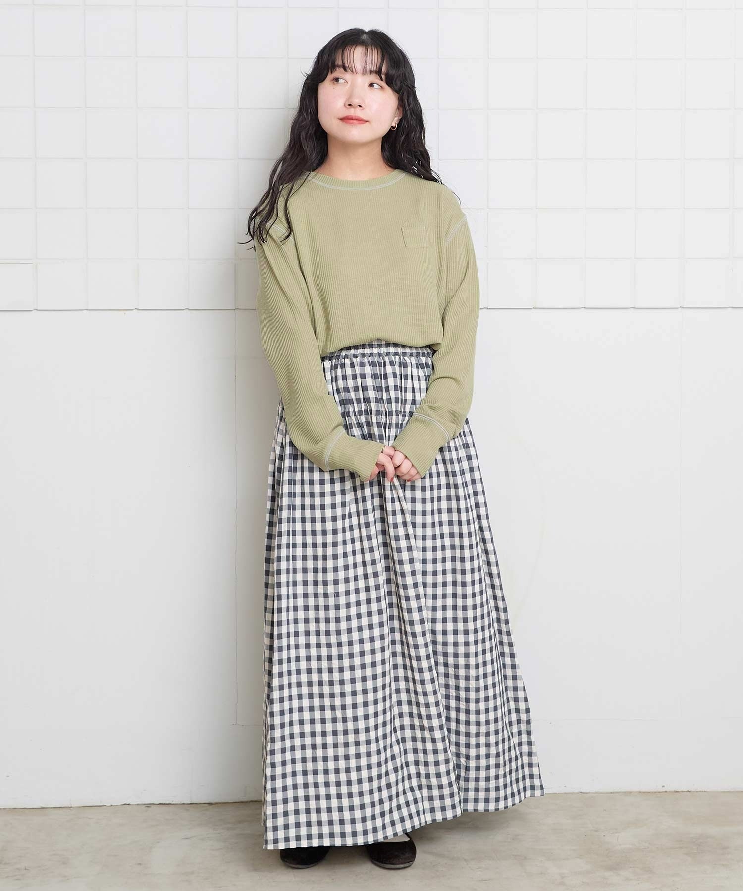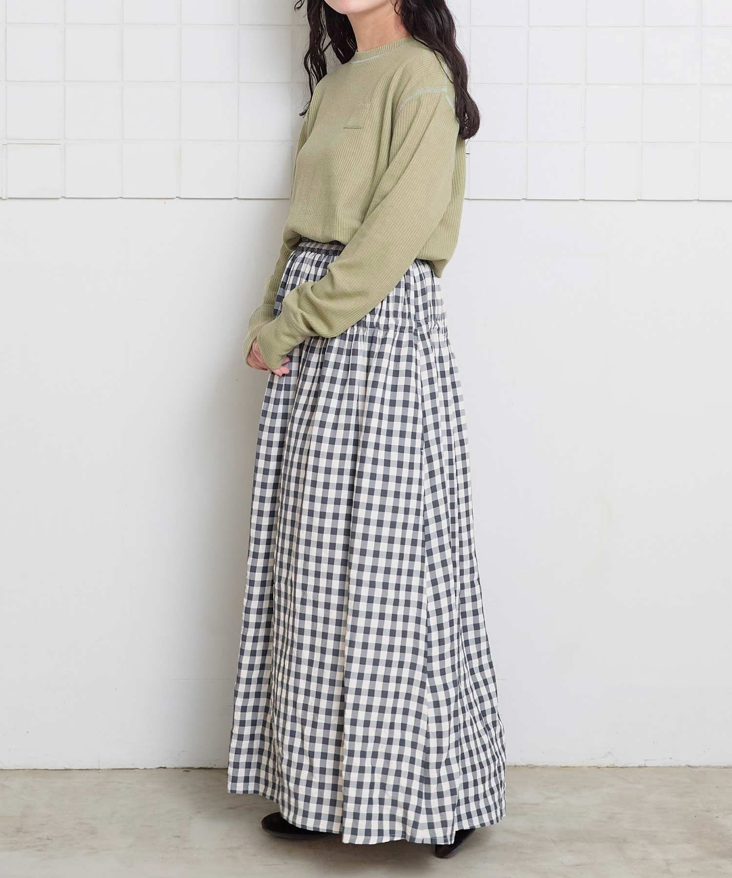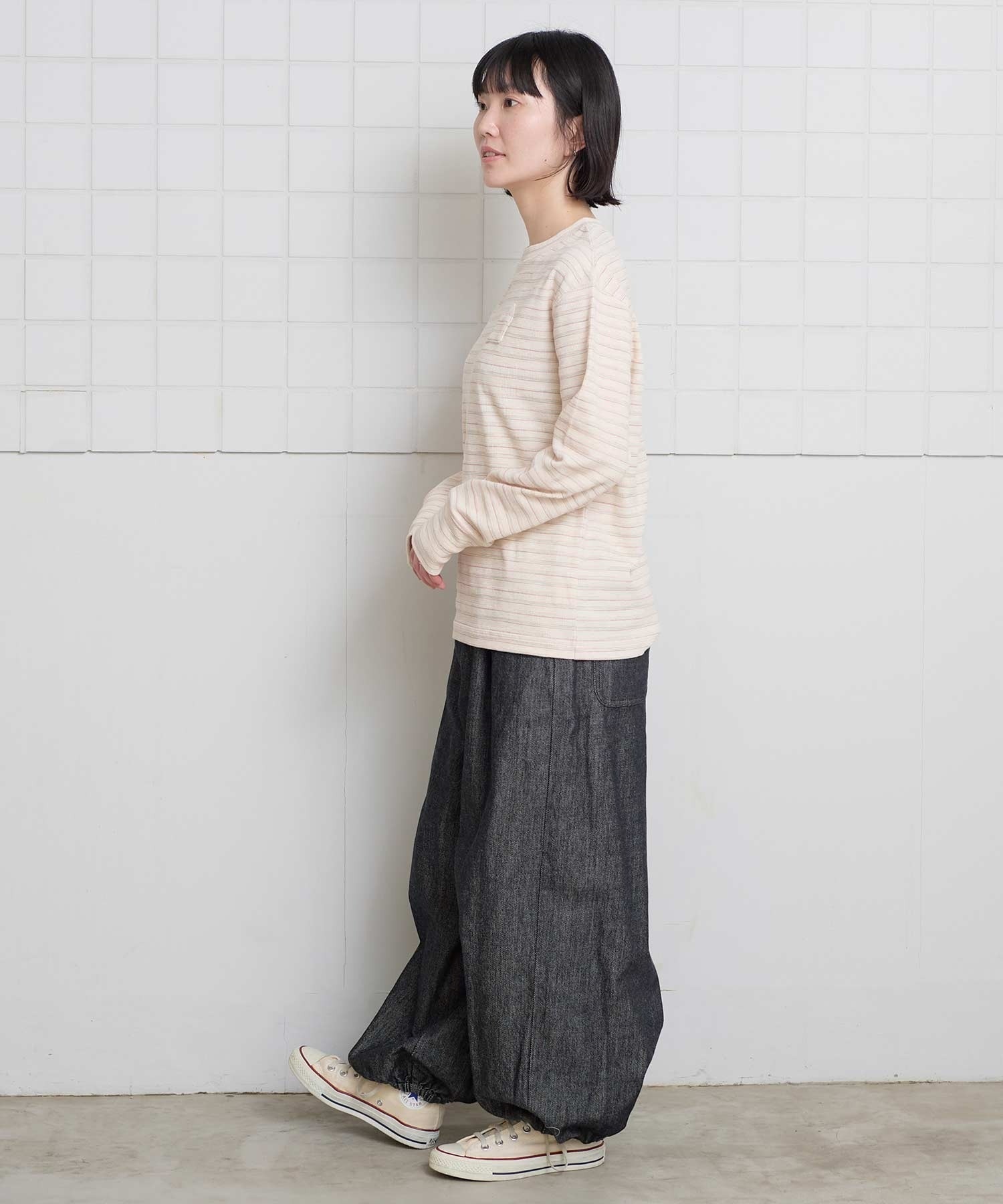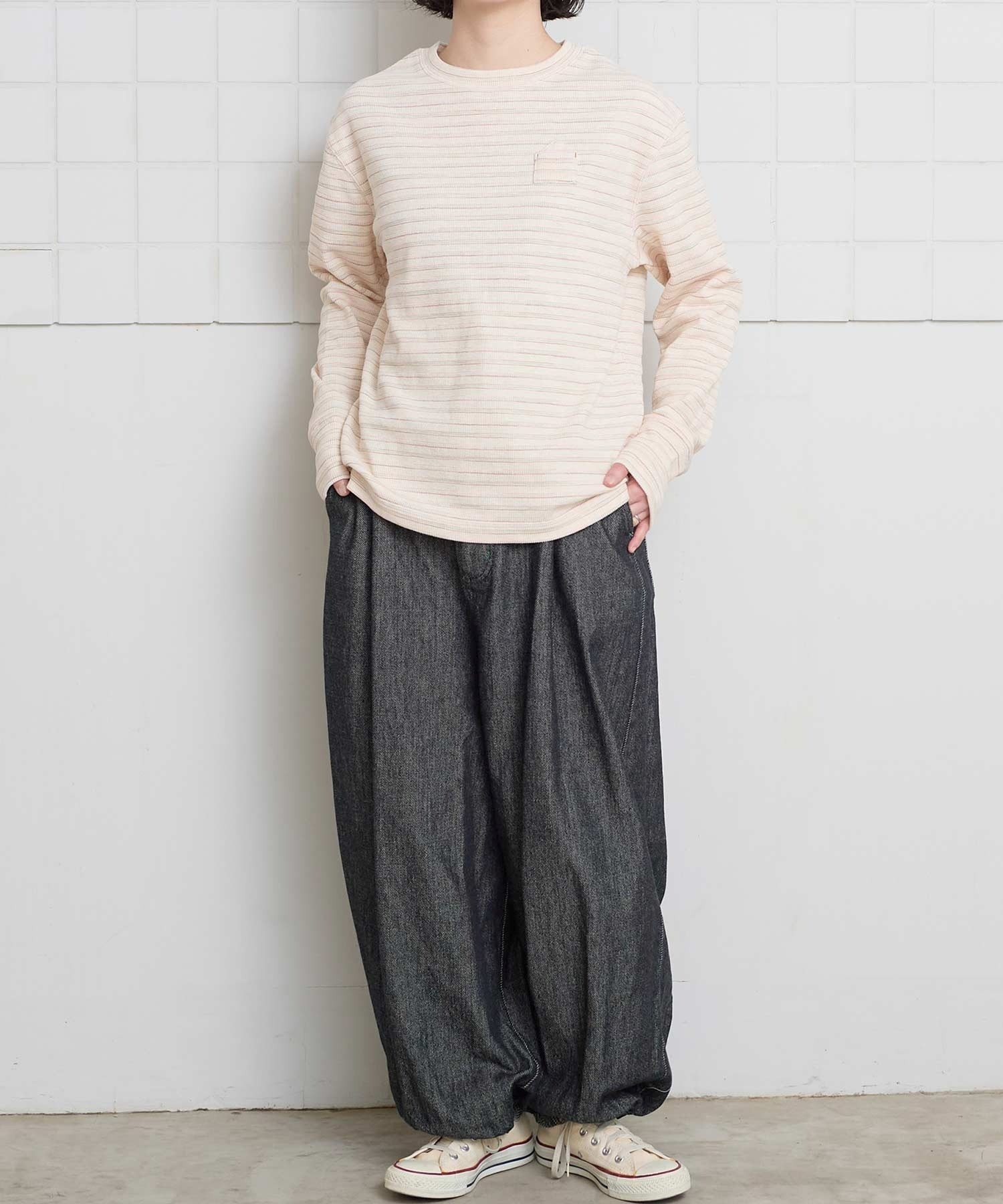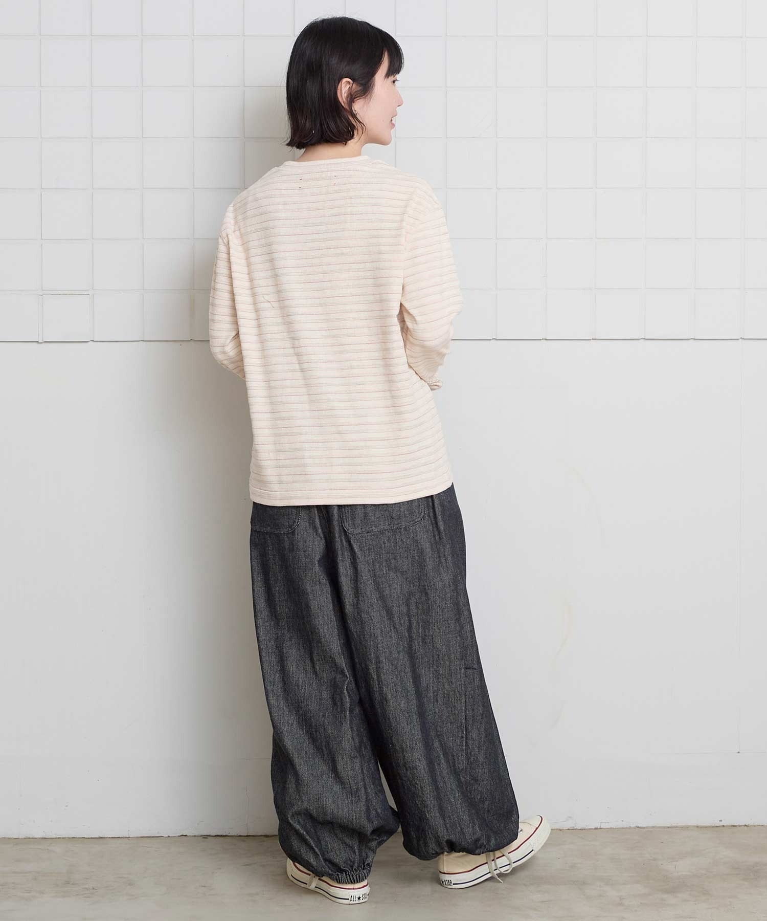 ほどよいゆったり感と、長めな袖口なので一枚でシンプルに着られます。