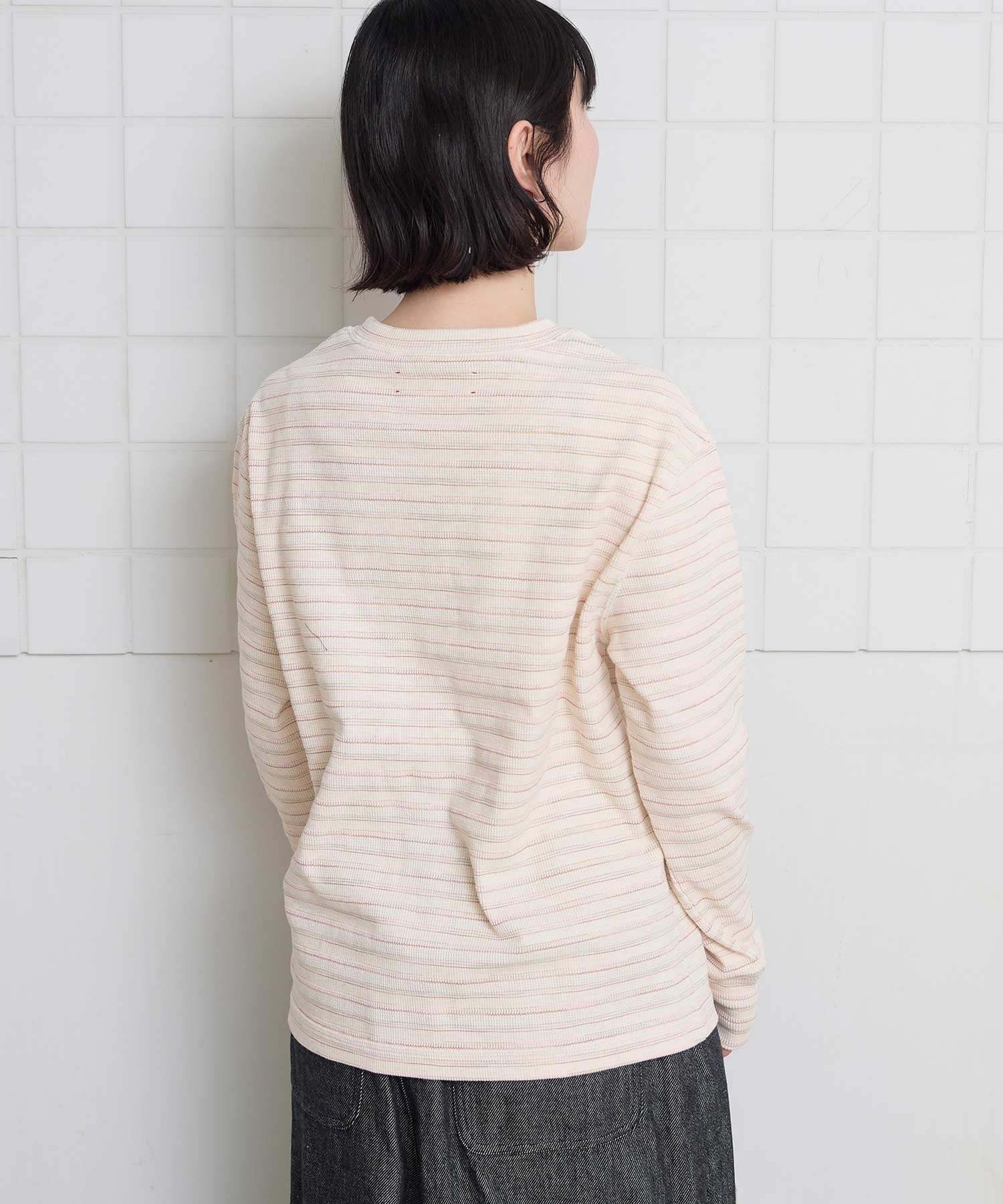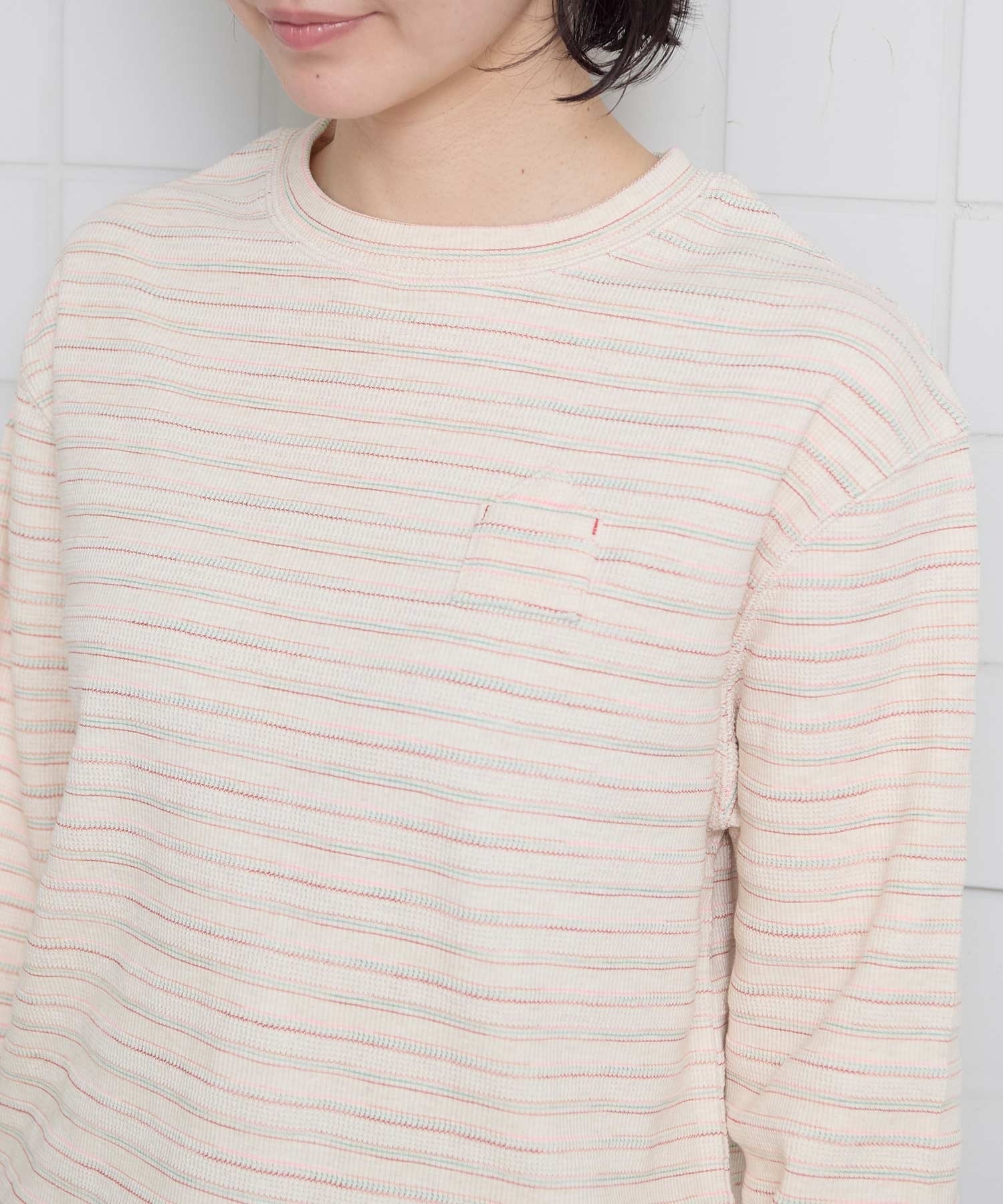 ボーダーはピンクやグリーンの入った色合いです。