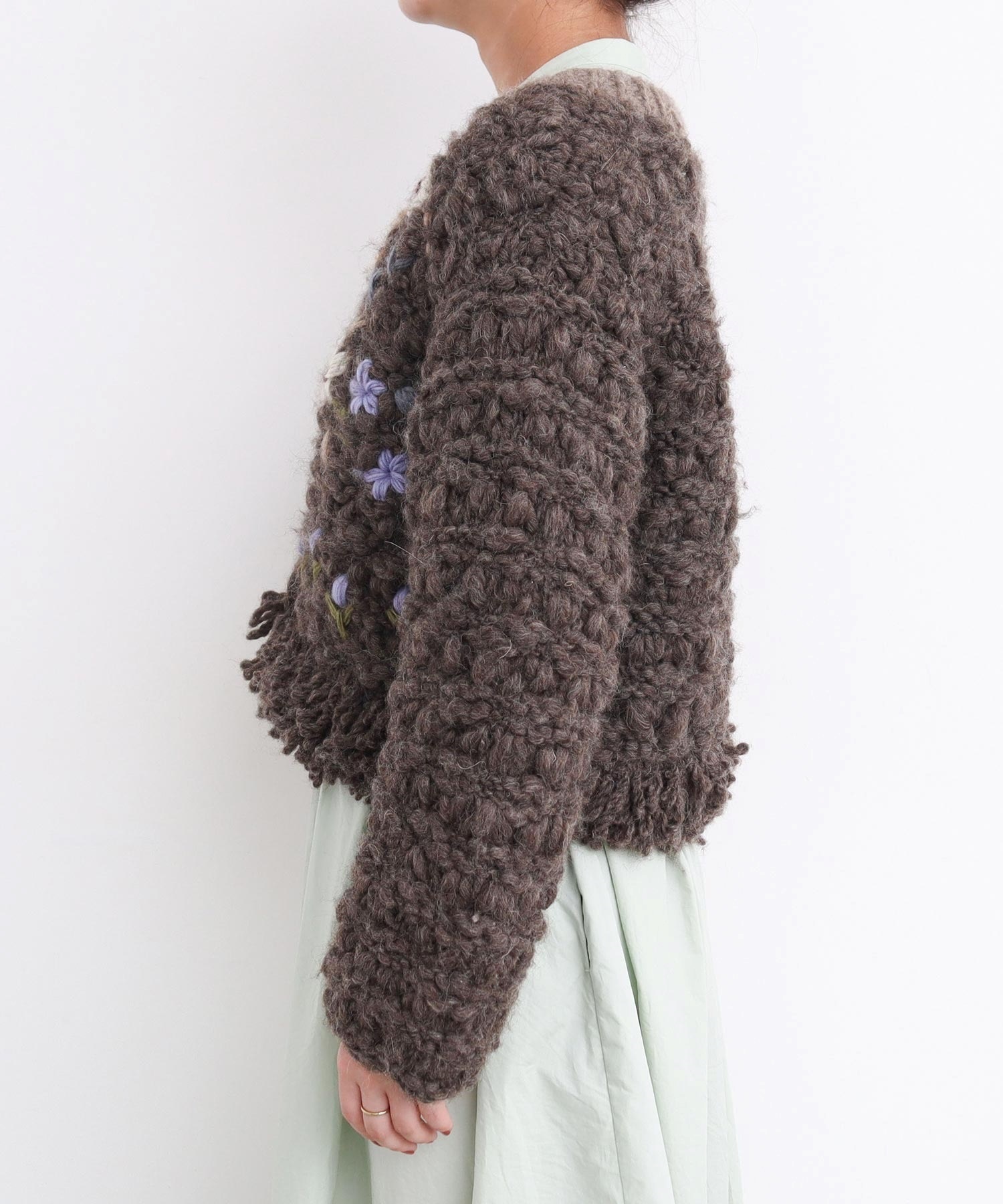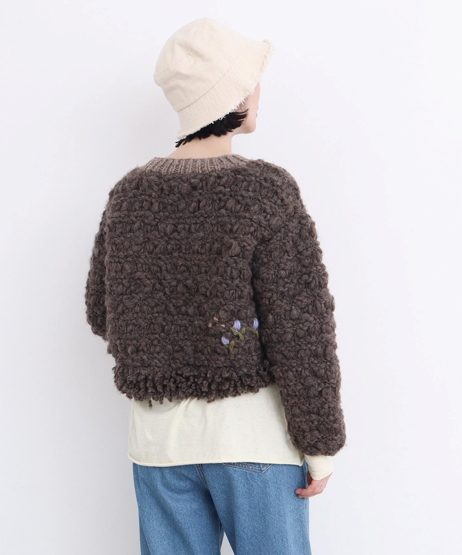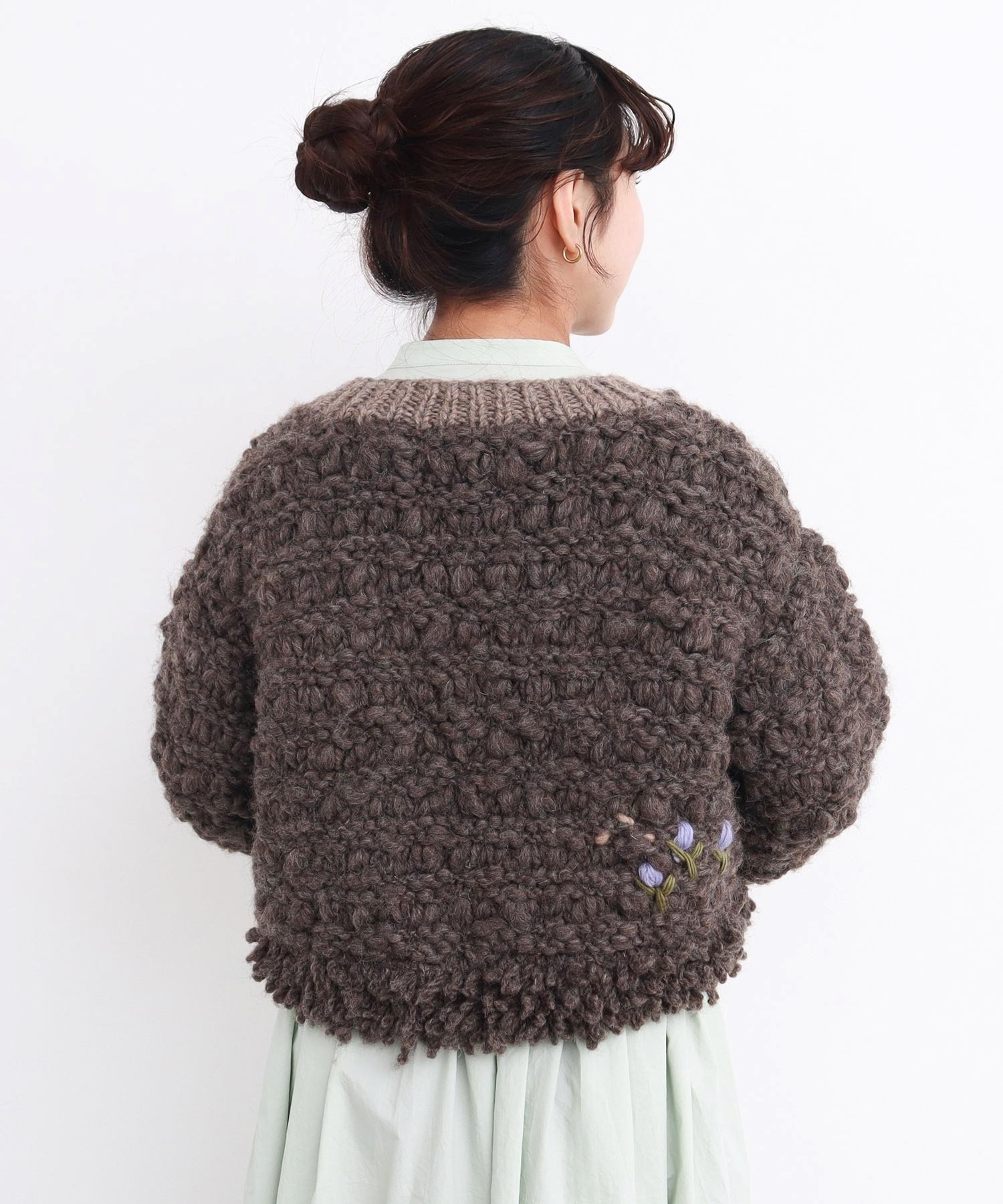 この製品は手編みの為、サイズに多少ばらつきがあり、着用するうちに、着丈、身幅等が変化する場合がございます。