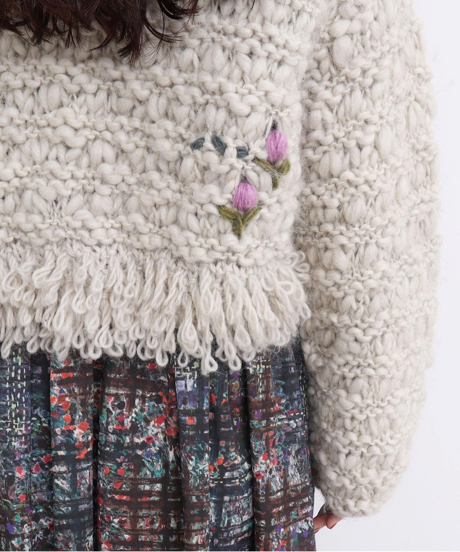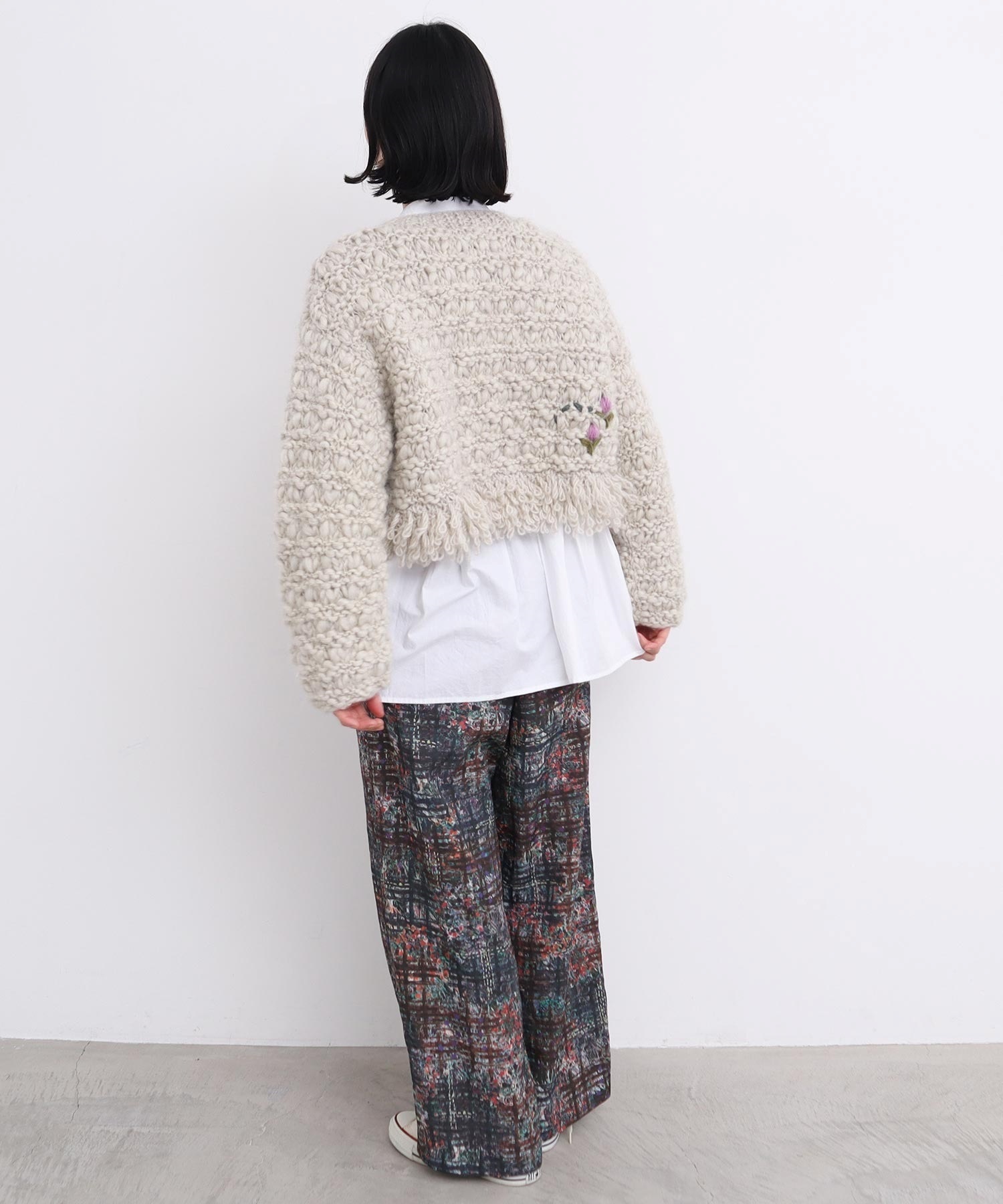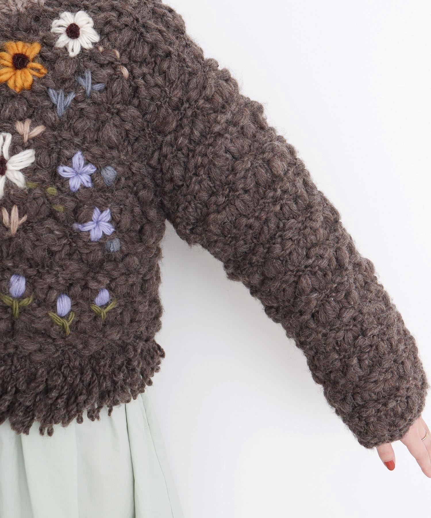 この製品は手編みの為、サイズに多少ばらつきがあり、着用するうちに、着丈、身幅等が変化する場合がございます。