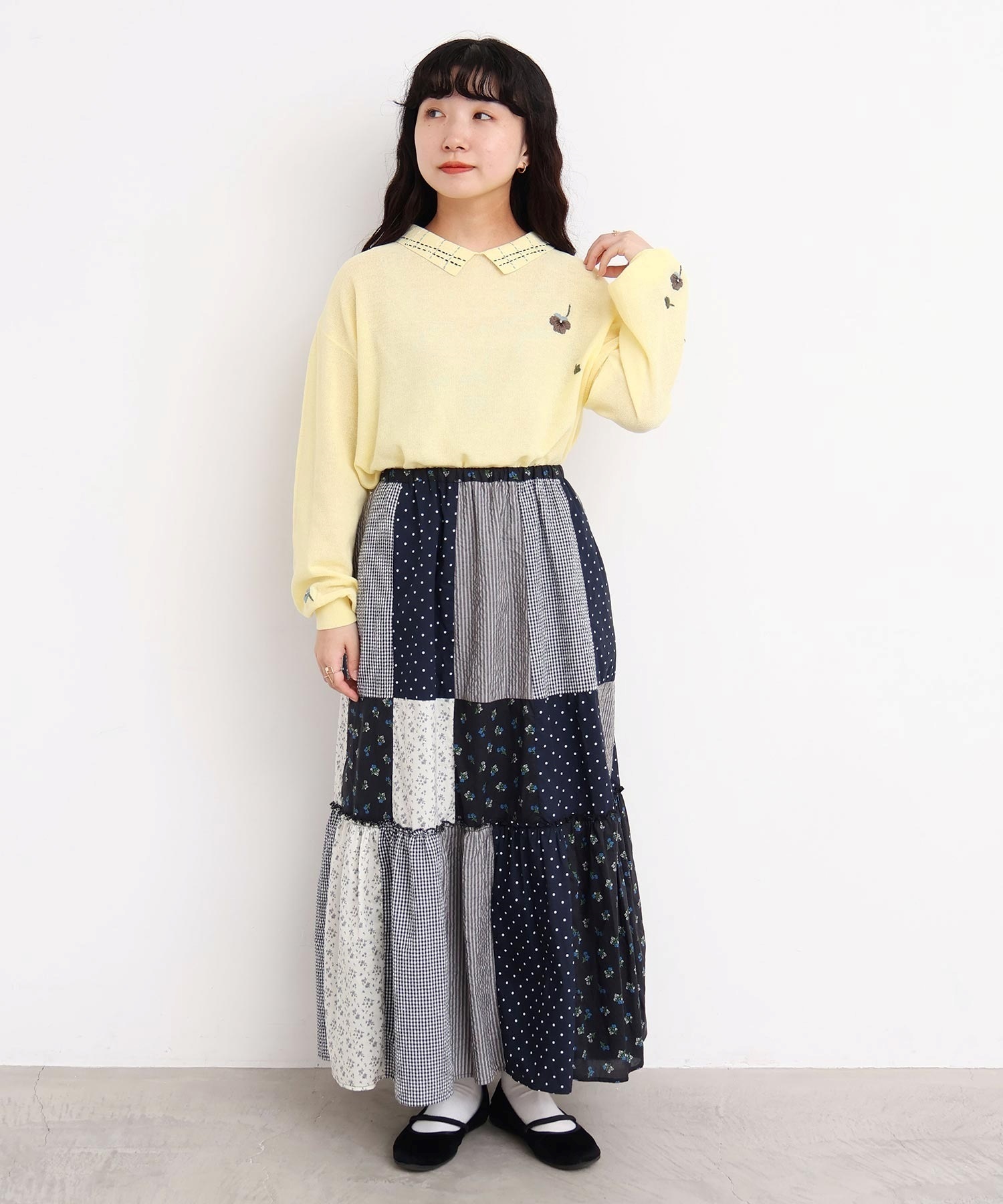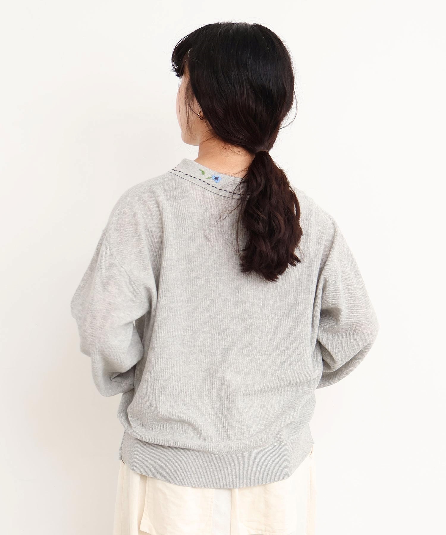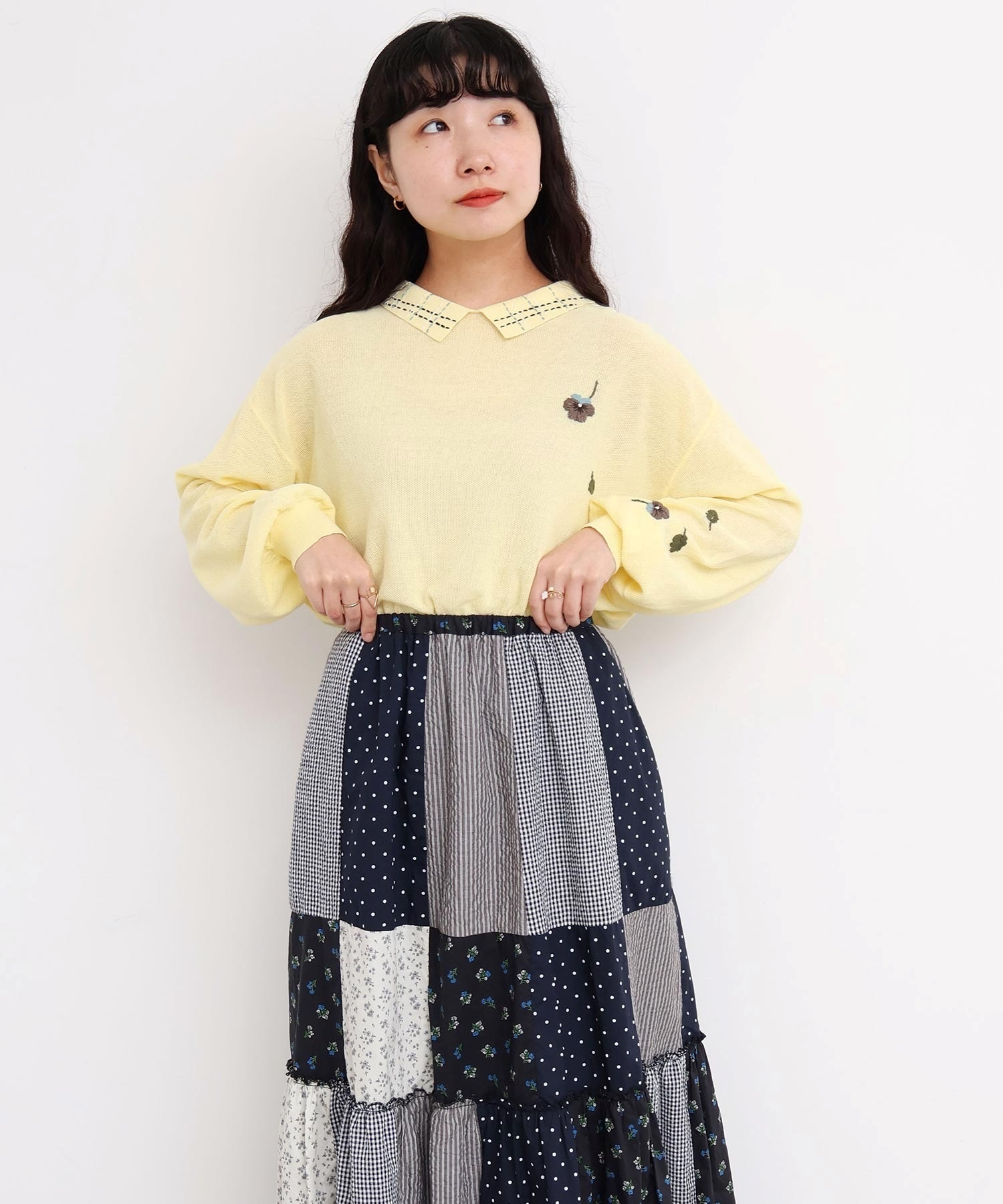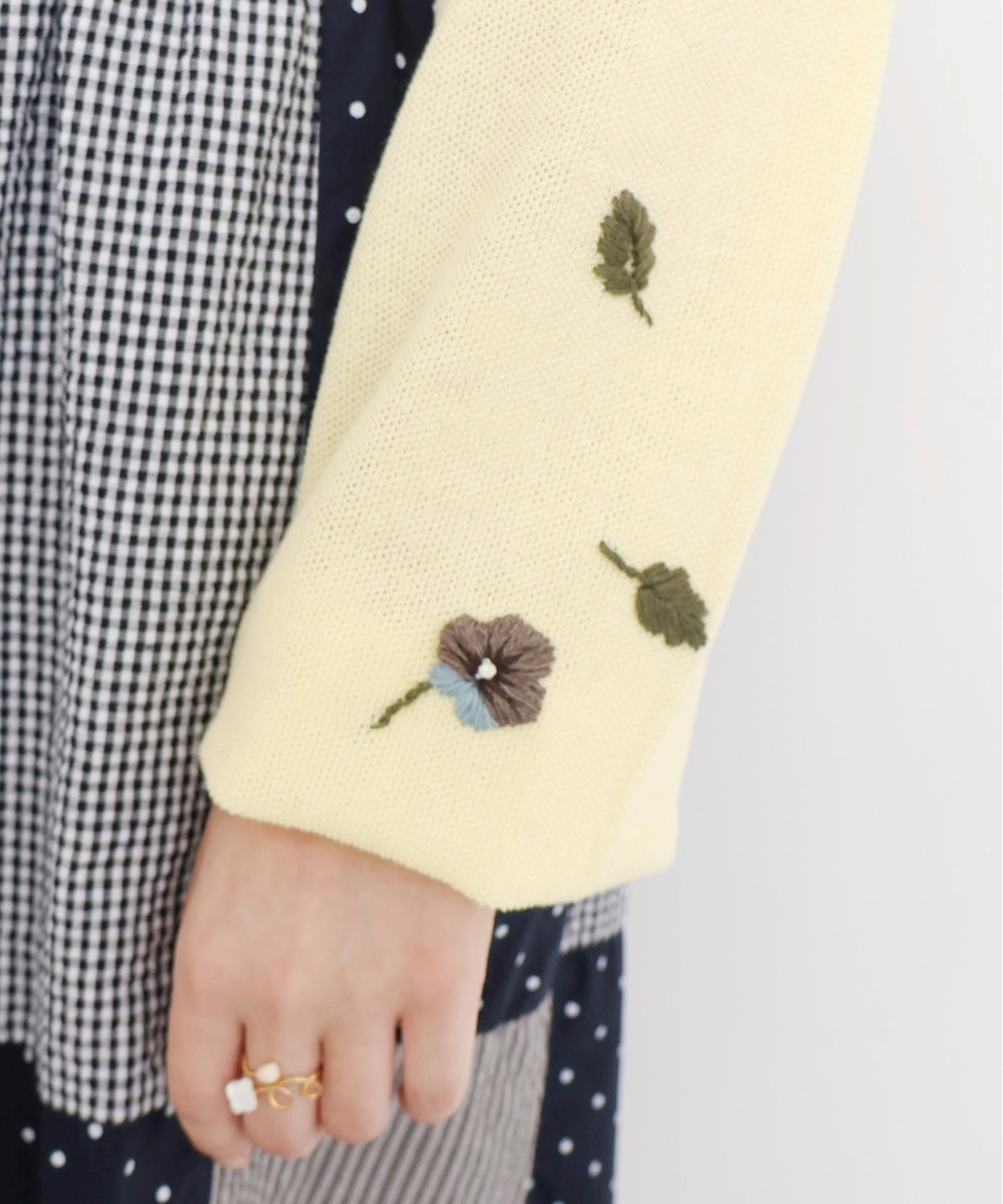 カジュアルにも着こなせる襟付きニットは、胸元のワンポイントと襟のチェック刺繍でコーディネートしやすいアイテムです。