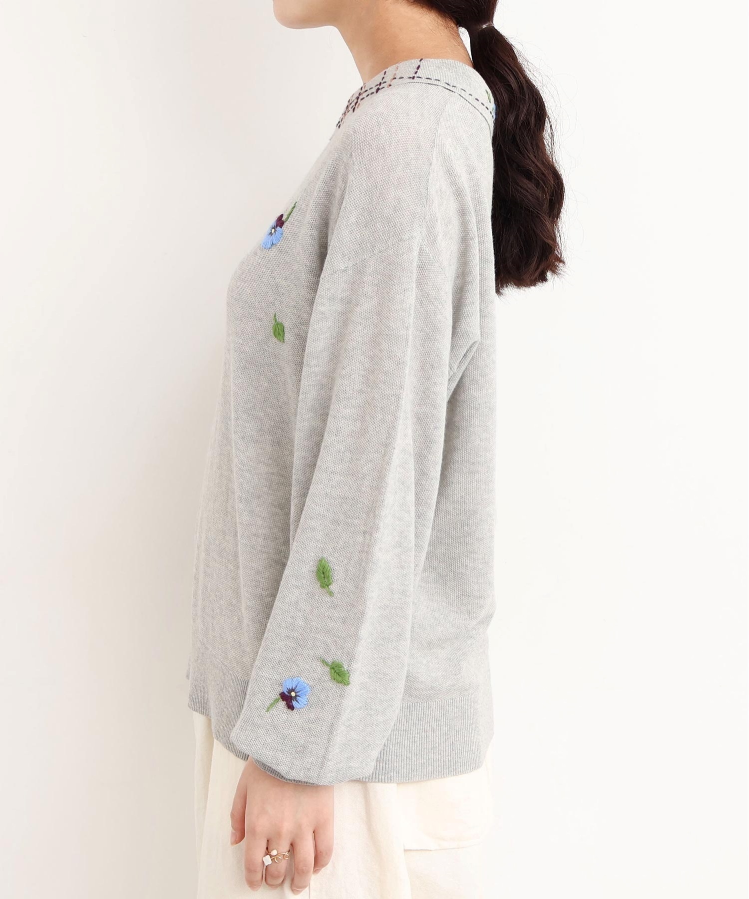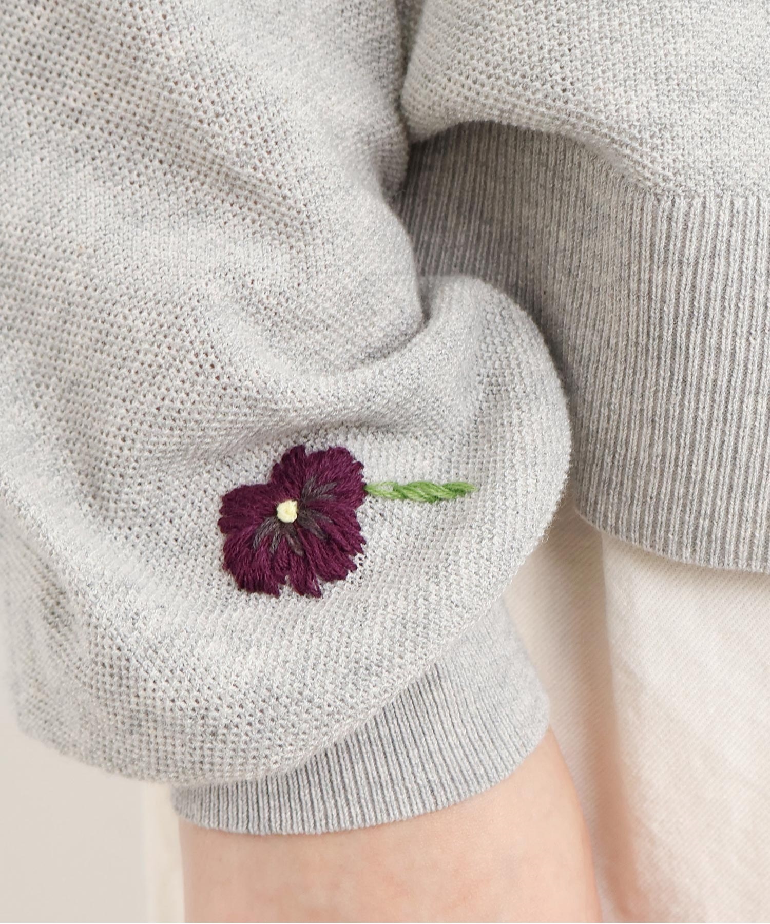 太い糸でふんわりと手刺繍されたパンジーのお花。