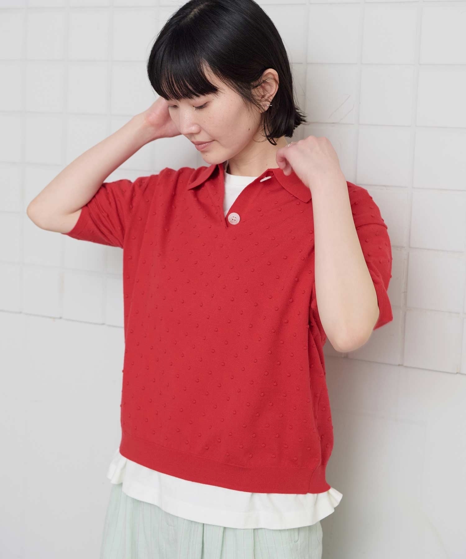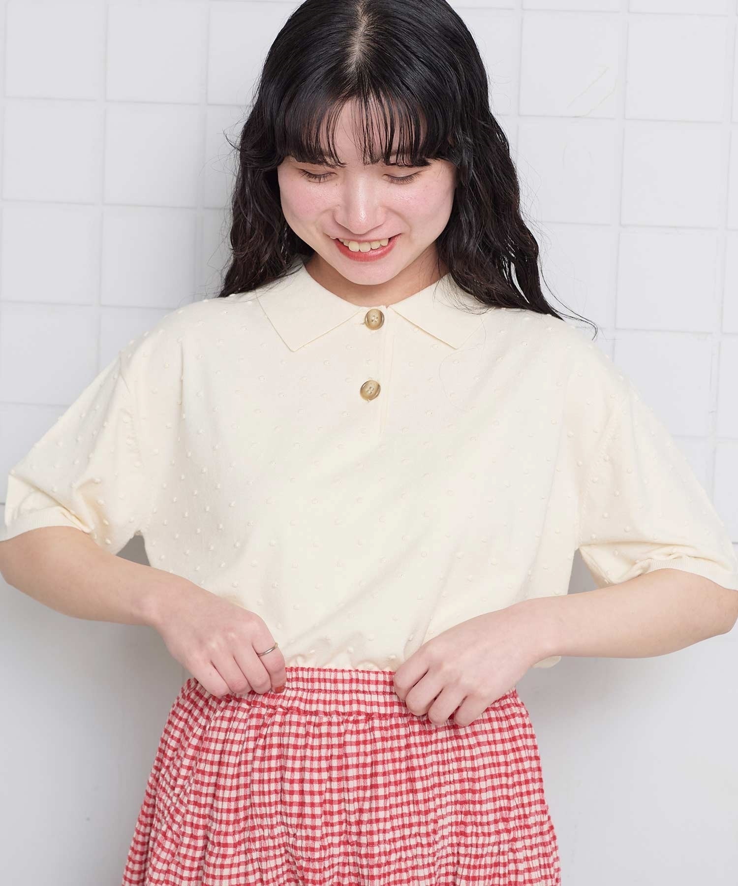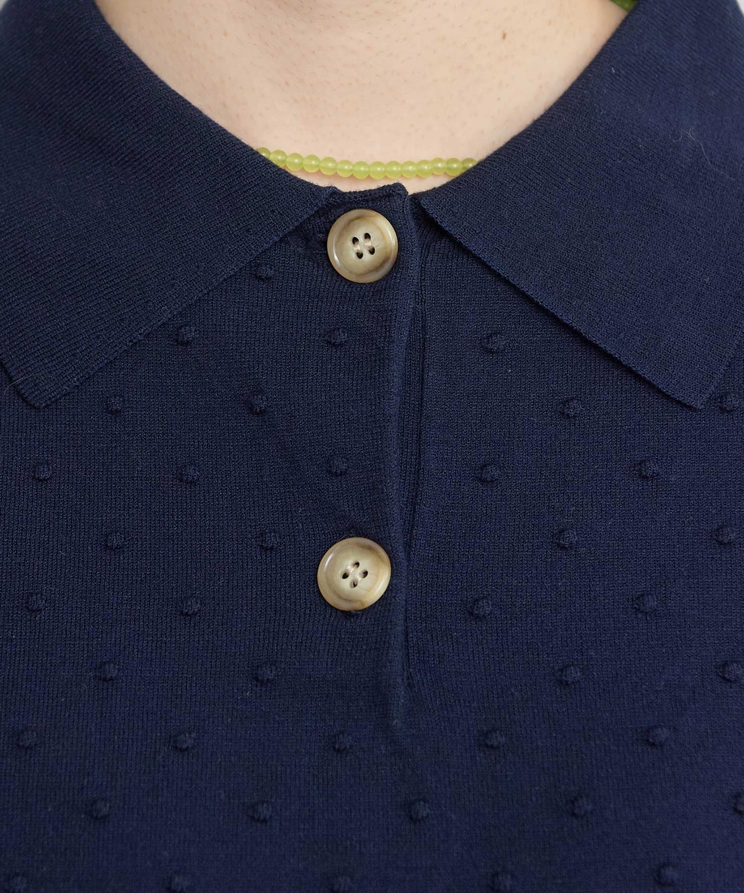 ドットのつぶつぶ感が増して、一枚でもより着ていただきやすい雰囲気に。