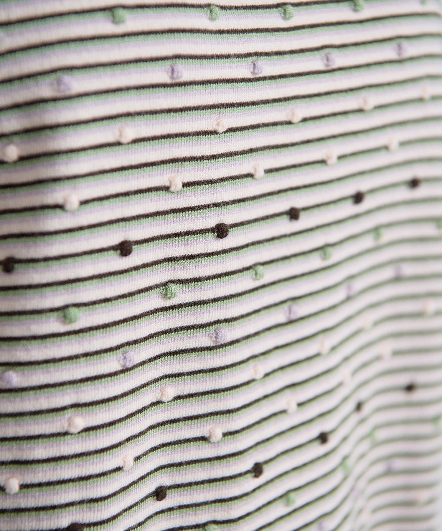 淡い色とブラウンを組み合わせたマルチボーダーは列ごとにドットの色が変わり、