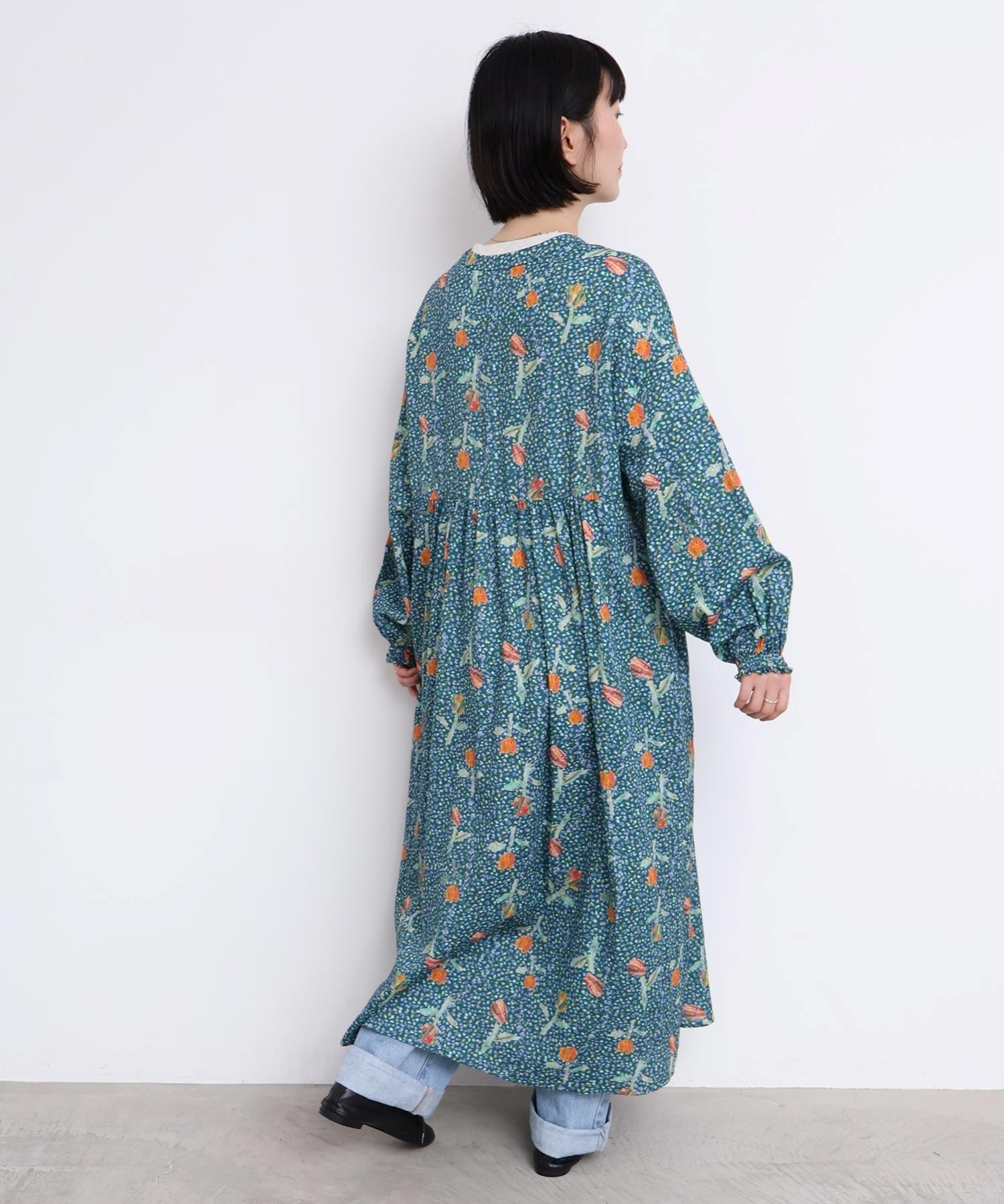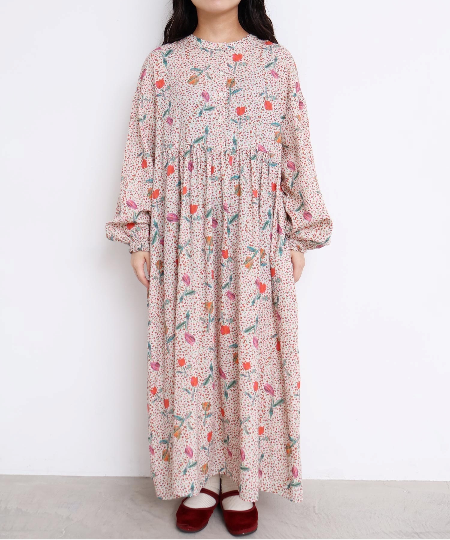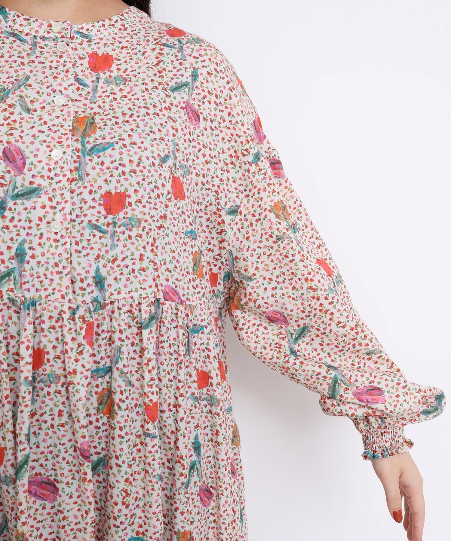袖口はフリルになったゴムのシャーリング仕様で着心地にもこだわりました。