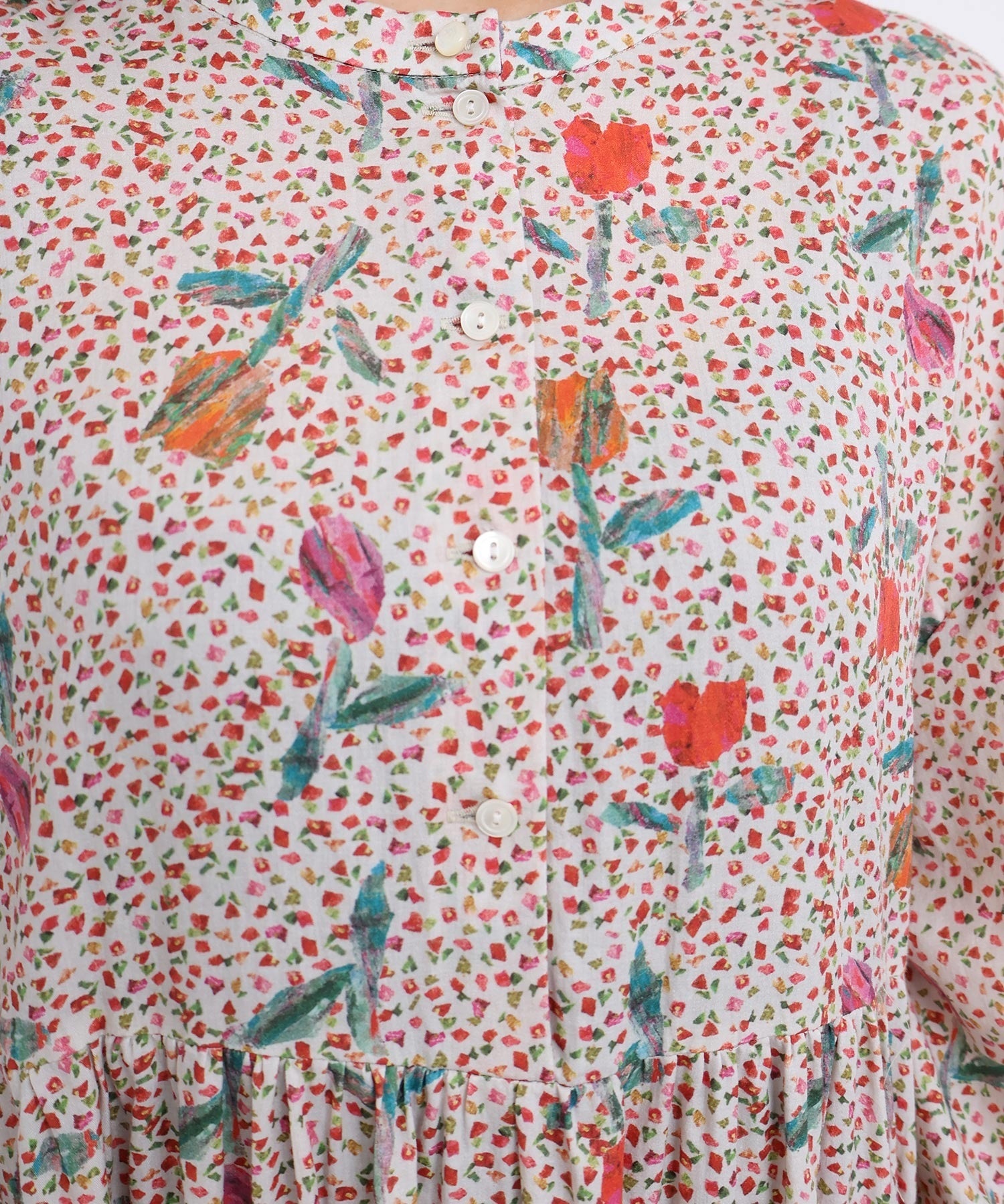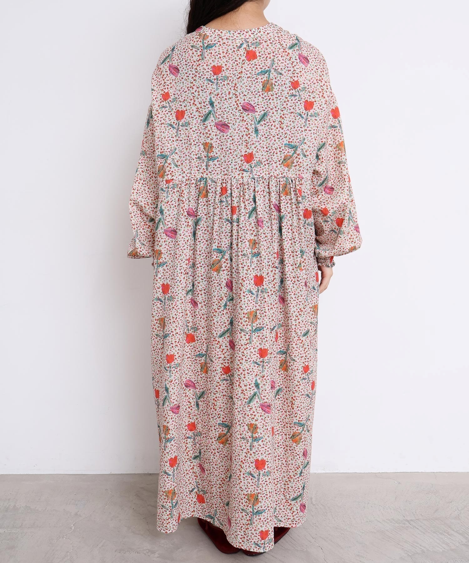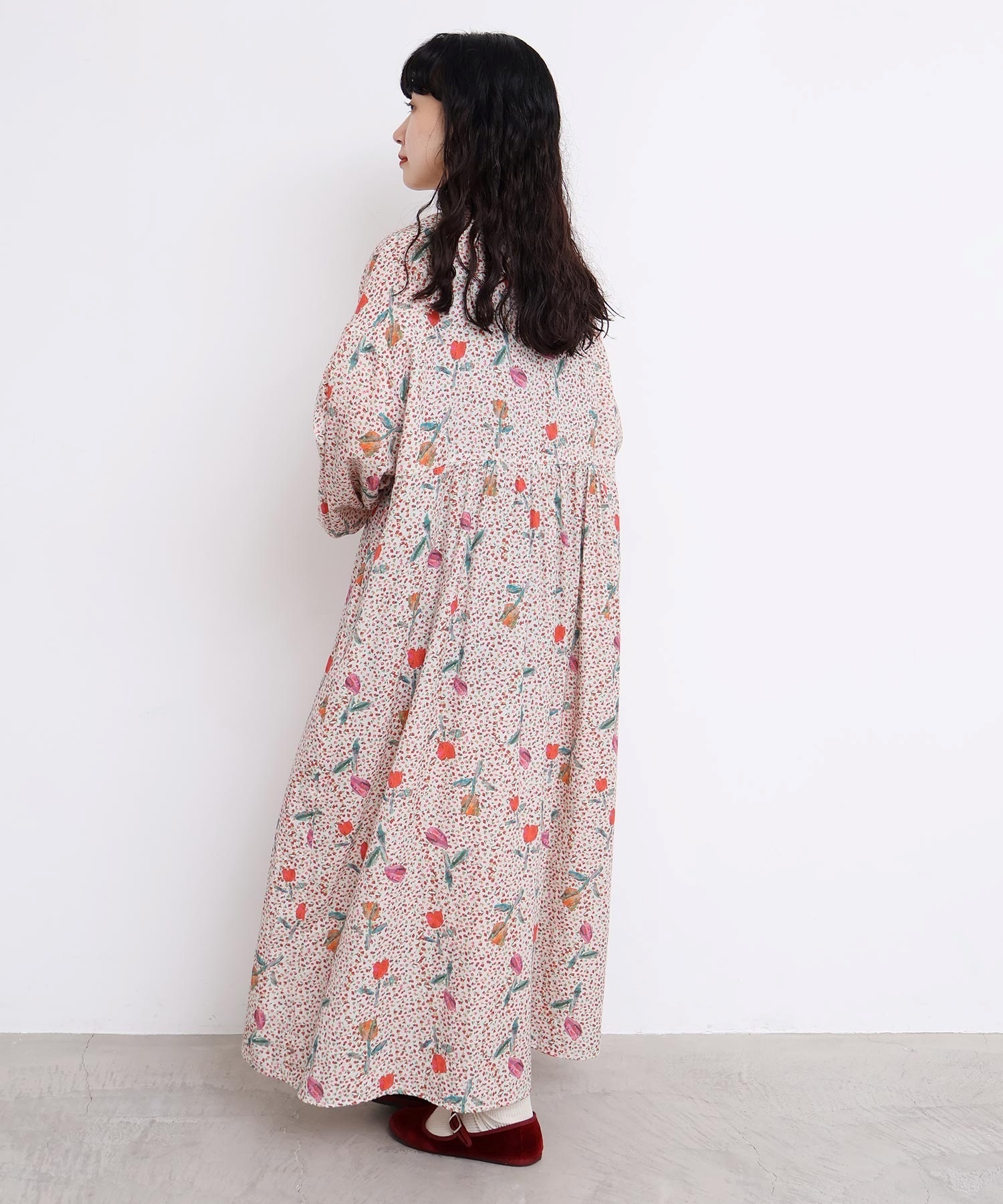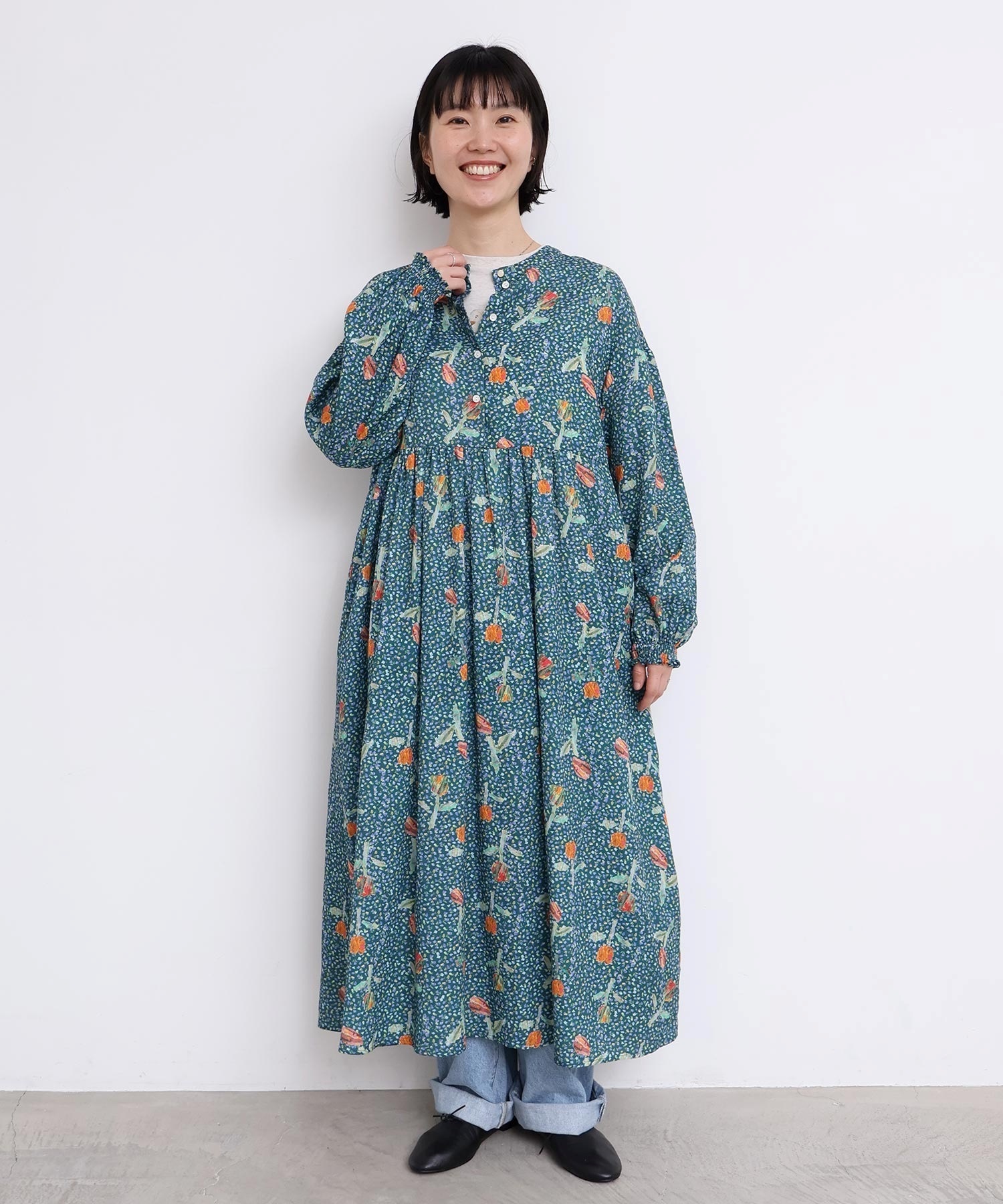 袖口はフリルになったゴムのシャーリング仕様で着心地にもこだわりました。