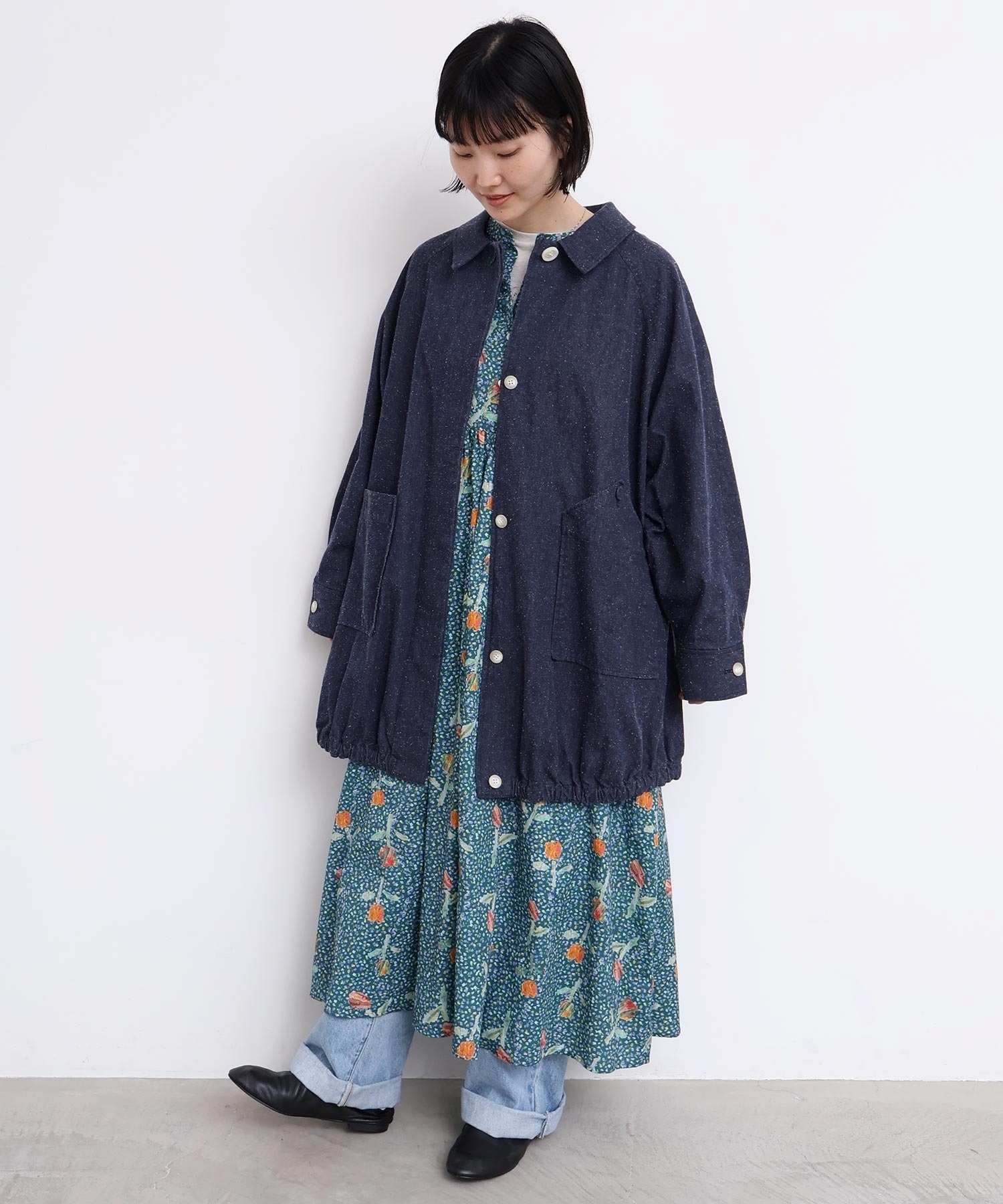 ボタンを少し開けたりデニムとレイヤードしたりもおすすめ。