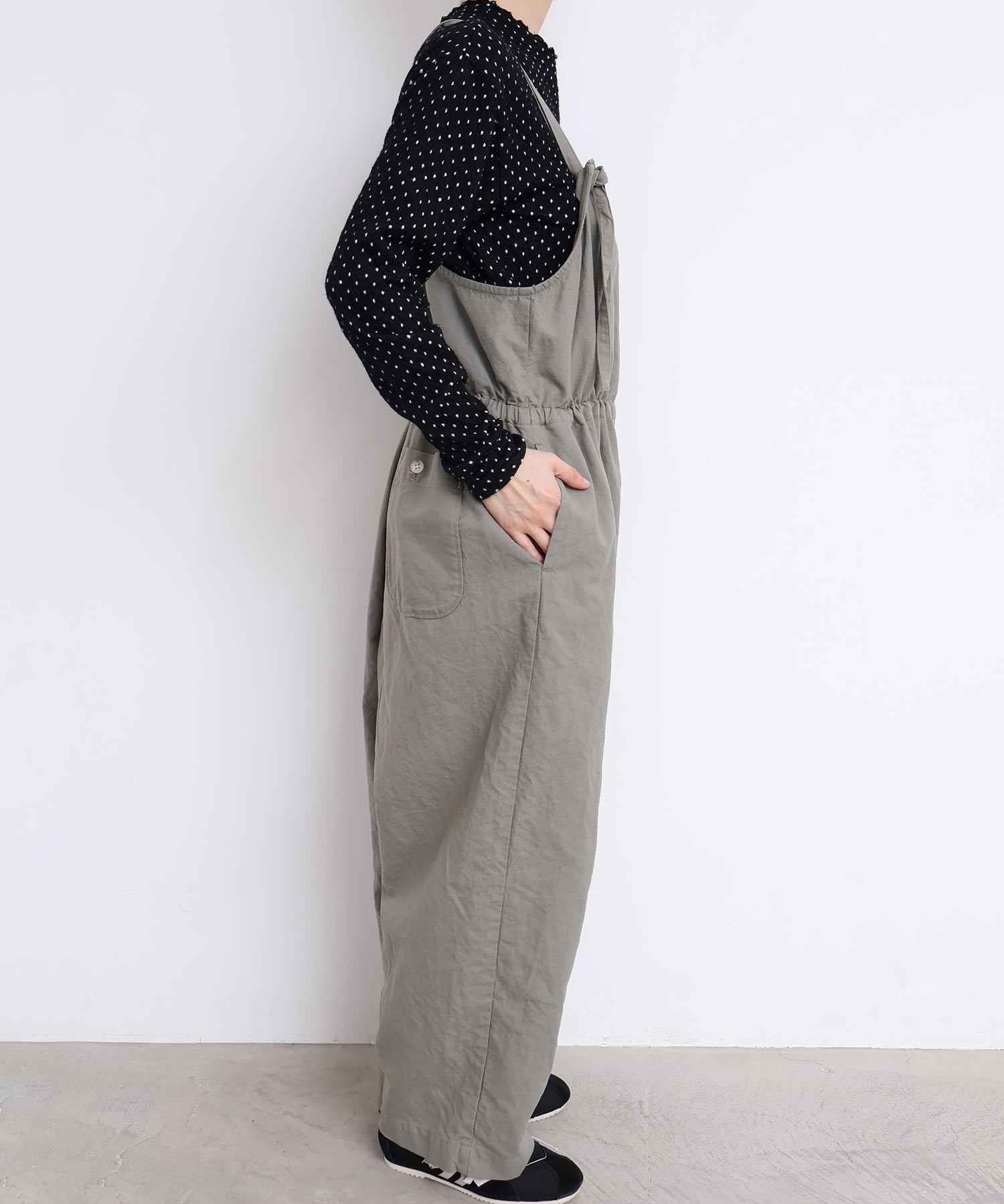 うすくて軽い生地を活かした、2つの着方ができるつなぎ。
