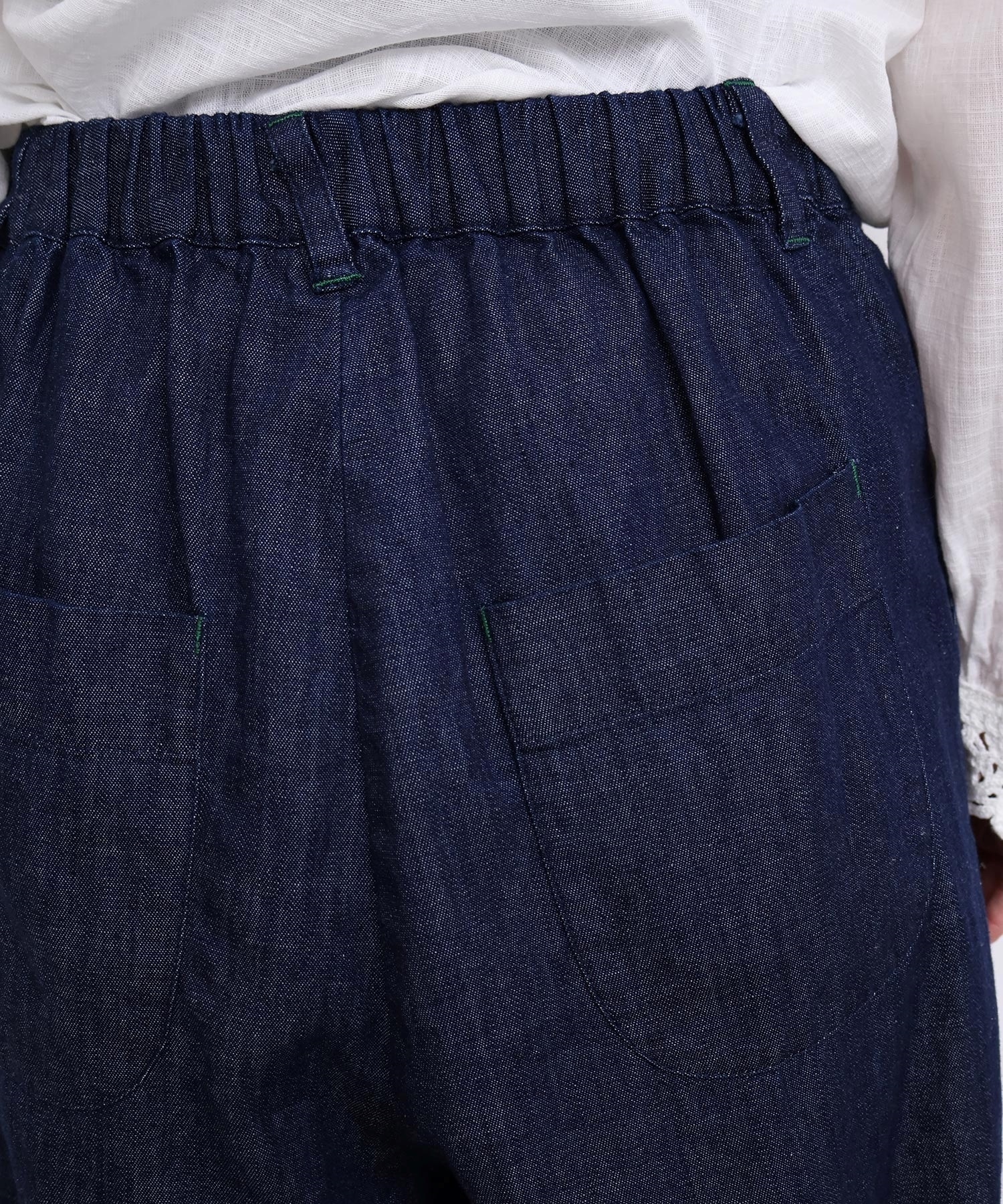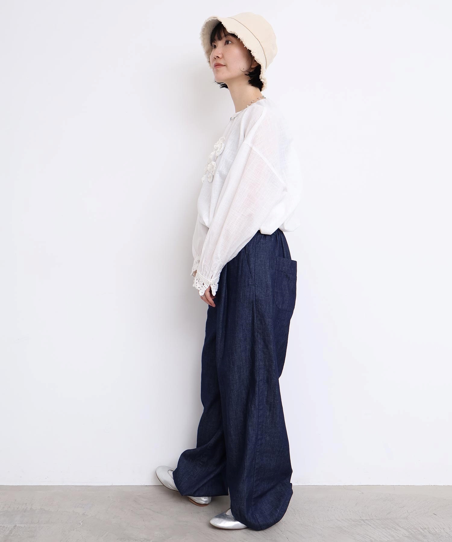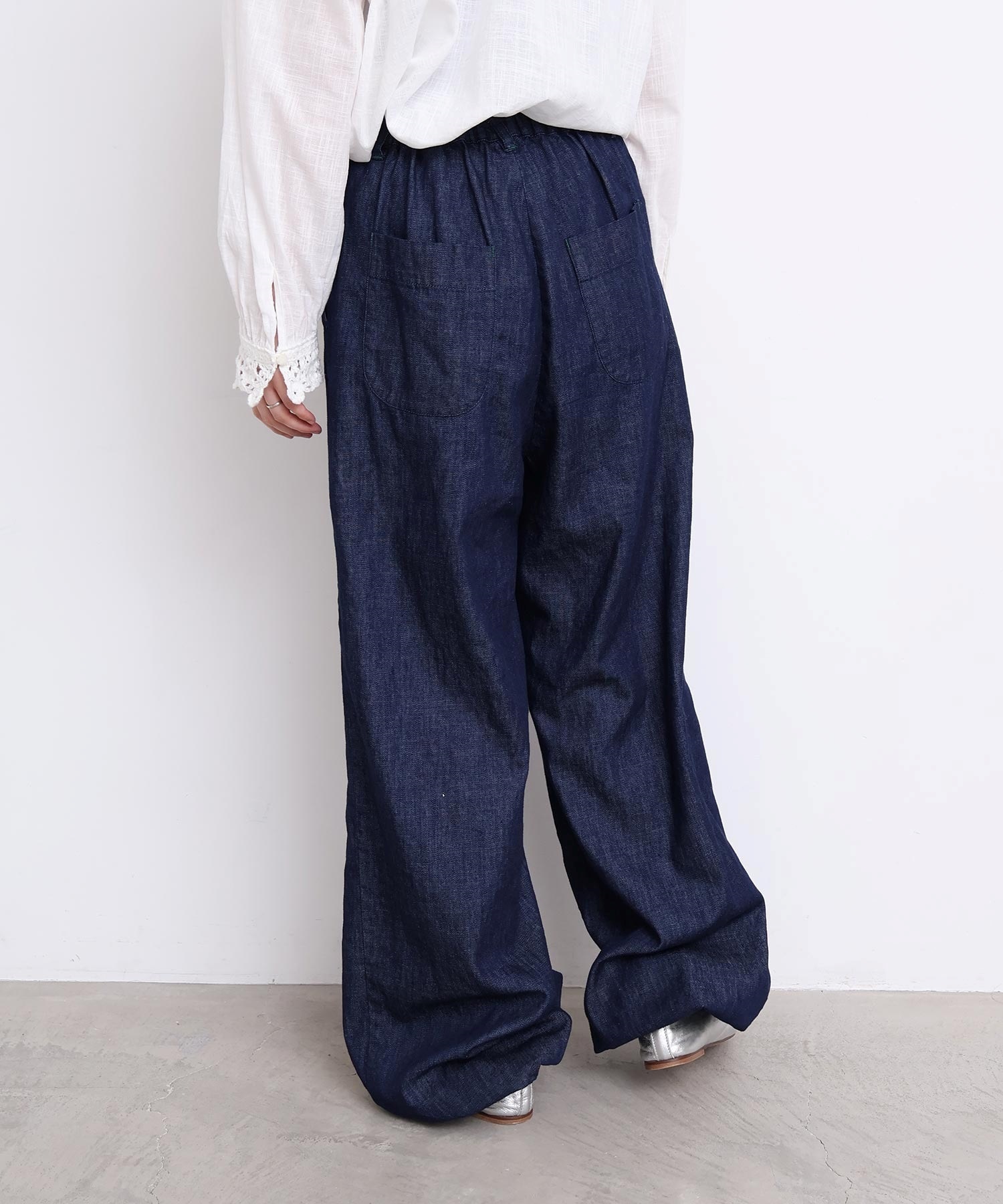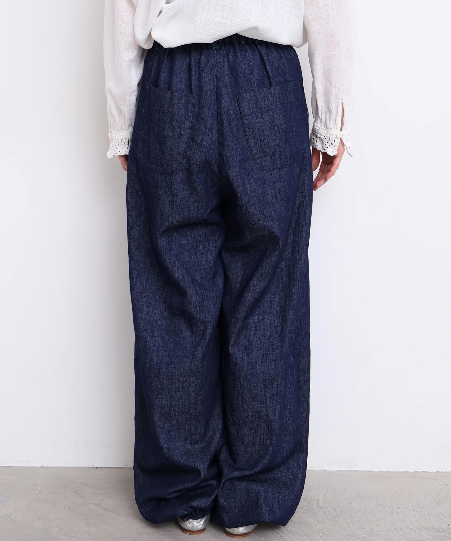 さわやかな薄手デニムで、裾ゴムのリラックスパンツを作りました。