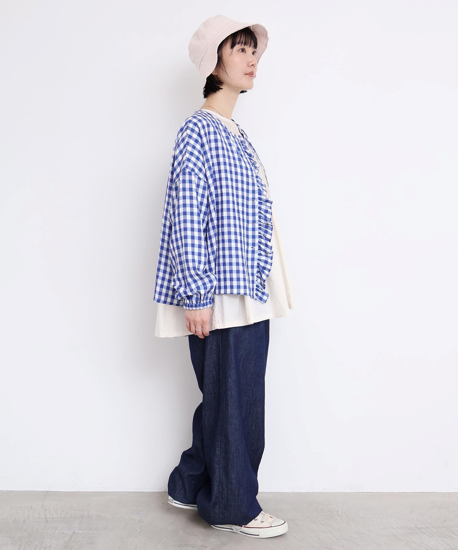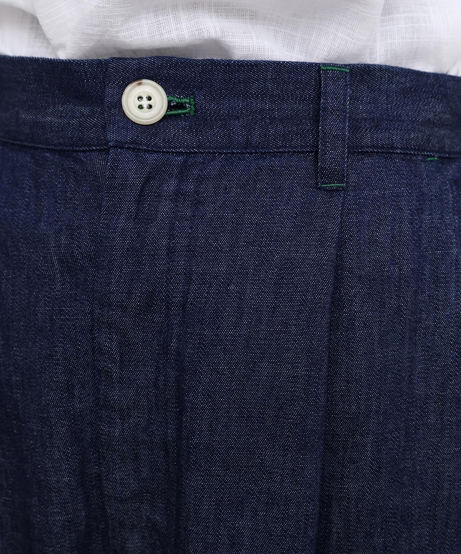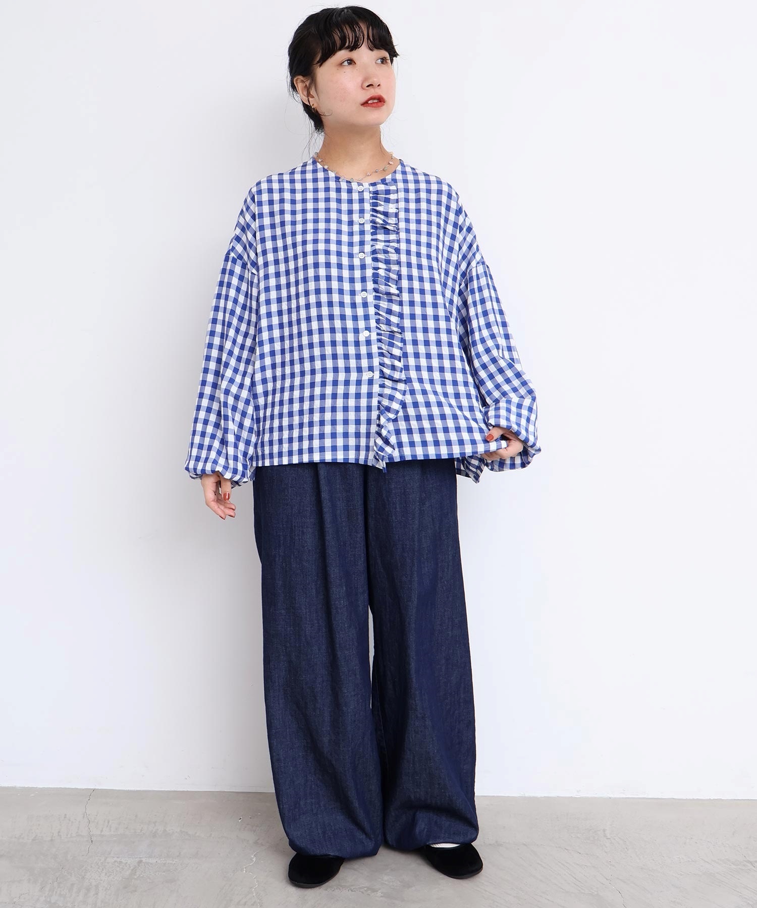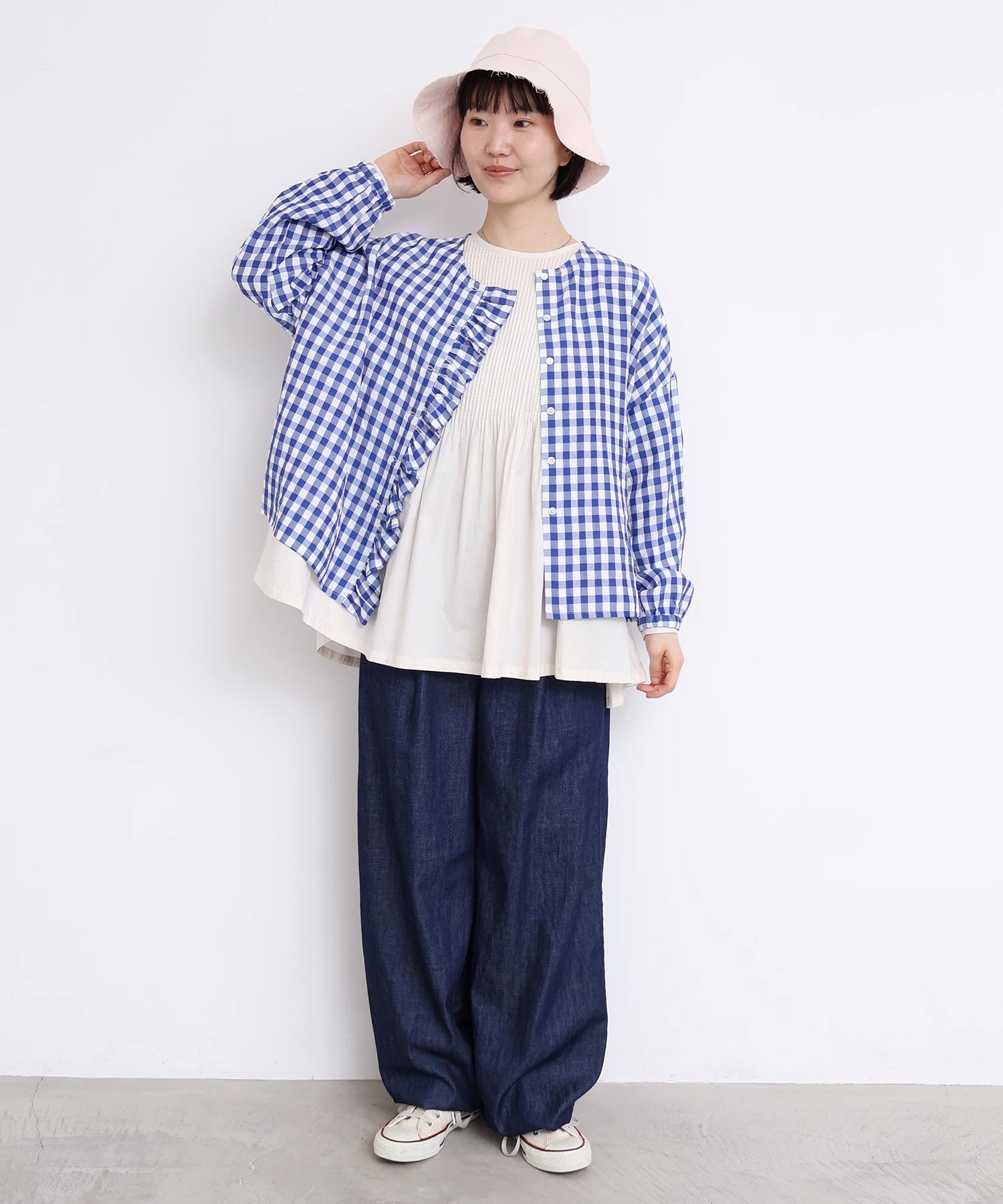 さわやかな薄手デニムで、裾ゴムのリラックスパンツを作りました。