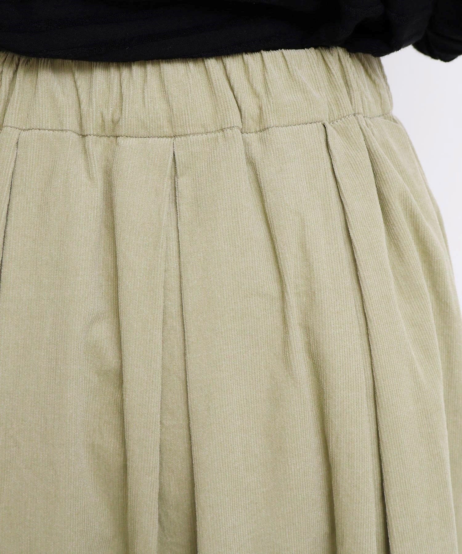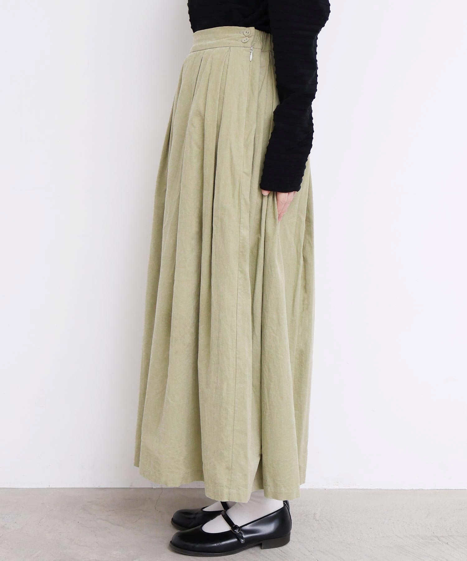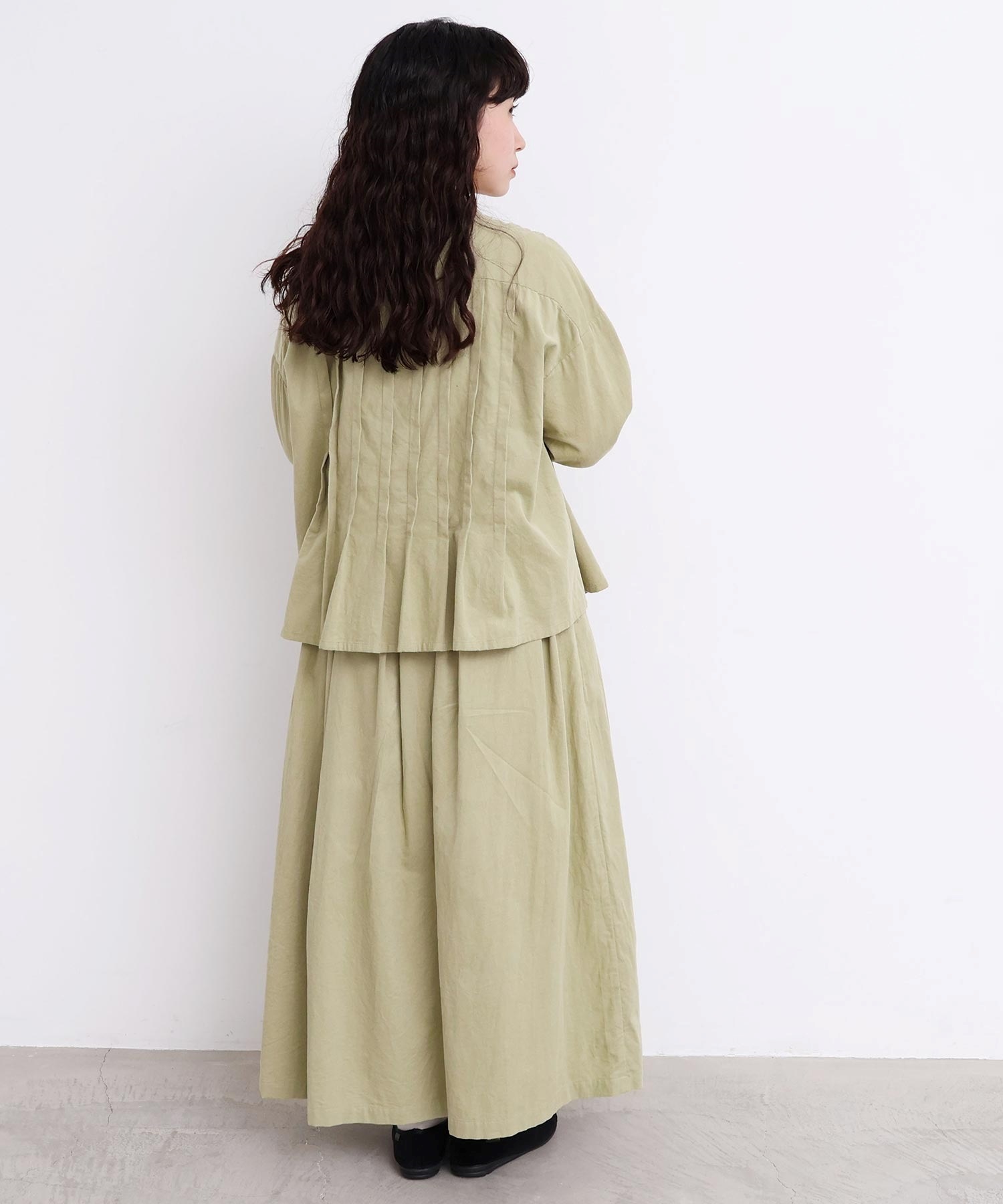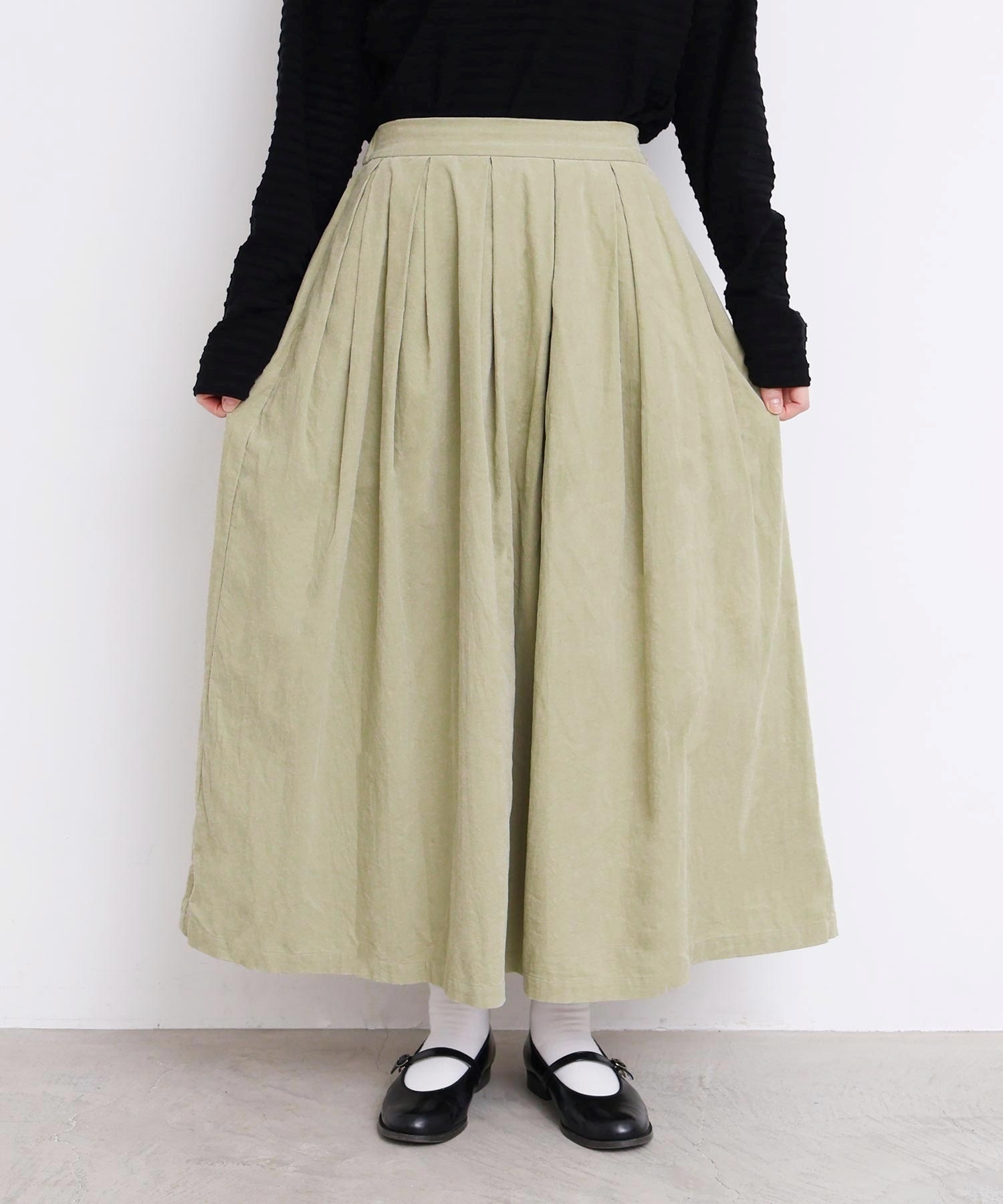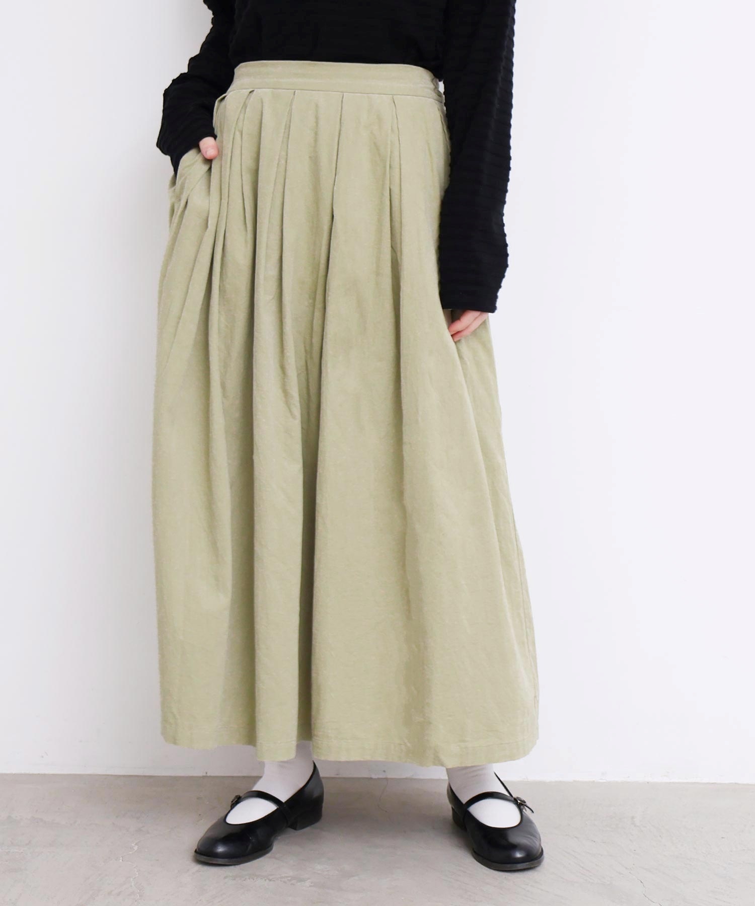 大きめのタックをとって裾はひらっと広がるデザインに。