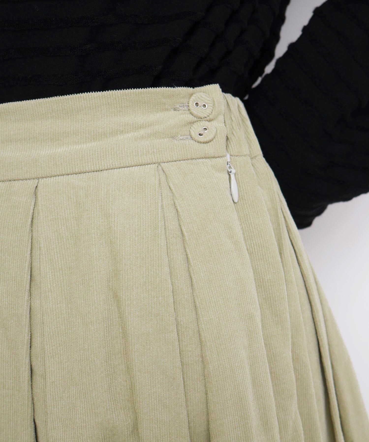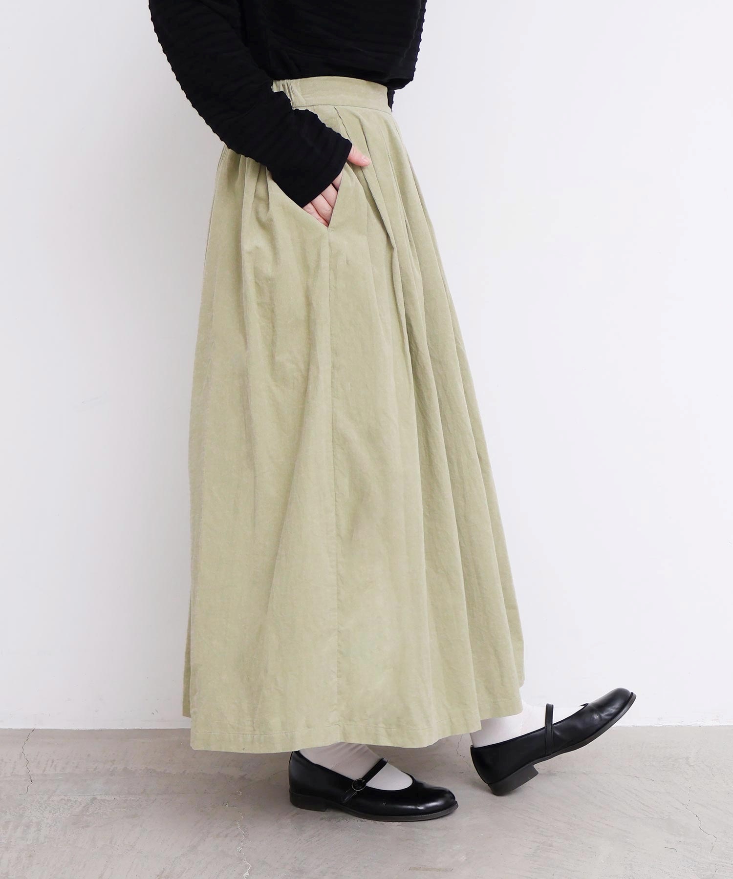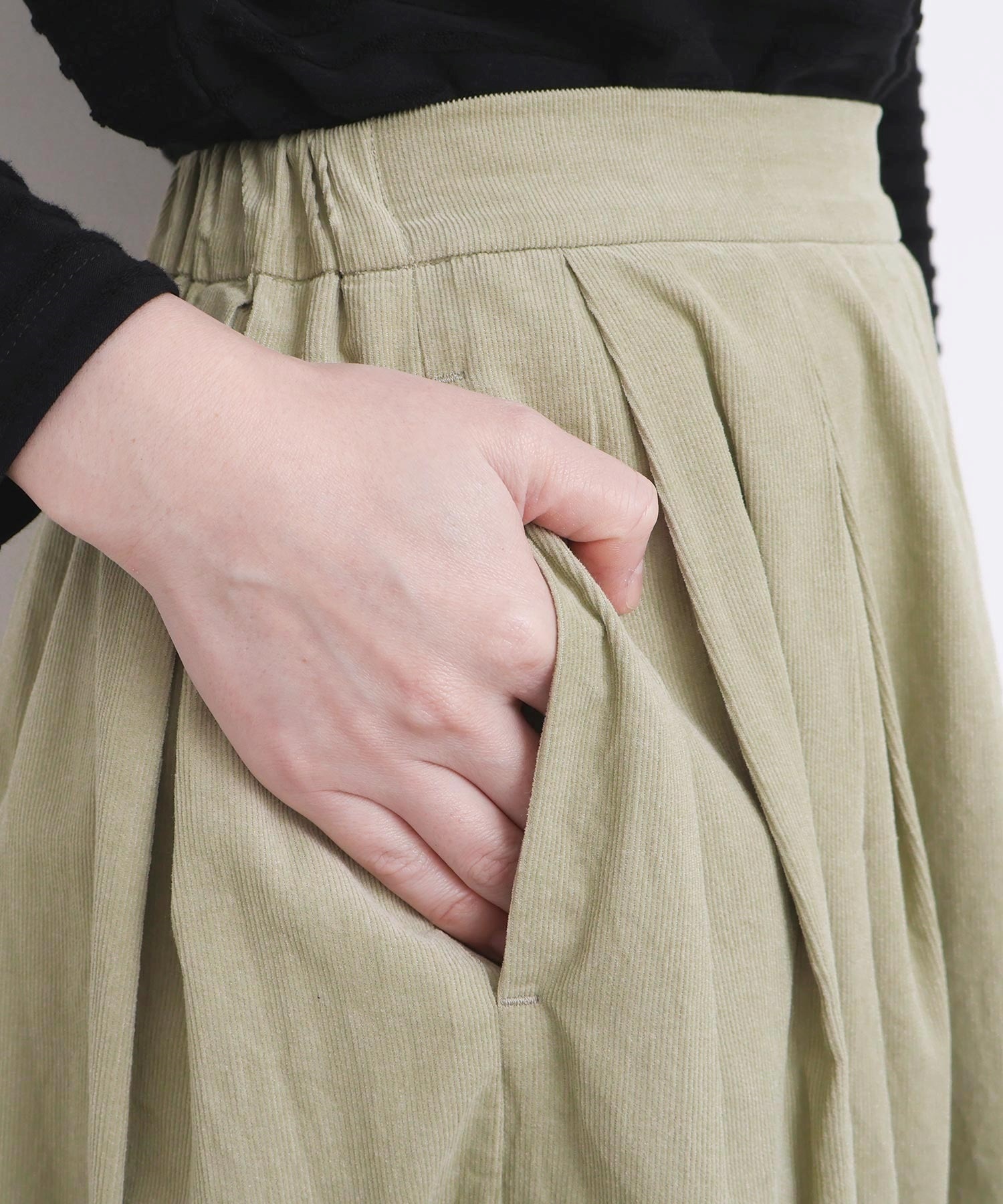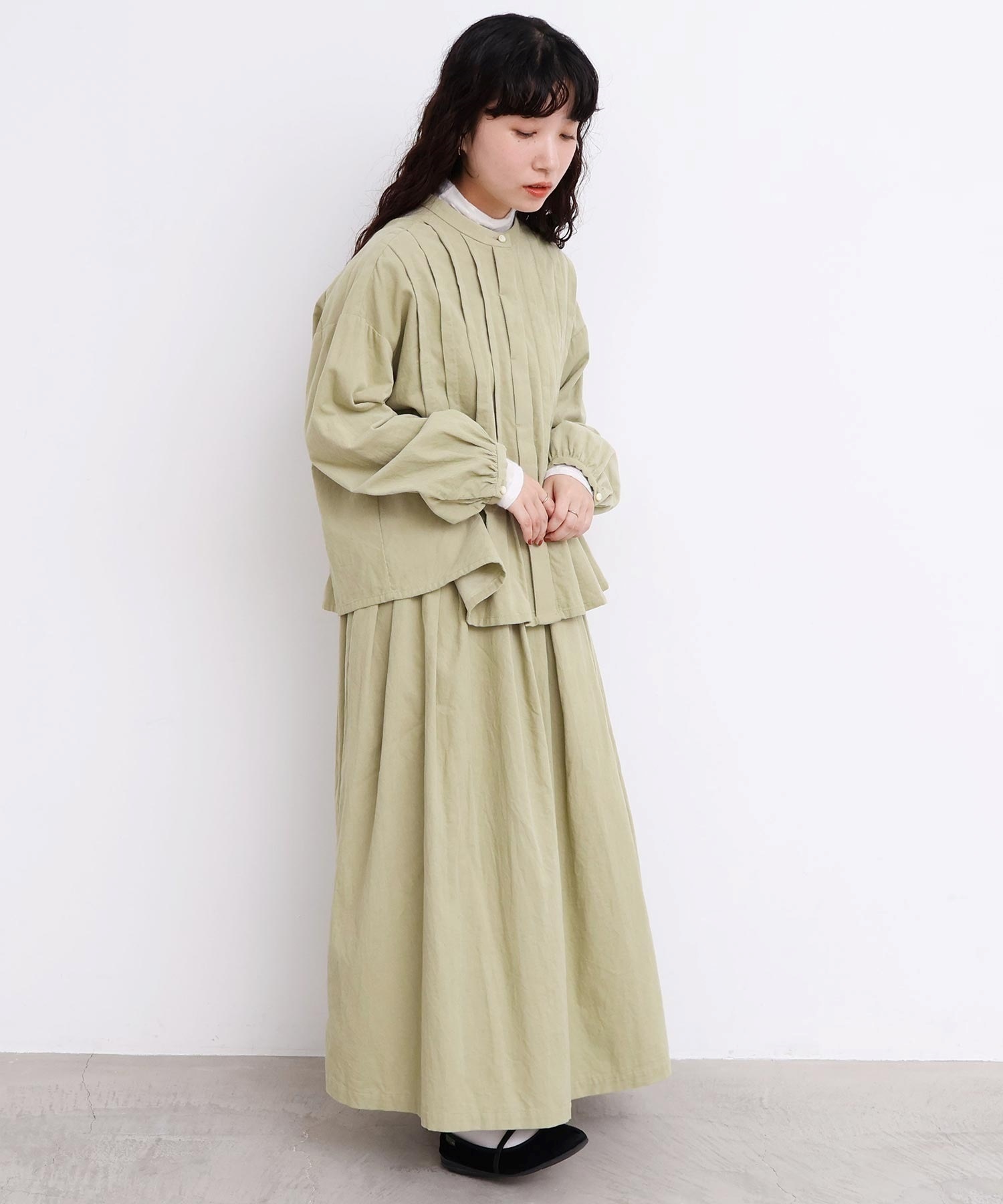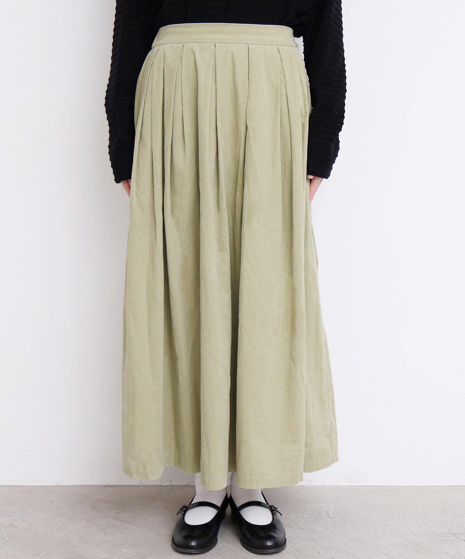 大きめのタックをとって裾はひらっと広がるデザインに。