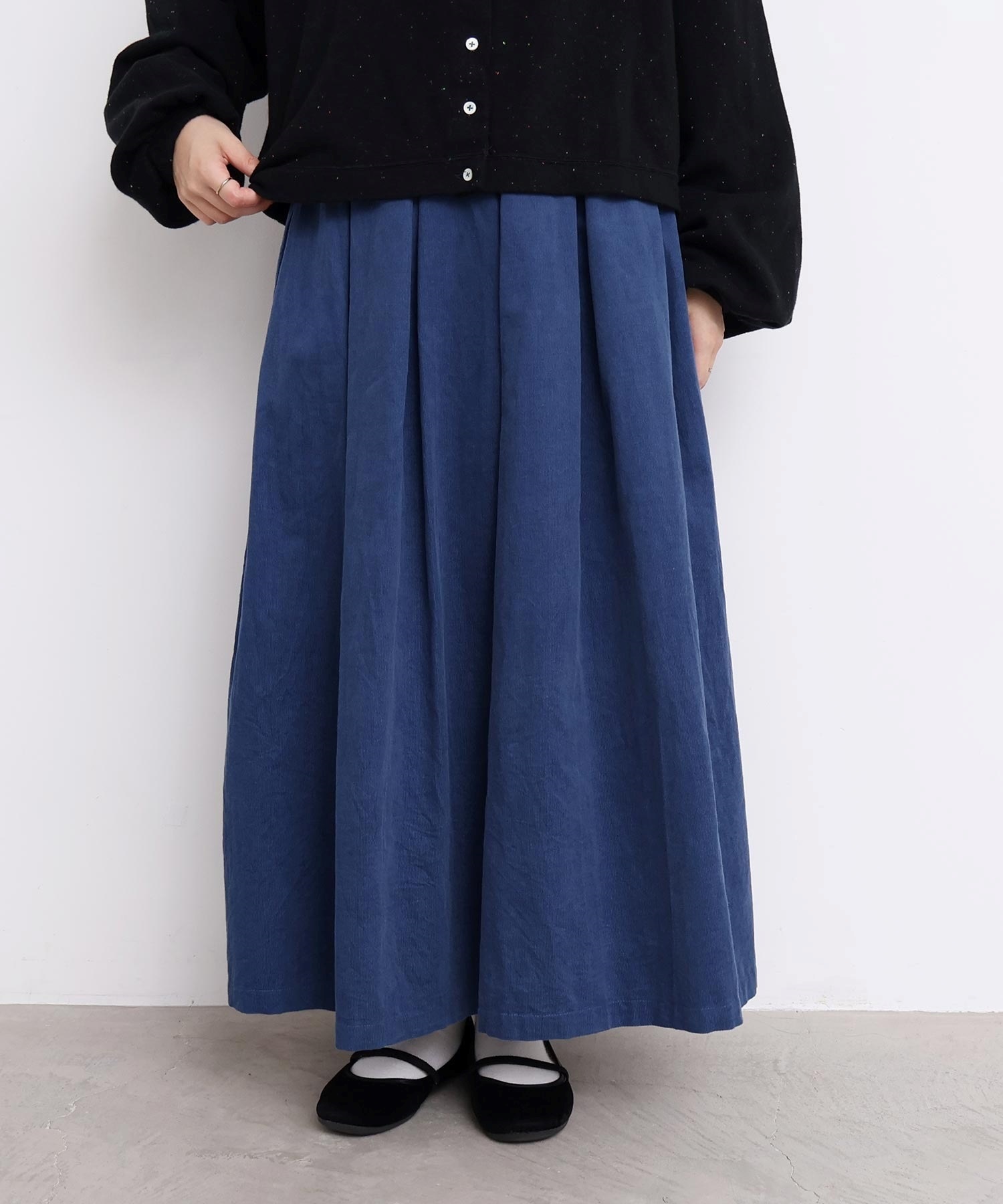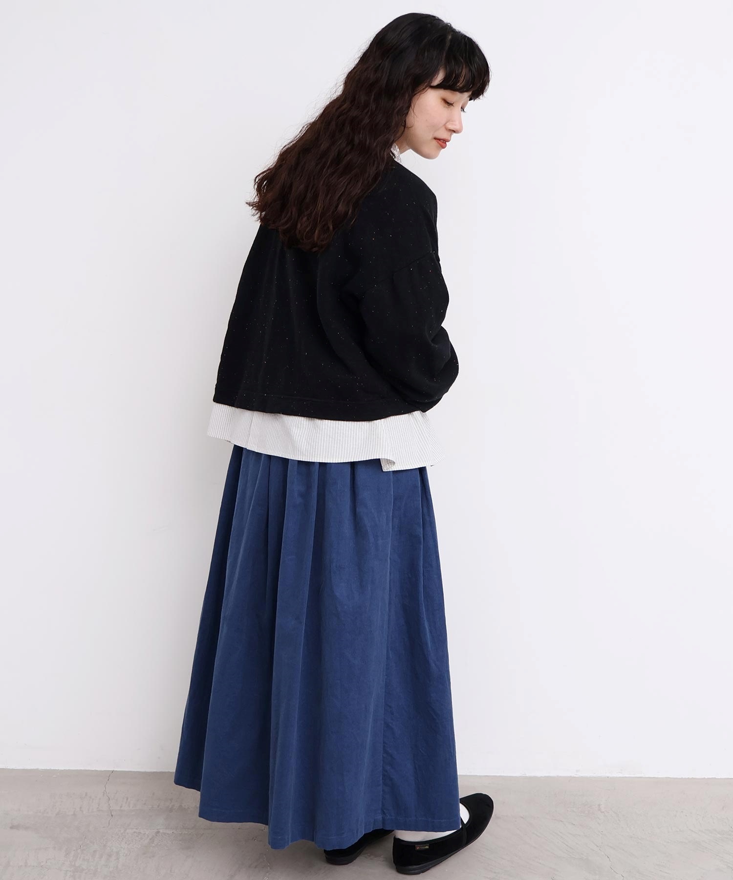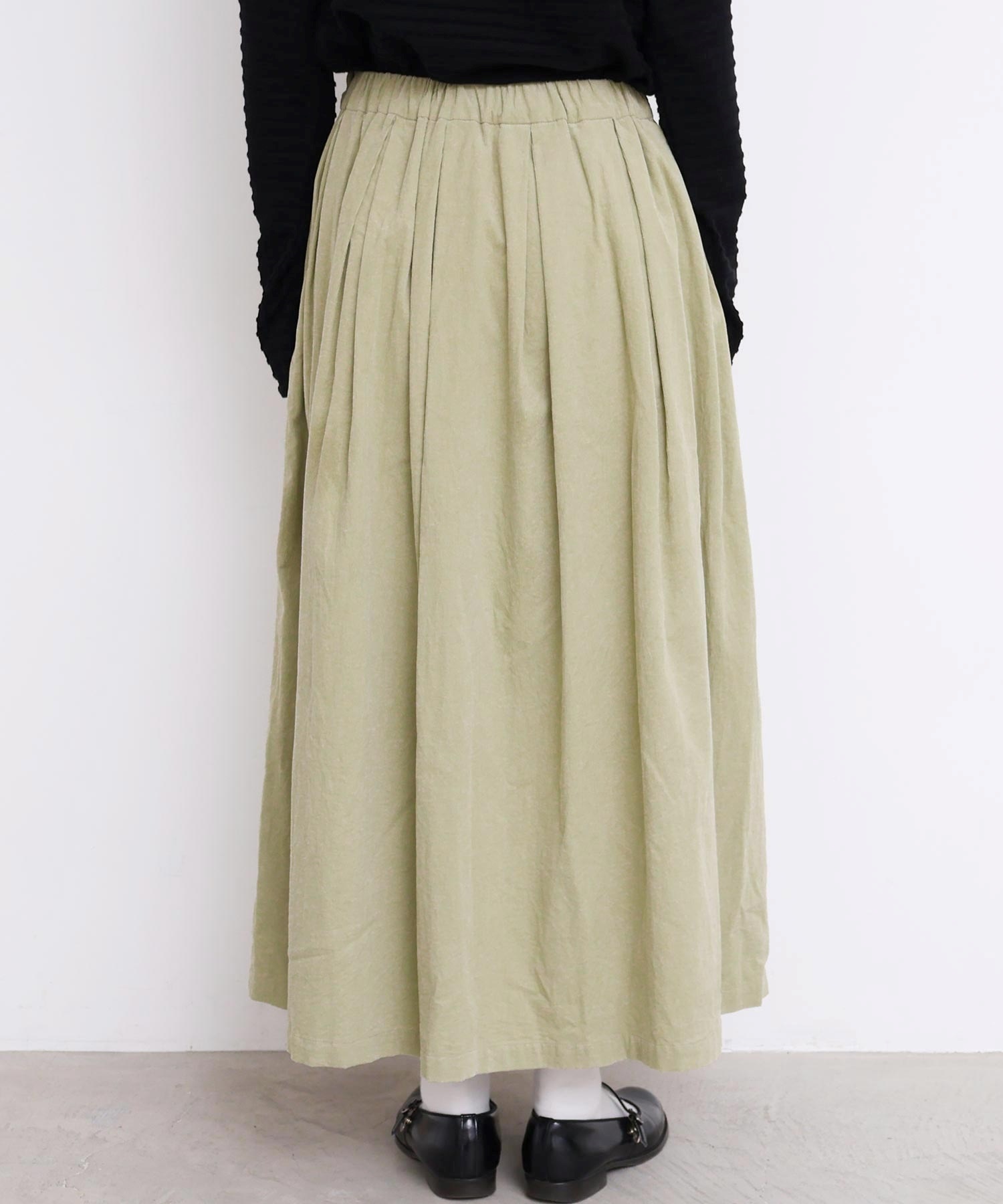 後ろゴムですっきり着られるのでトップスインもおすすめです。