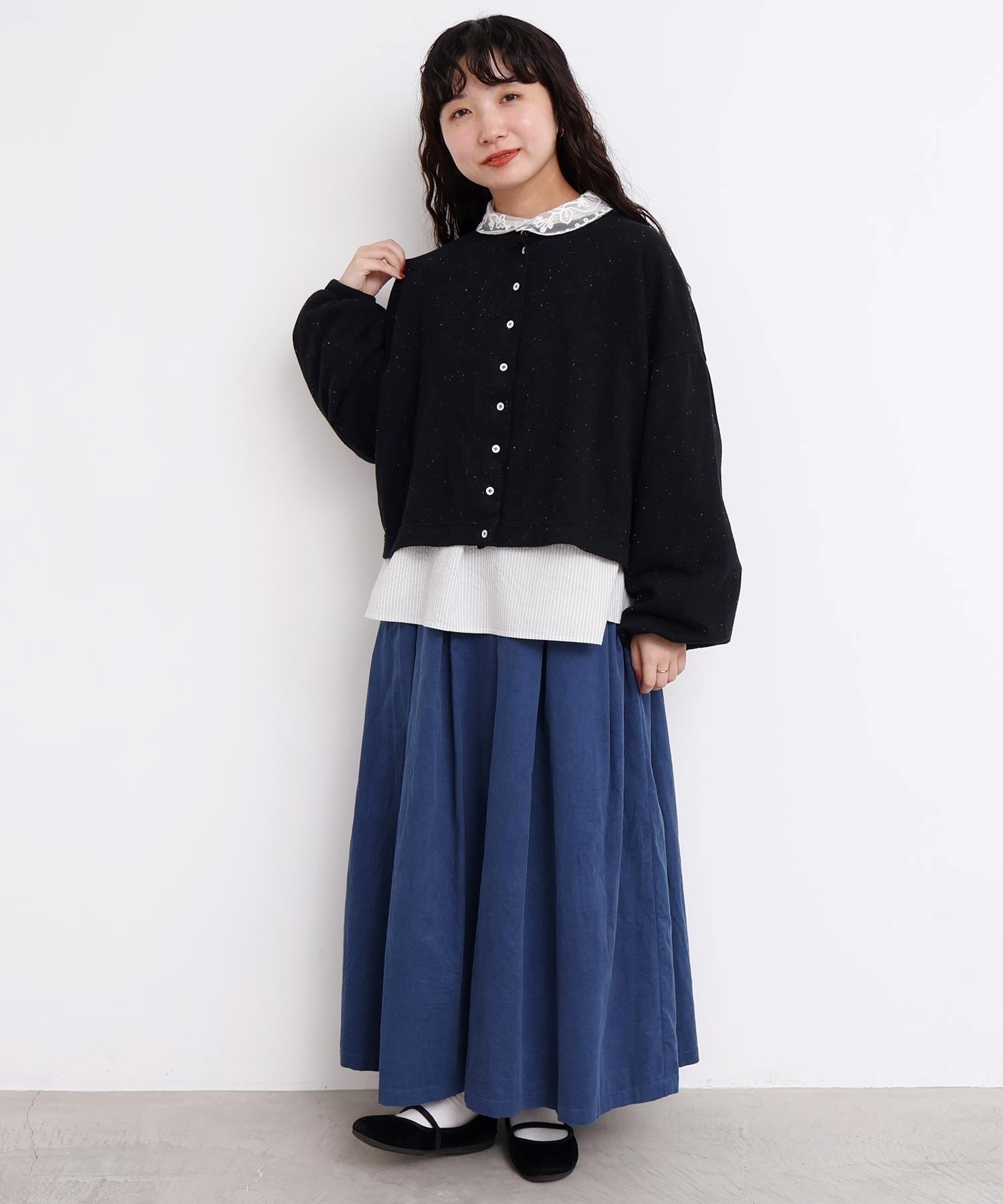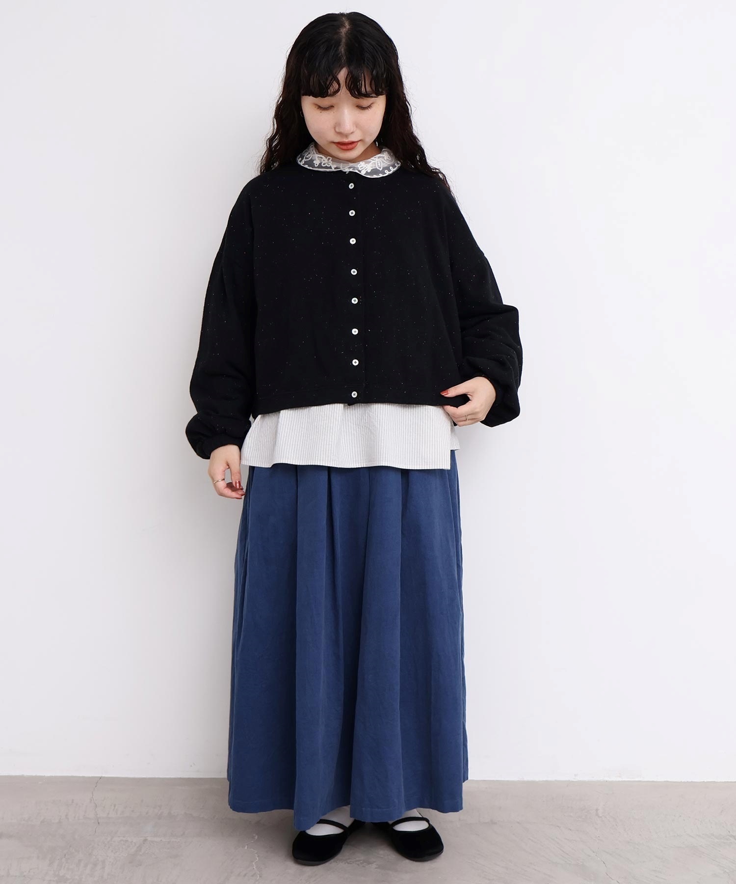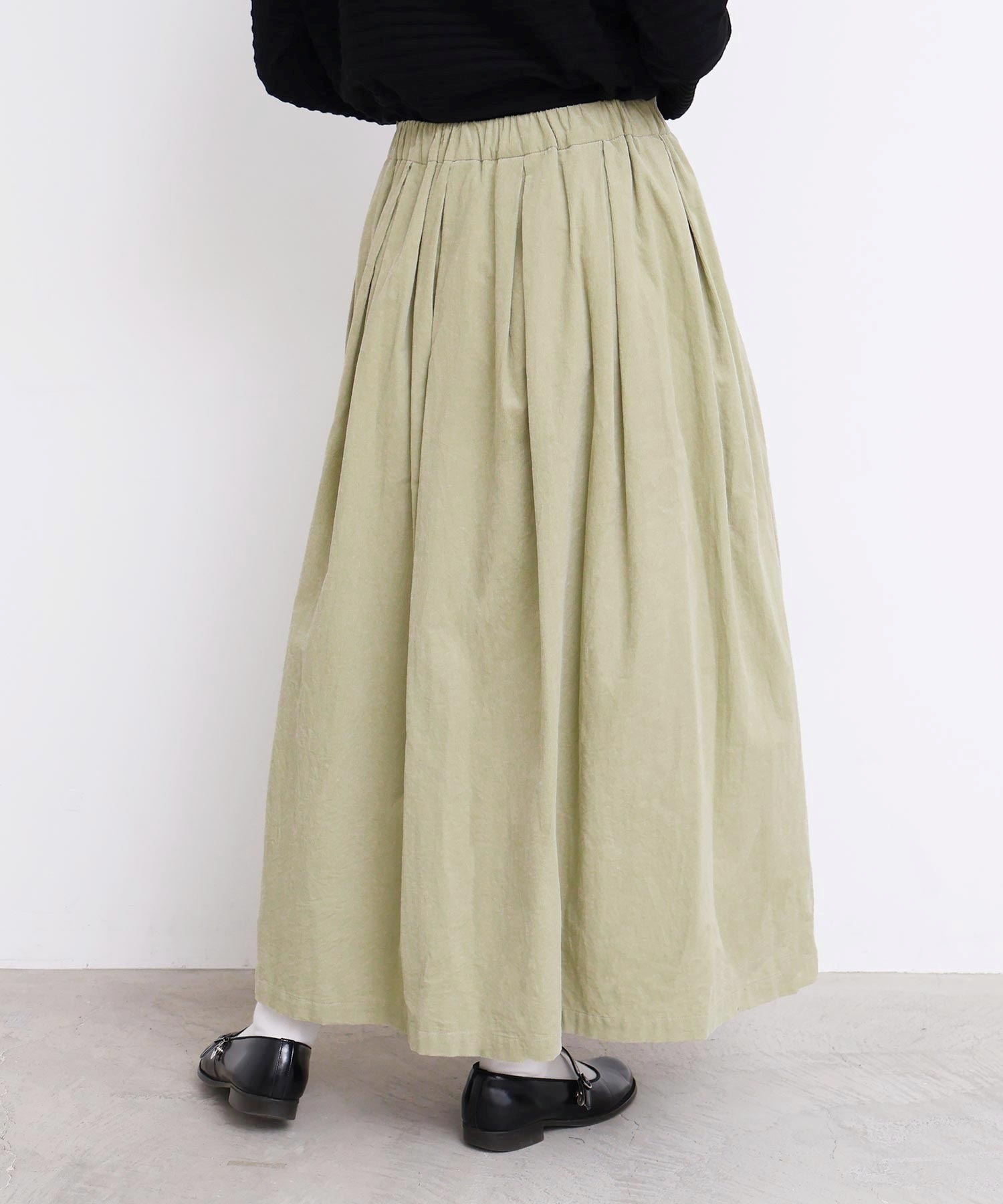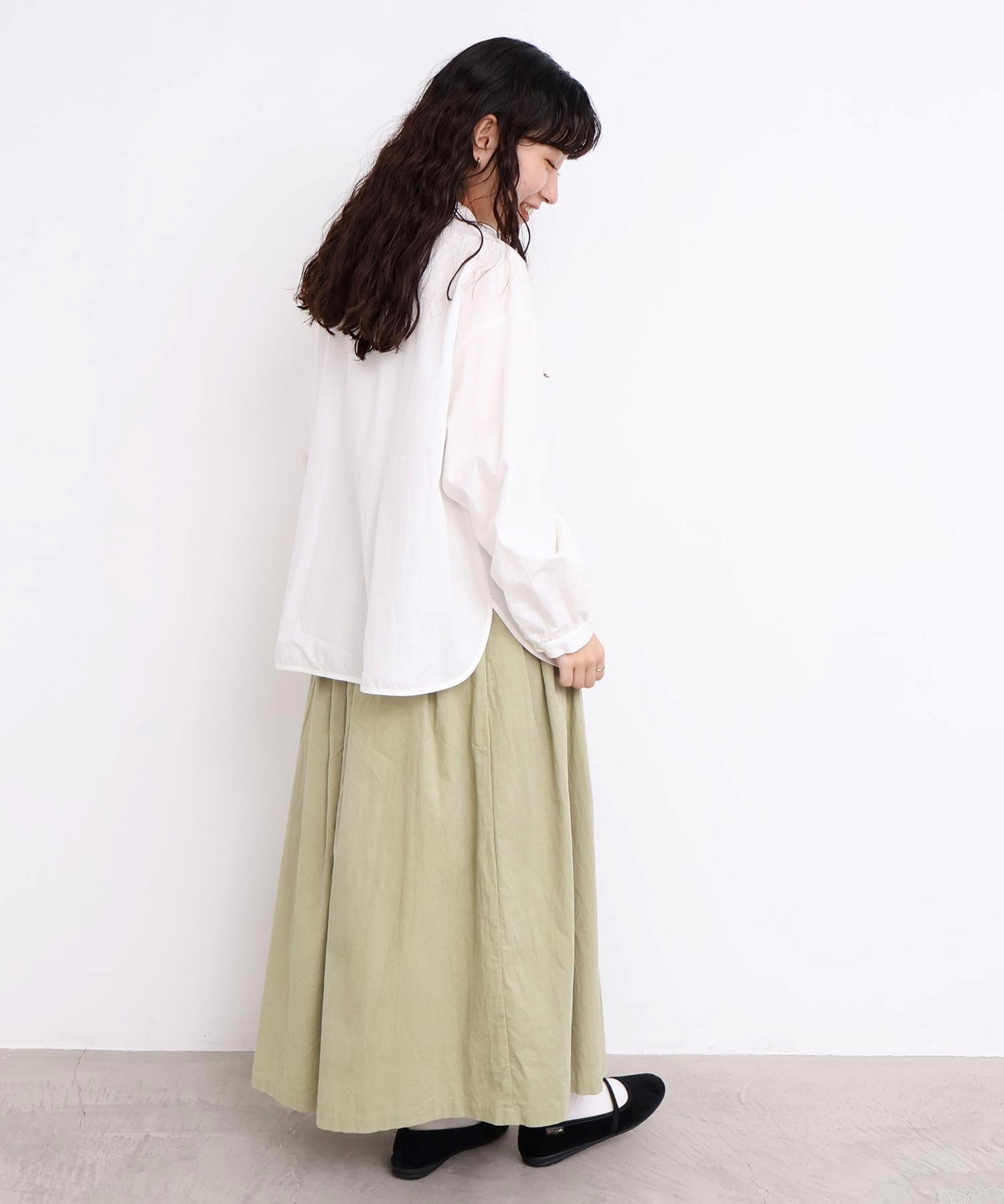 後ろゴムですっきり着られるのでトップスインもおすすめです。