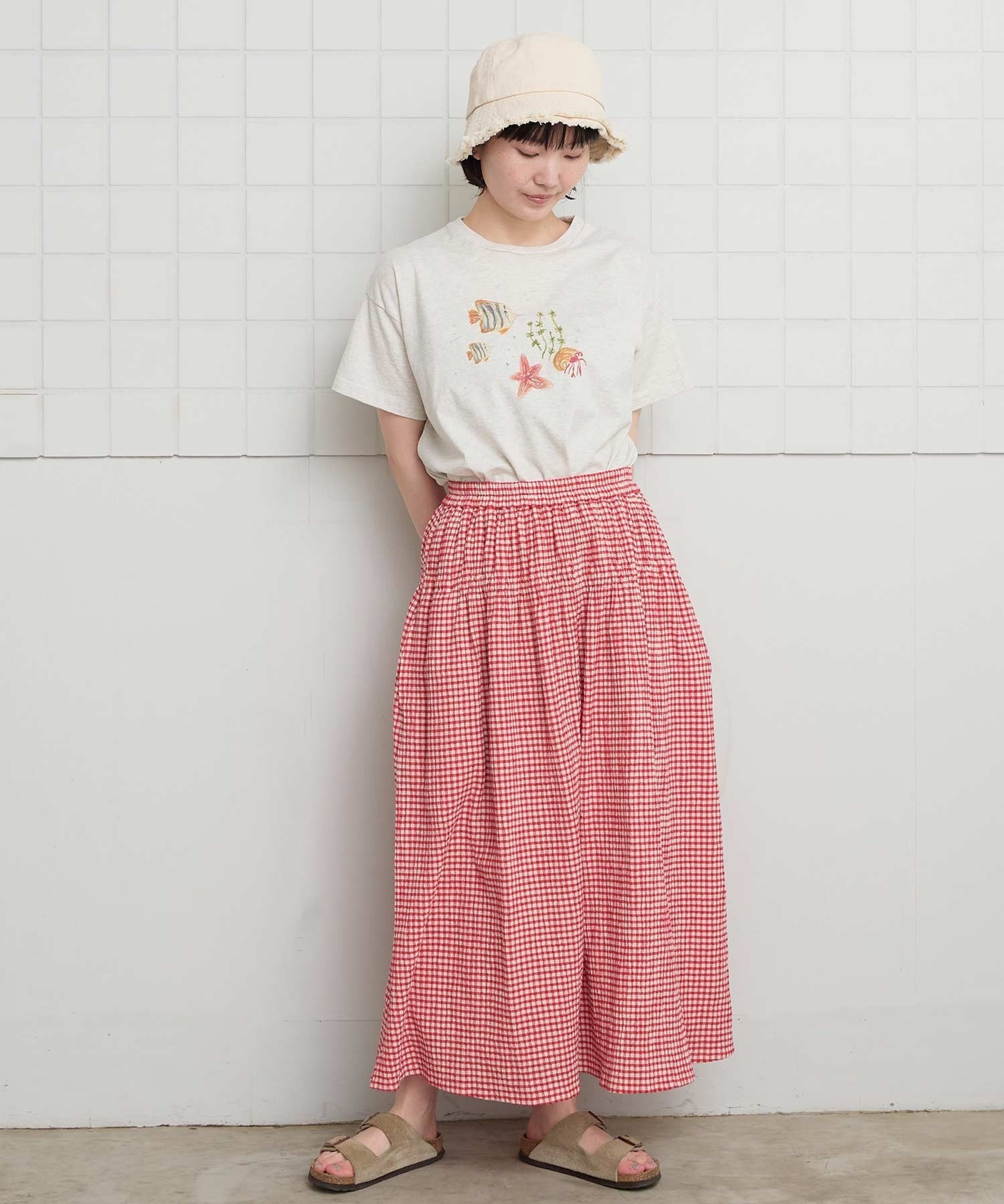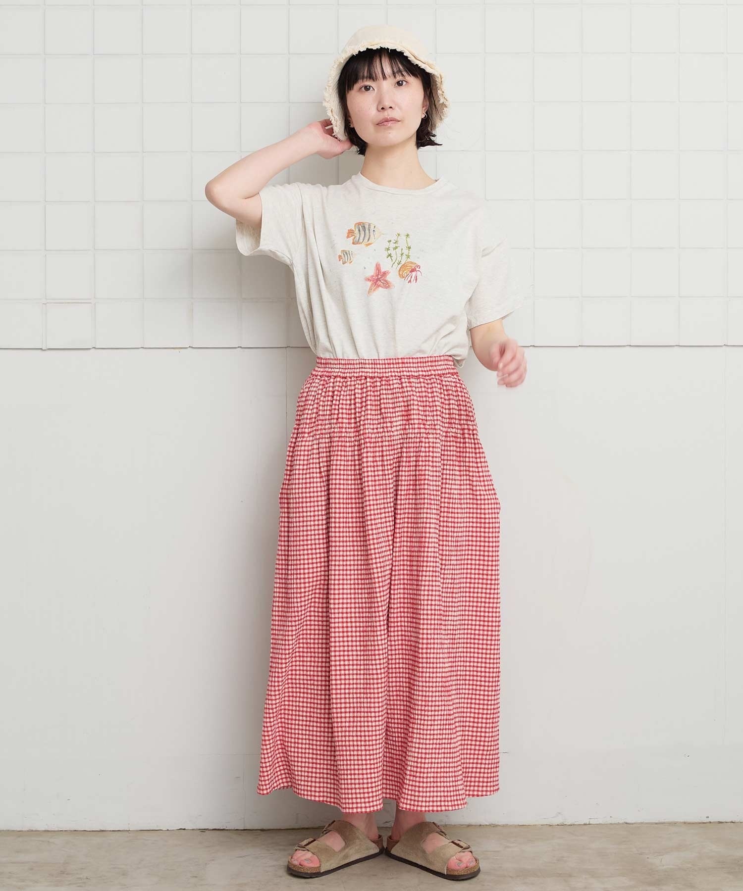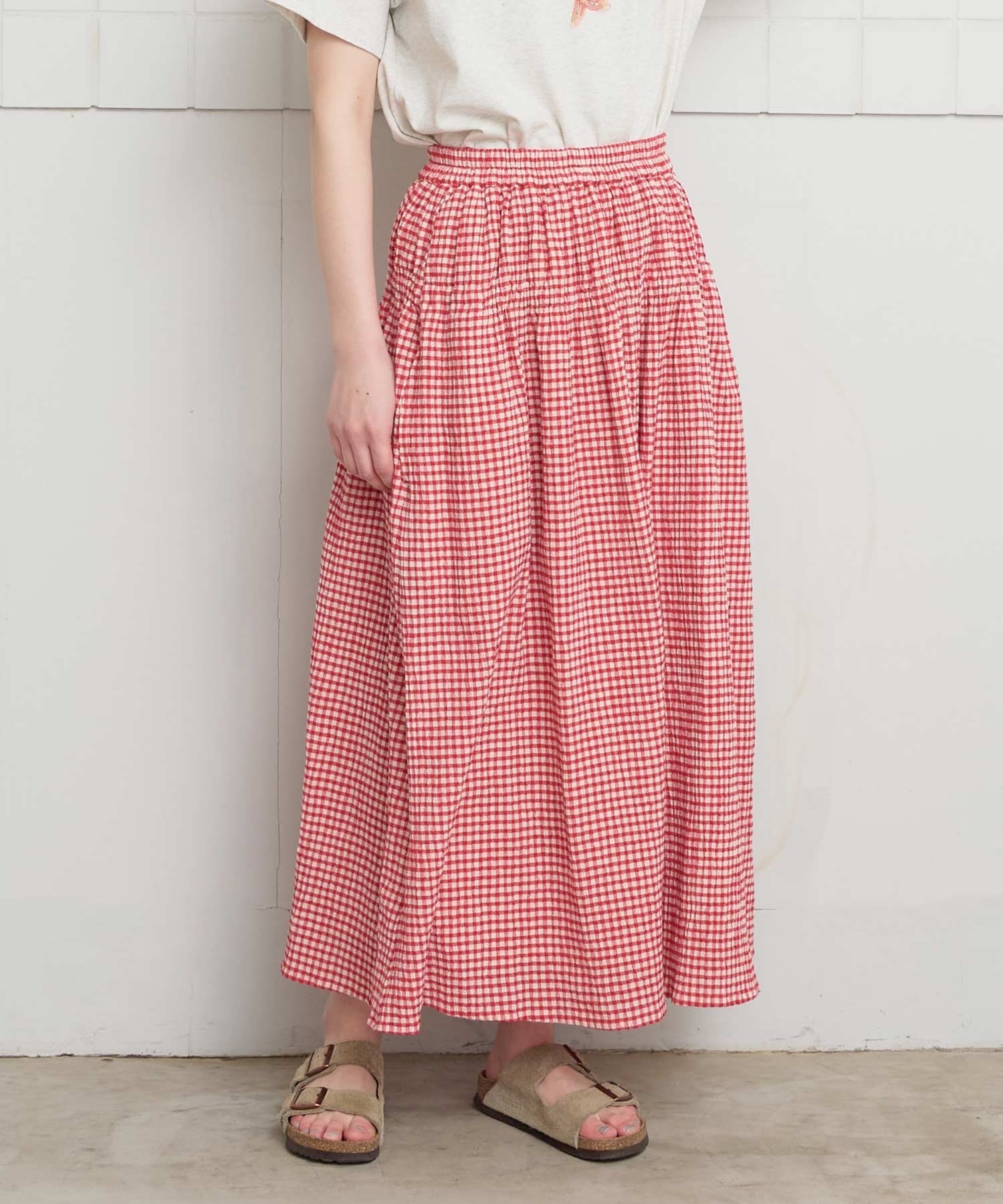 ウエストはゴムなのでストレスフリーで履いていただけます。