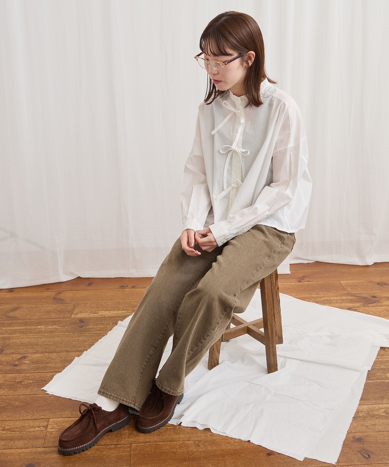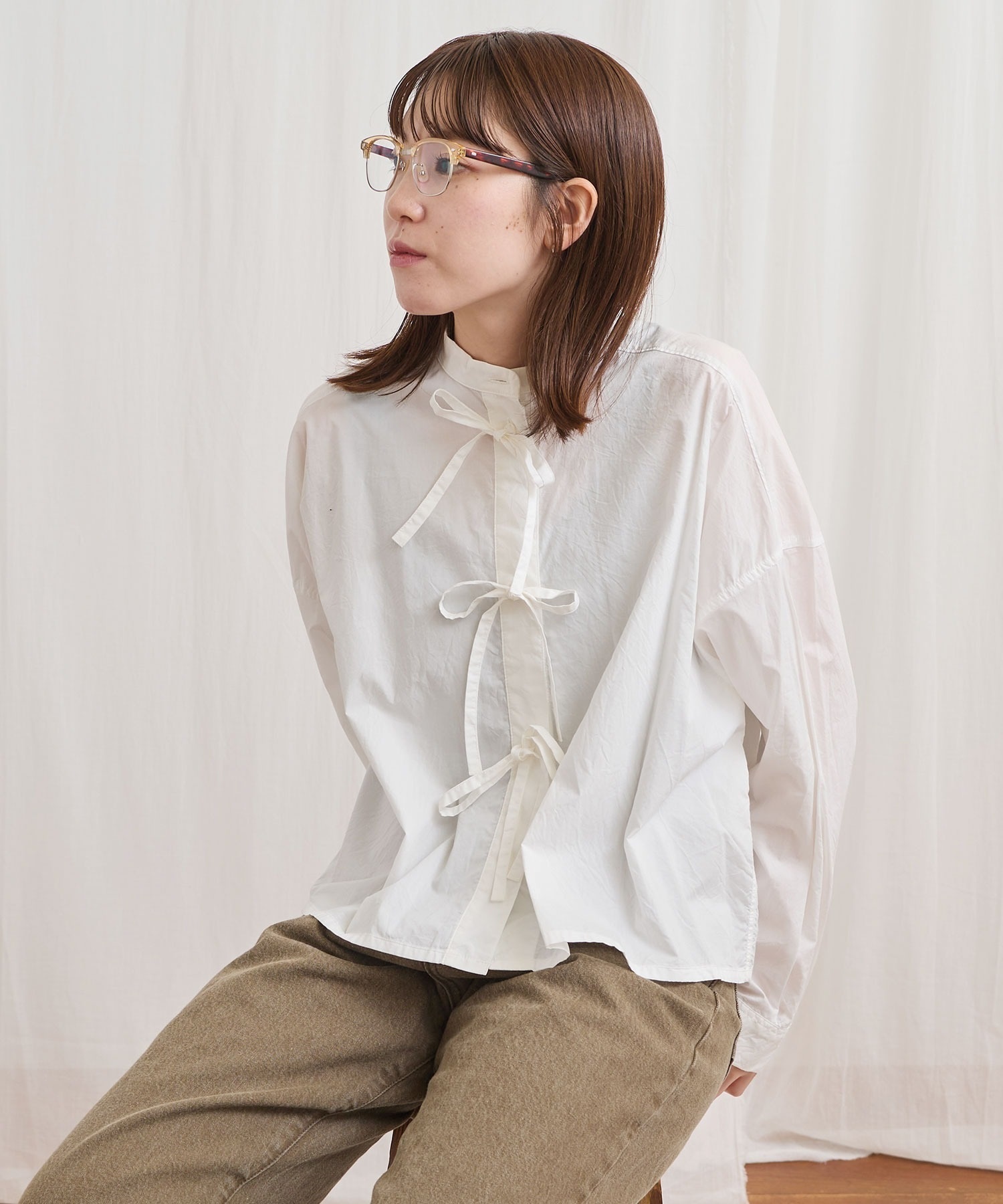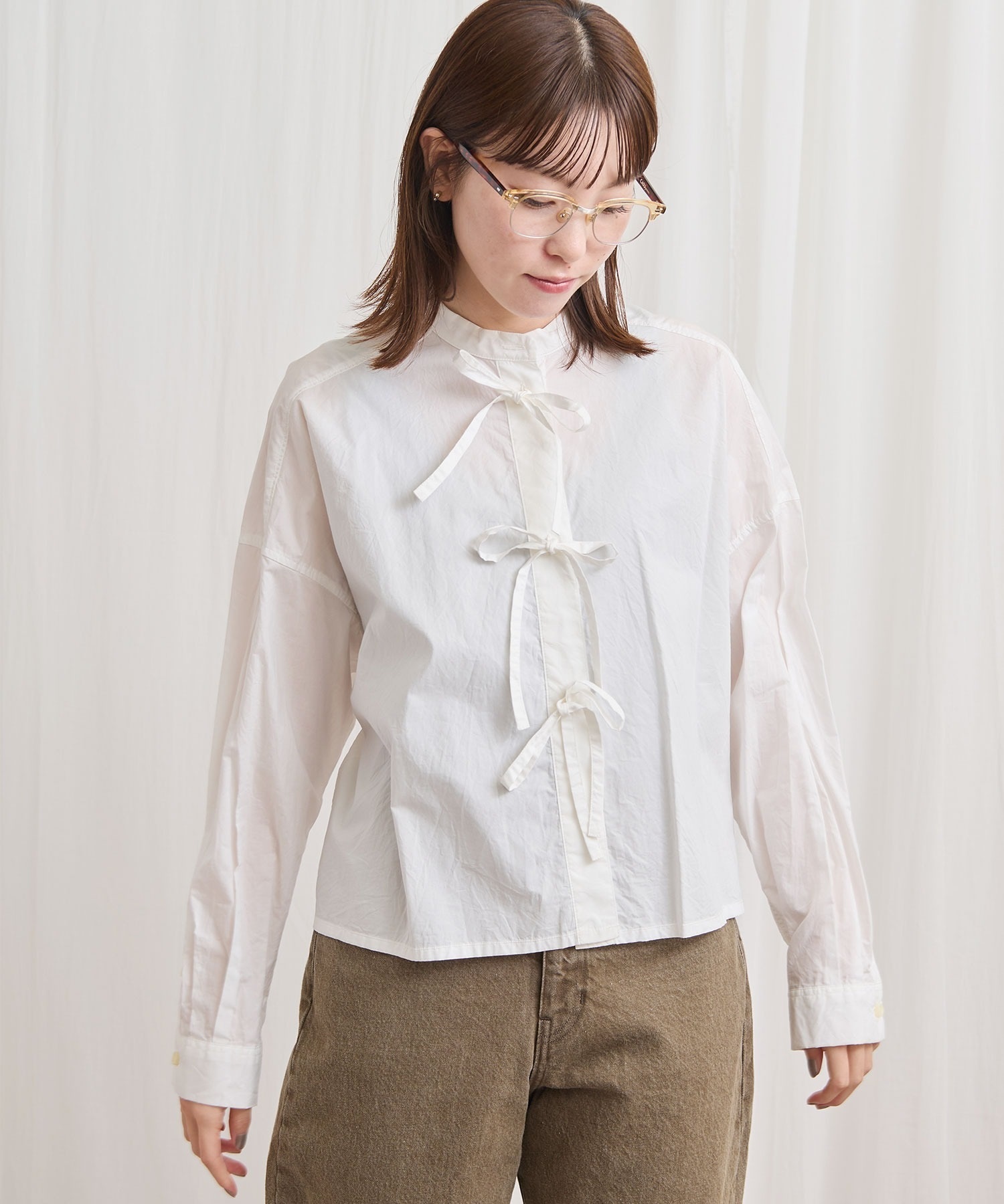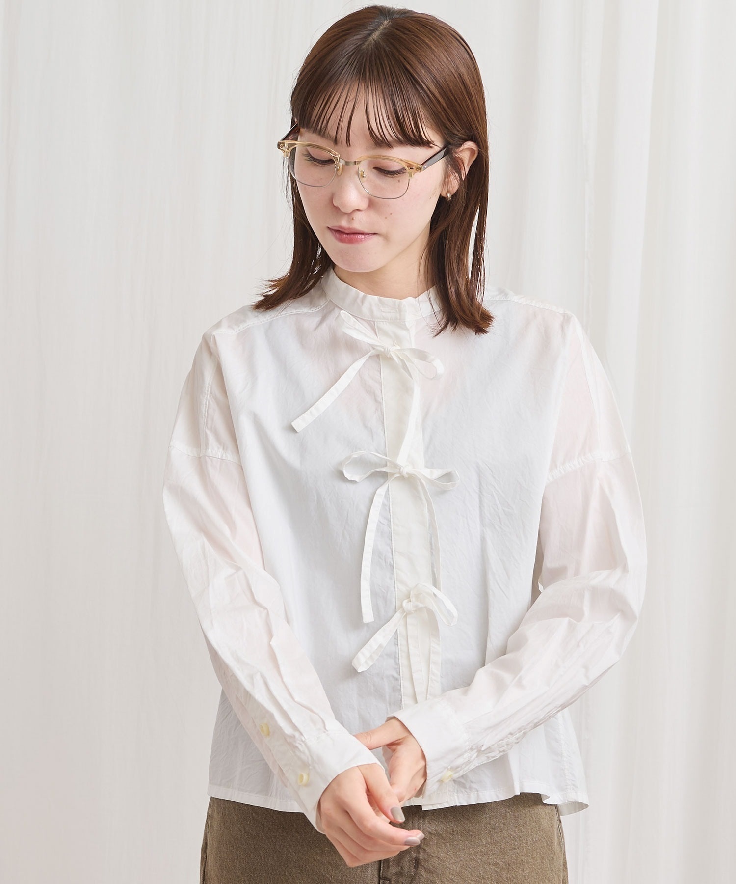 フロントのリボンはリボン結びでも軽く結ぶだけでもポイントになります。
